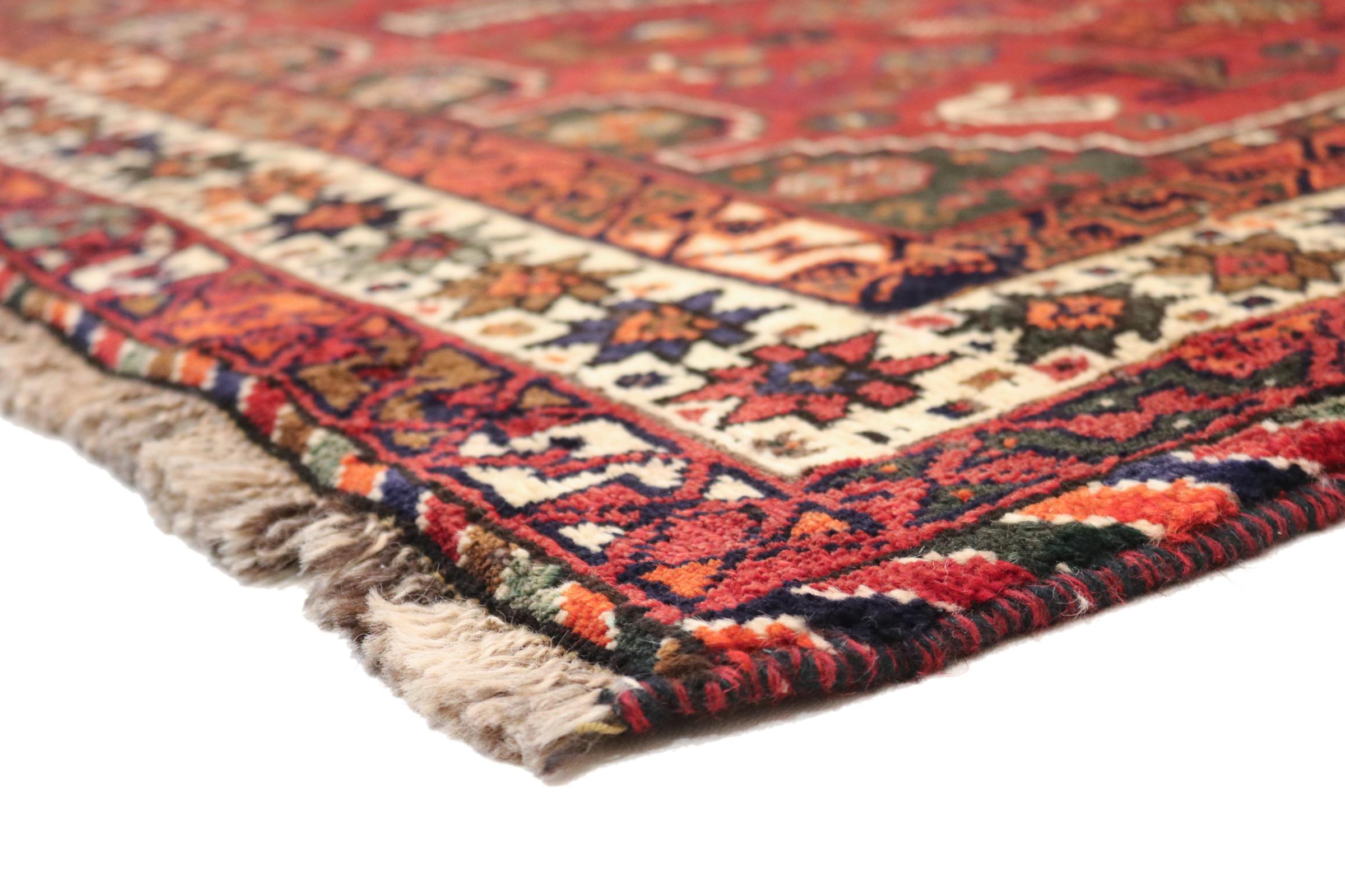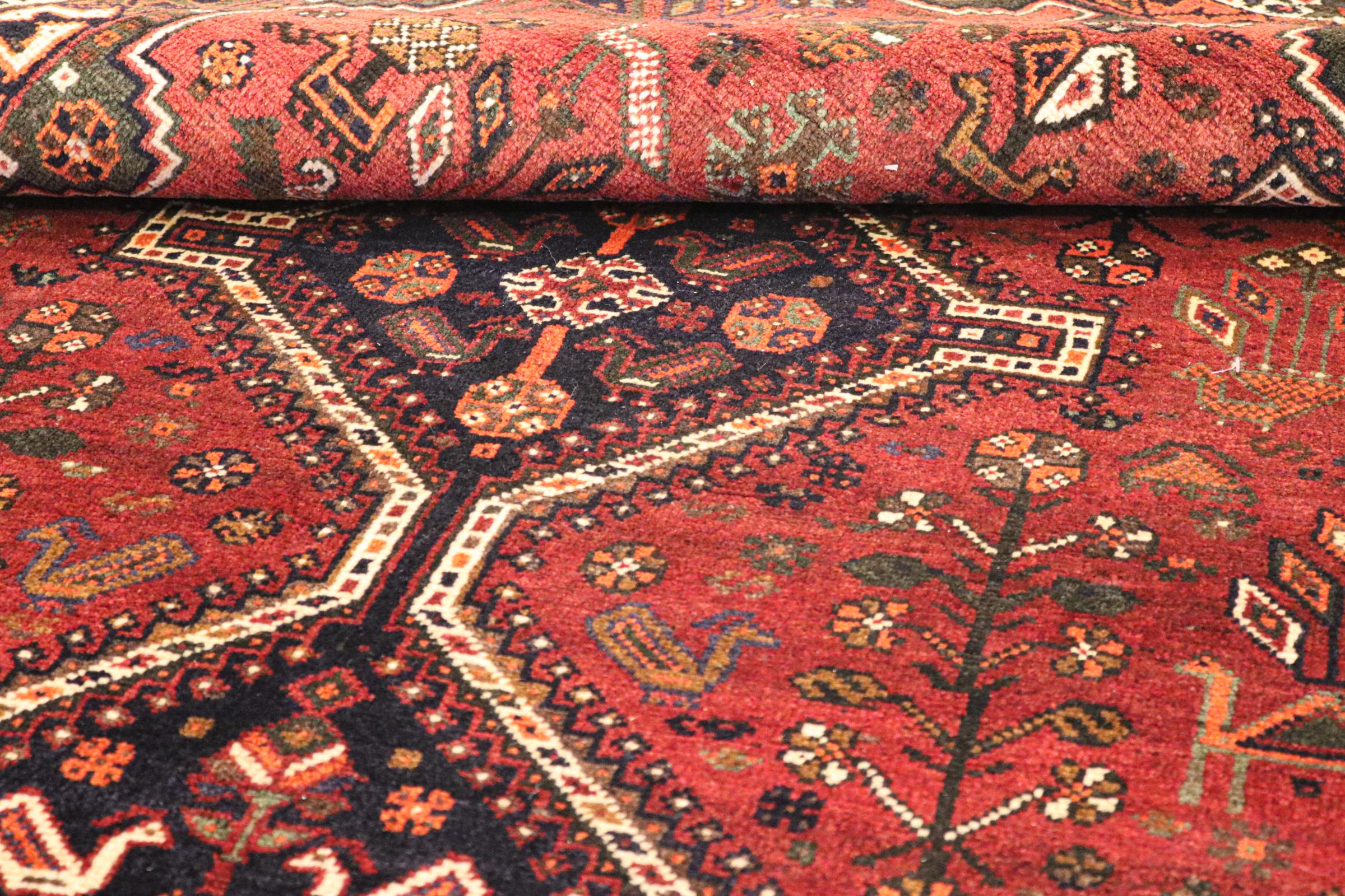 Este tapete pertence a tapetes de aldeia e nómadas do Irão, antiga Pérsia. Este tipo de tapete é atado à mão em cidades mais pequenas e aldeias da velha tradição. Mesmo os nómadas ainda atam tapetes persas ao ar livre. Os tapetes são atados sem padrão e completamente a partir da cabeça. Caracterizam-se por ornamentos clássicos, dispostos em padrões rectos e geométricos. Graças à sua origem cultural-tradicional, estes tapetes têm um carácter único que encarna a antiga Pérsia.