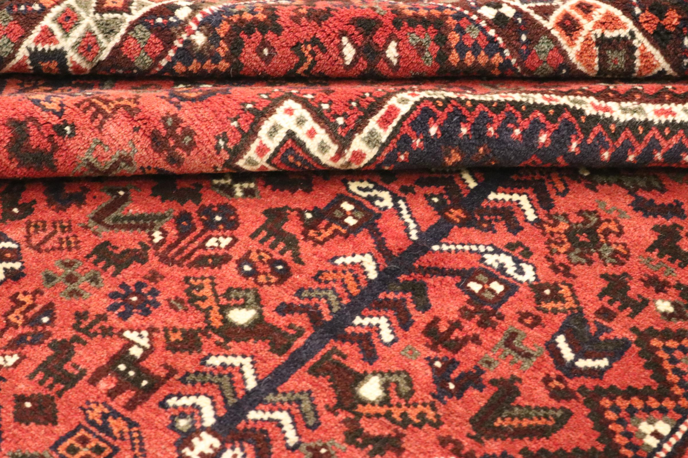 Este tapete pertence a tapetes de aldeia e nómadas do Irão, antiga Pérsia. Este tipo de tapete é atado à mão em cidades mais pequenas e aldeias da velha tradição. Mesmo os nómadas ainda atam tapetes persas ao ar livre. Os tapetes são atados sem padrão e completamente a partir da cabeça. Caracterizam-se por ornamentos clássicos, dispostos em padrões rectos e geométricos. Graças à sua origem cultural-tradicional, estes tapetes têm um carácter único que encarna a antiga Pérsia.