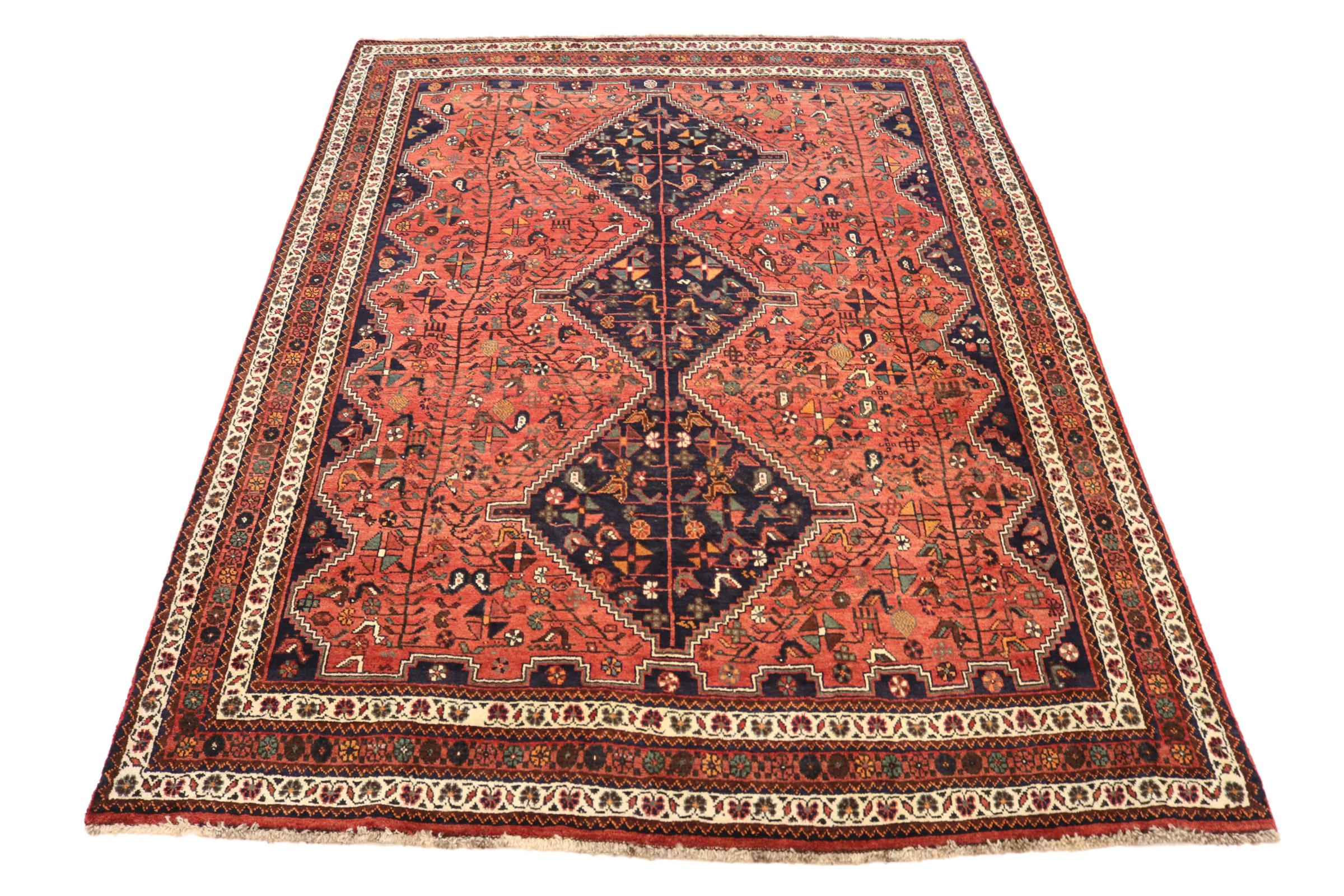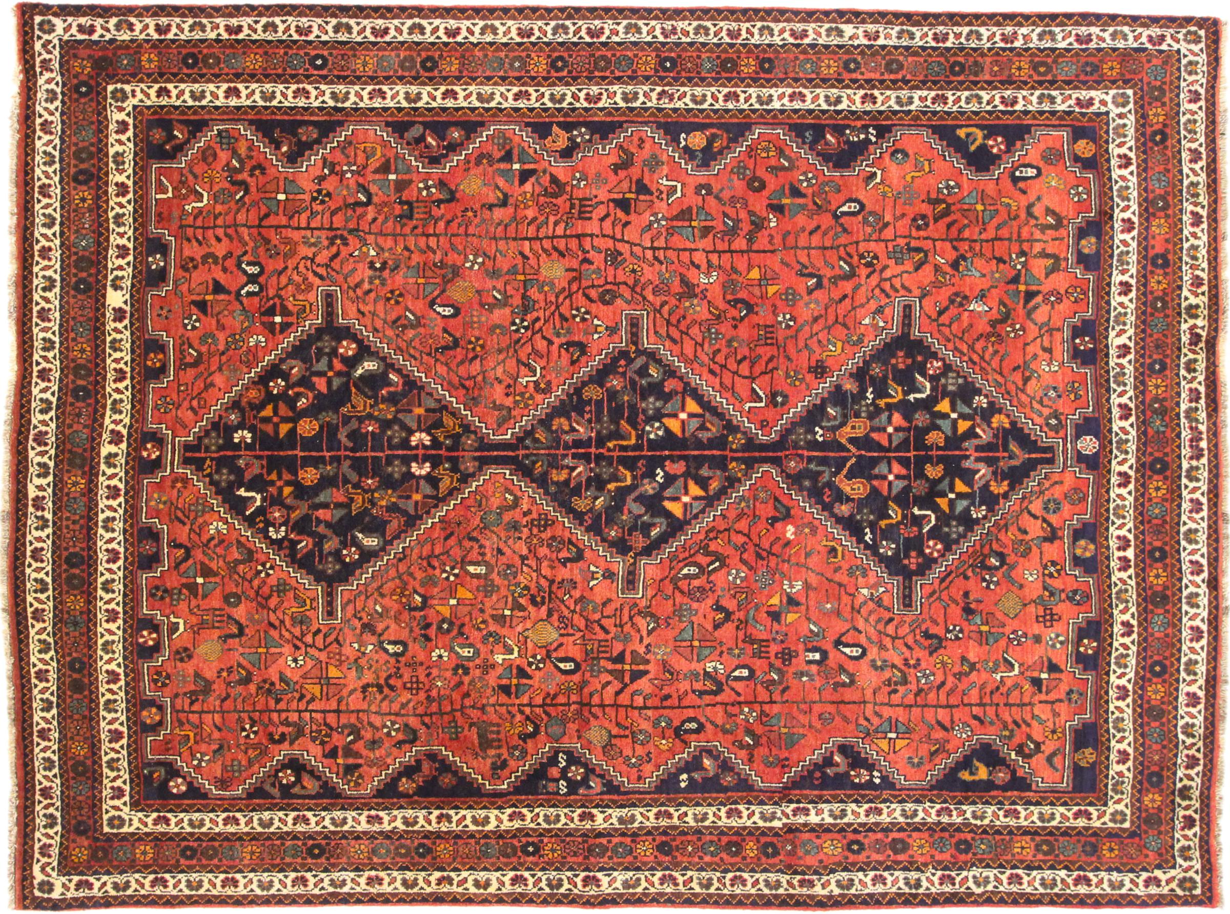 Este tapete pertence a tapetes de aldeia e nómadas do Irão, antiga Pérsia. Este tipo de tapete é atado à mão em cidades mais pequenas e aldeias da velha tradição. Mesmo os nómadas ainda atam tapetes persas ao ar livre. Os tapetes são atados sem padrão e completamente a partir da cabeça. Caracterizam-se por ornamentos clássicos, dispostos em padrões rectos e geométricos. Graças à sua origem cultural-tradicional, estes tapetes têm um carácter único que encarna a antiga Pérsia.
