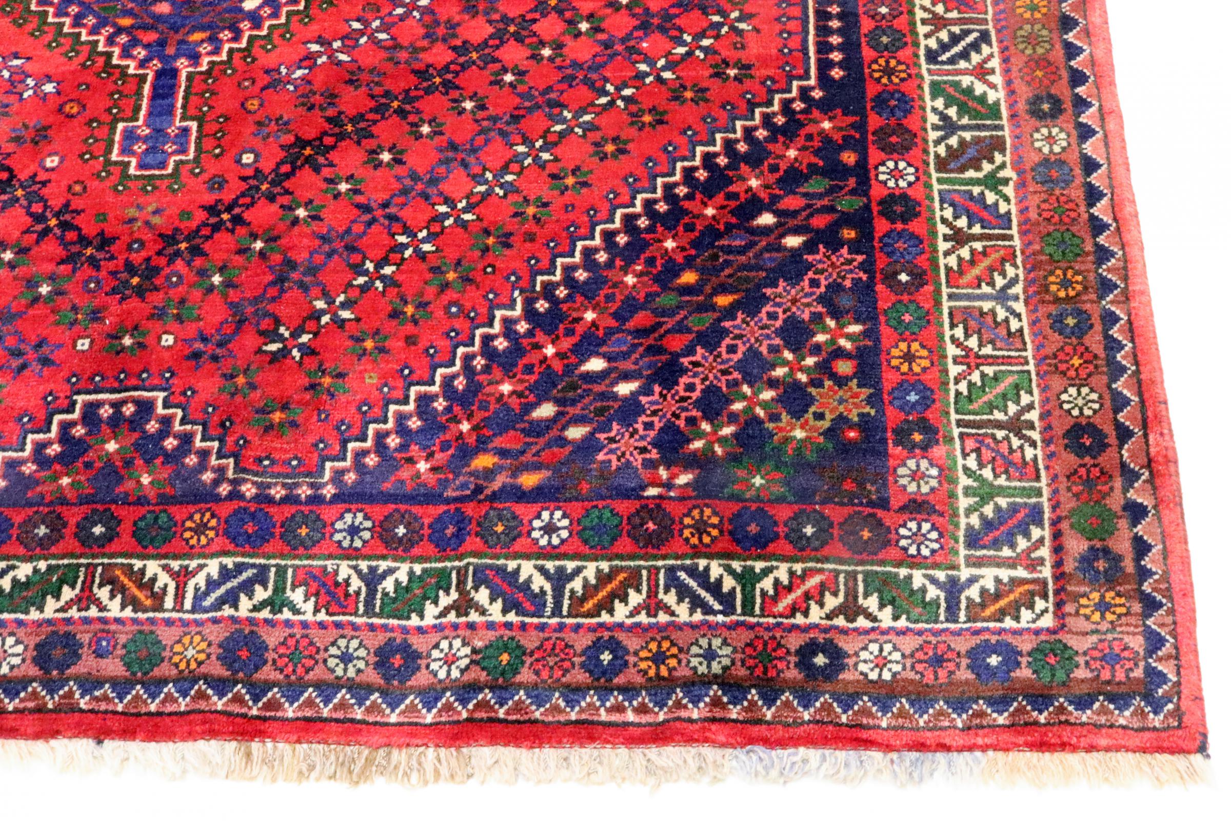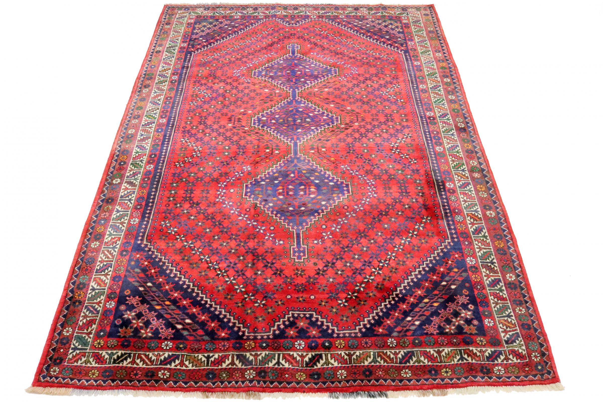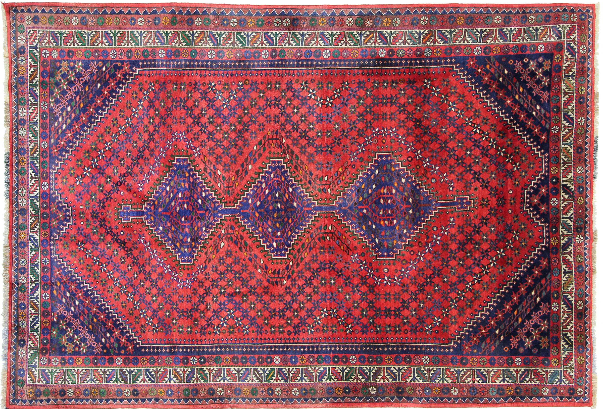 Este tapete pertence a tapetes de aldeia e nómadas do Irão, antiga Pérsia. Este tipo de tapete é atado à mão em cidades mais pequenas e aldeias da velha tradição. Mesmo os nómadas ainda atam tapetes persas ao ar livre. Os tapetes são atados sem padrão e completamente a partir da cabeça. Caracterizam-se por ornamentos clássicos, dispostos em padrões rectos e geométricos. Graças à sua origem cultural-tradicional, estes tapetes têm um carácter único que encarna a antiga Pérsia.