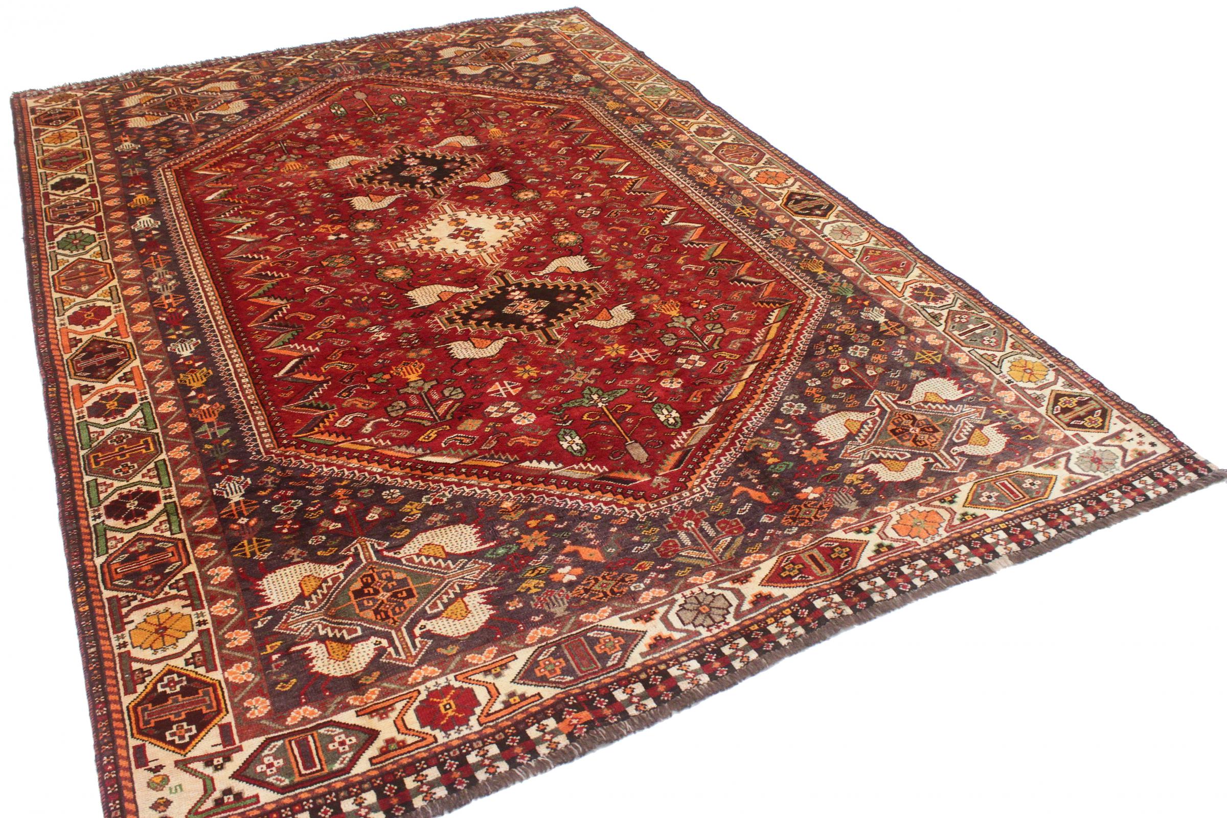 Este tapete pertence a tapetes de aldeia e nómadas do Irão, antiga Pérsia. Este tipo de tapete é atado à mão em cidades mais pequenas e aldeias da velha tradição. Mesmo os nómadas ainda atam tapetes persas ao ar livre. Os tapetes são atados sem padrão e completamente a partir da cabeça. Caracterizam-se por ornamentos clássicos, dispostos em padrões rectos e geométricos. Graças à sua origem cultural-tradicional, estes tapetes têm um carácter único que encarna a antiga Pérsia.