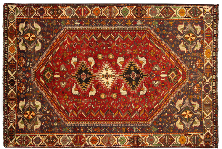 Este tapete pertence a tapetes de aldeia e nómadas do Irão, antiga Pérsia. Este tipo de tapete é atado à mão em cidades mais pequenas e aldeias da velha tradição. Mesmo os nómadas ainda atam tapetes persas ao ar livre. Os tapetes são atados sem padrão e completamente a partir da cabeça. Caracterizam-se por ornamentos clássicos, dispostos em padrões rectos e geométricos. Graças à sua origem cultural-tradicional, estes tapetes têm um carácter único que encarna a antiga Pérsia.