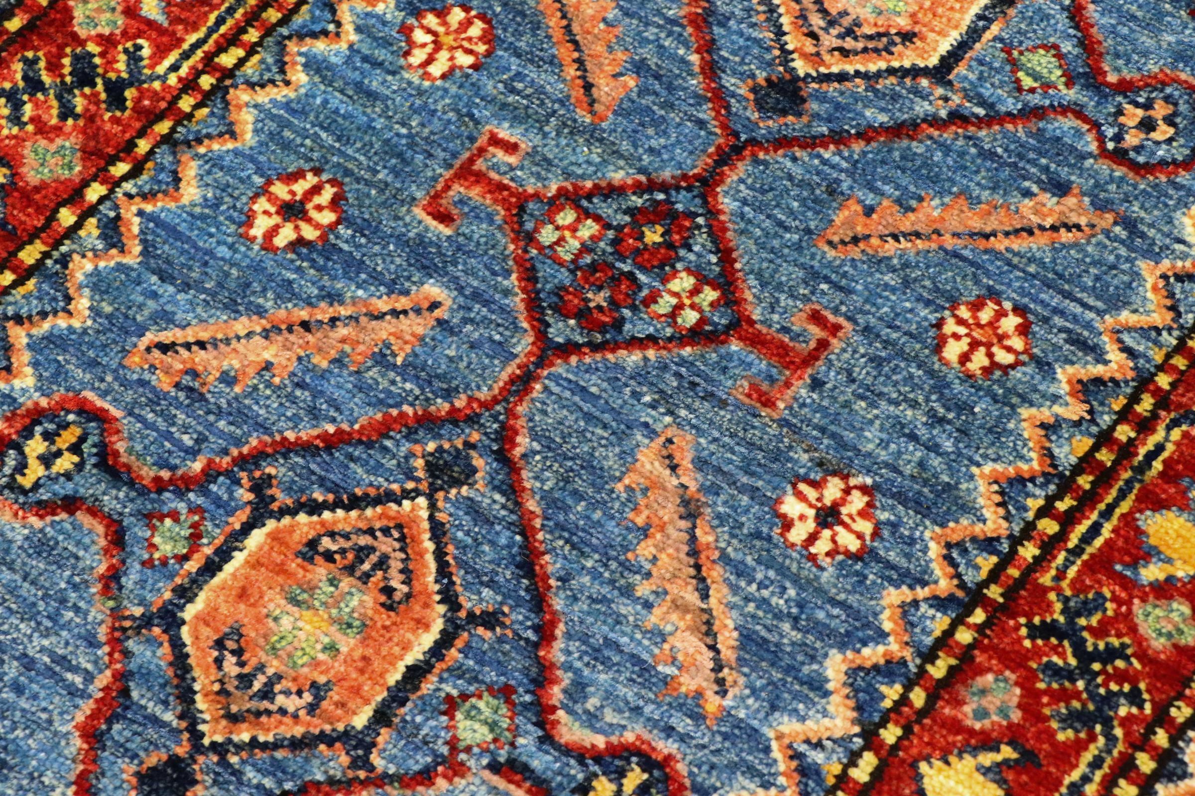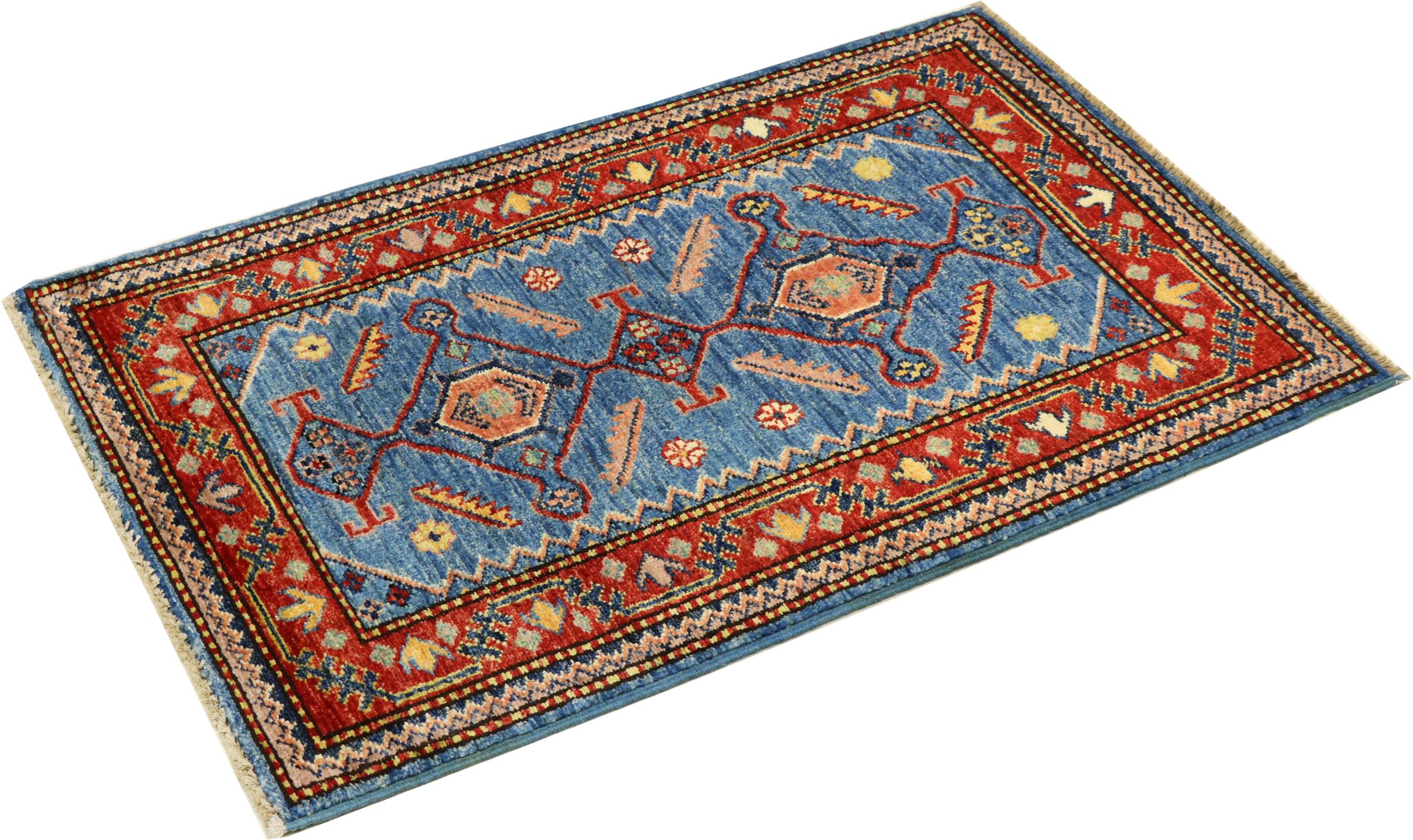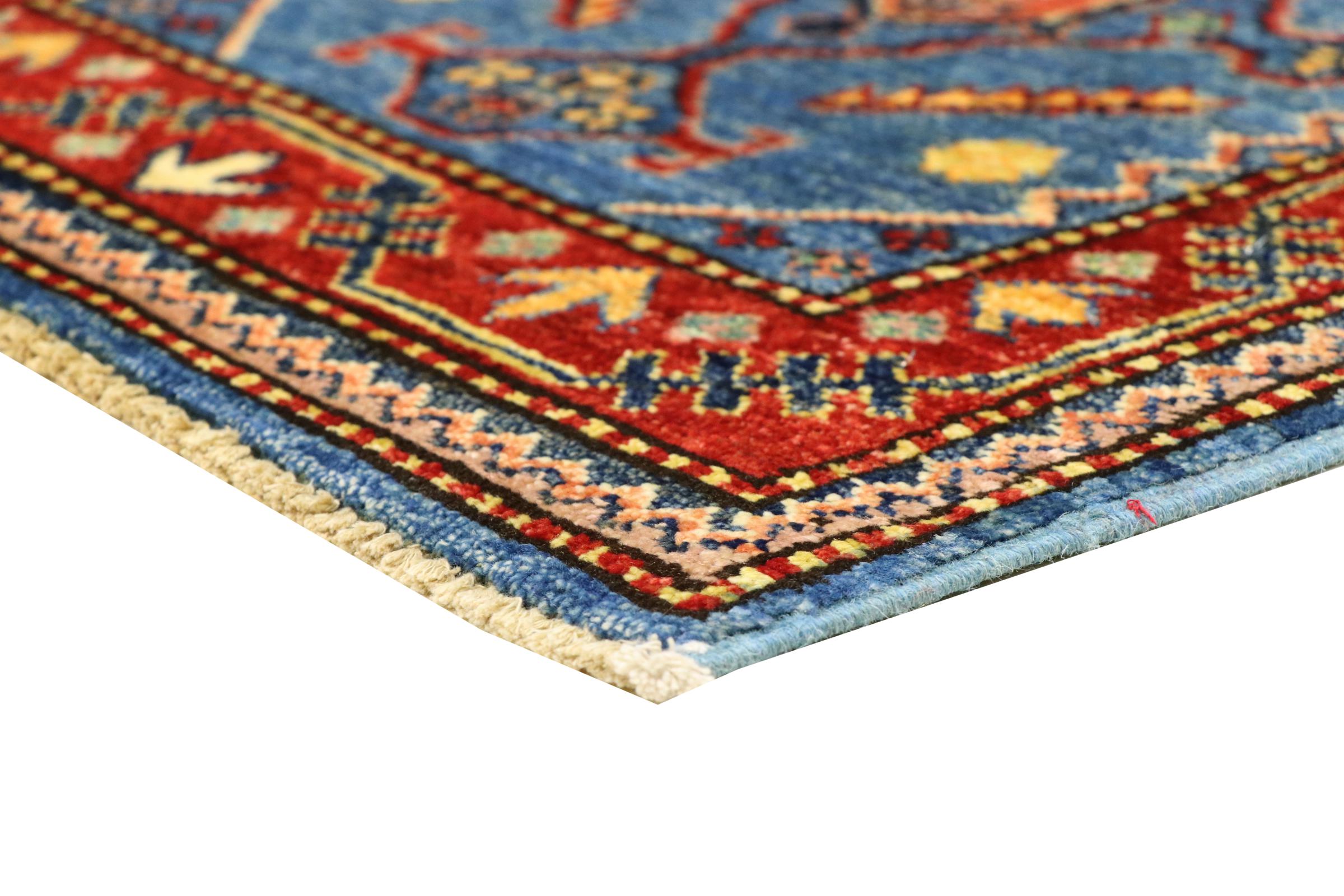 Os tapetes Kazak são originalmente tapetes caucasianos e são considerados os melhores de sua espécie. Eles são feitos à mão com lã de alta qualidade e são caracterizados por seu design com cores naturais quentes e formas geométricas retas.