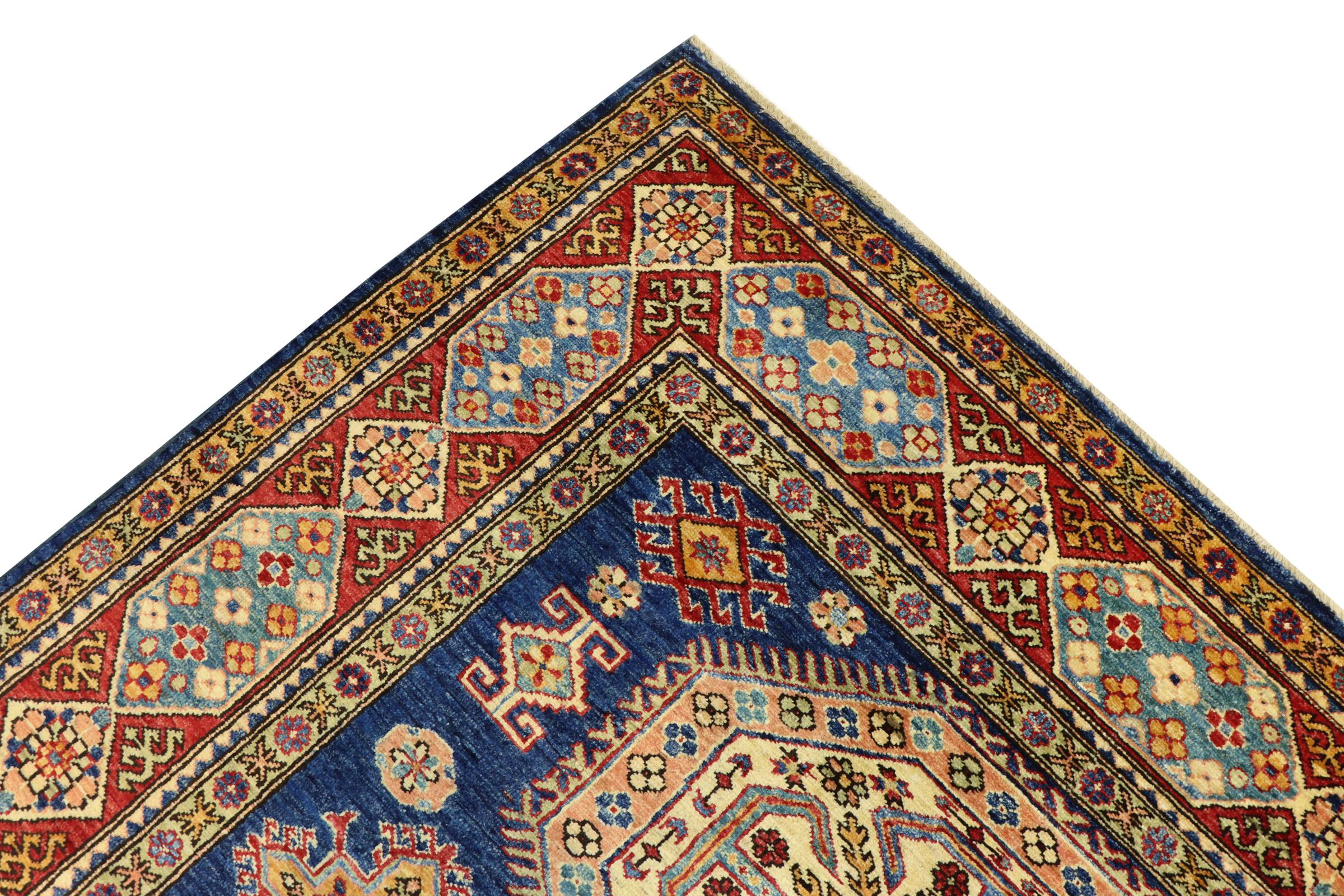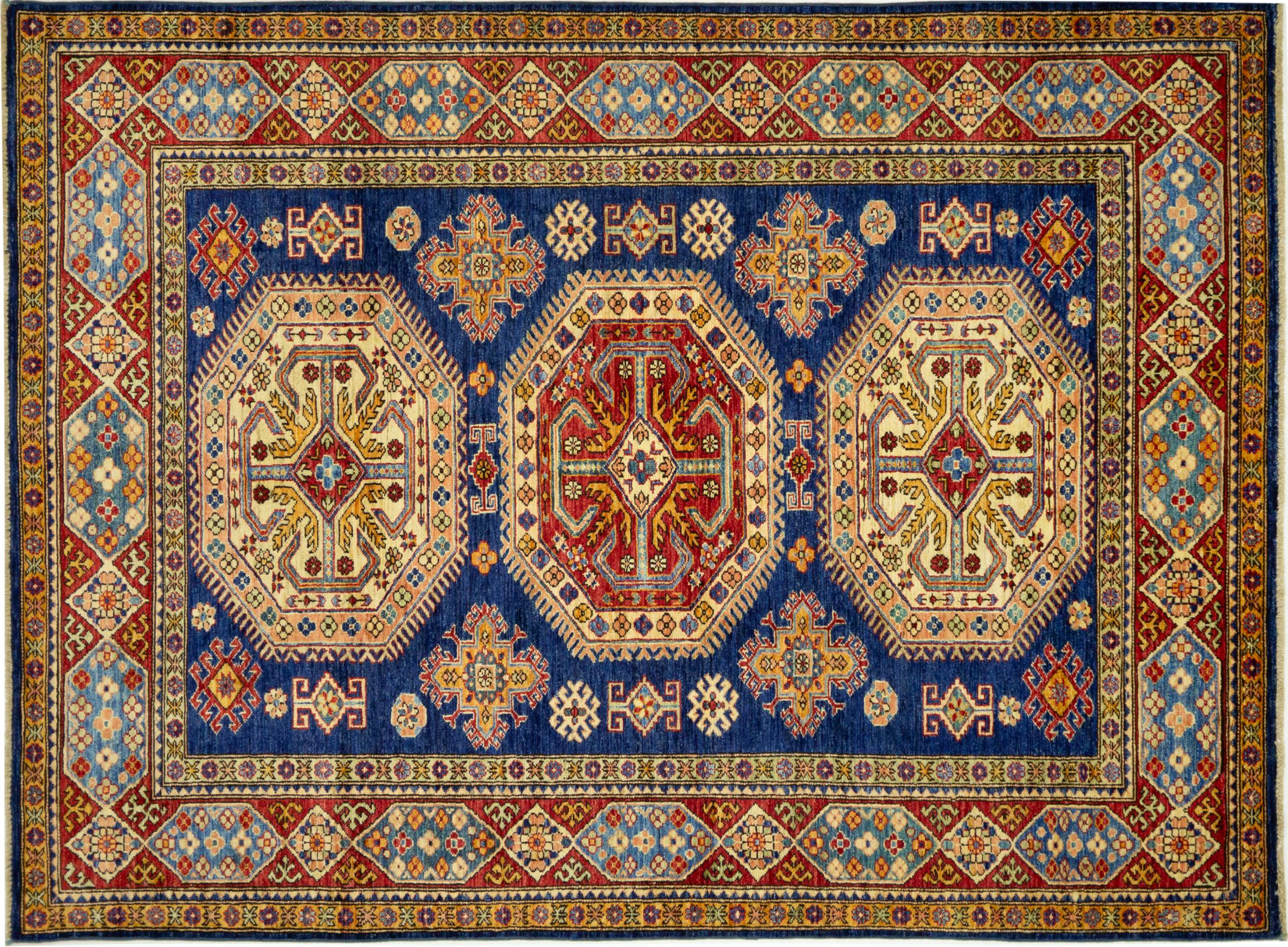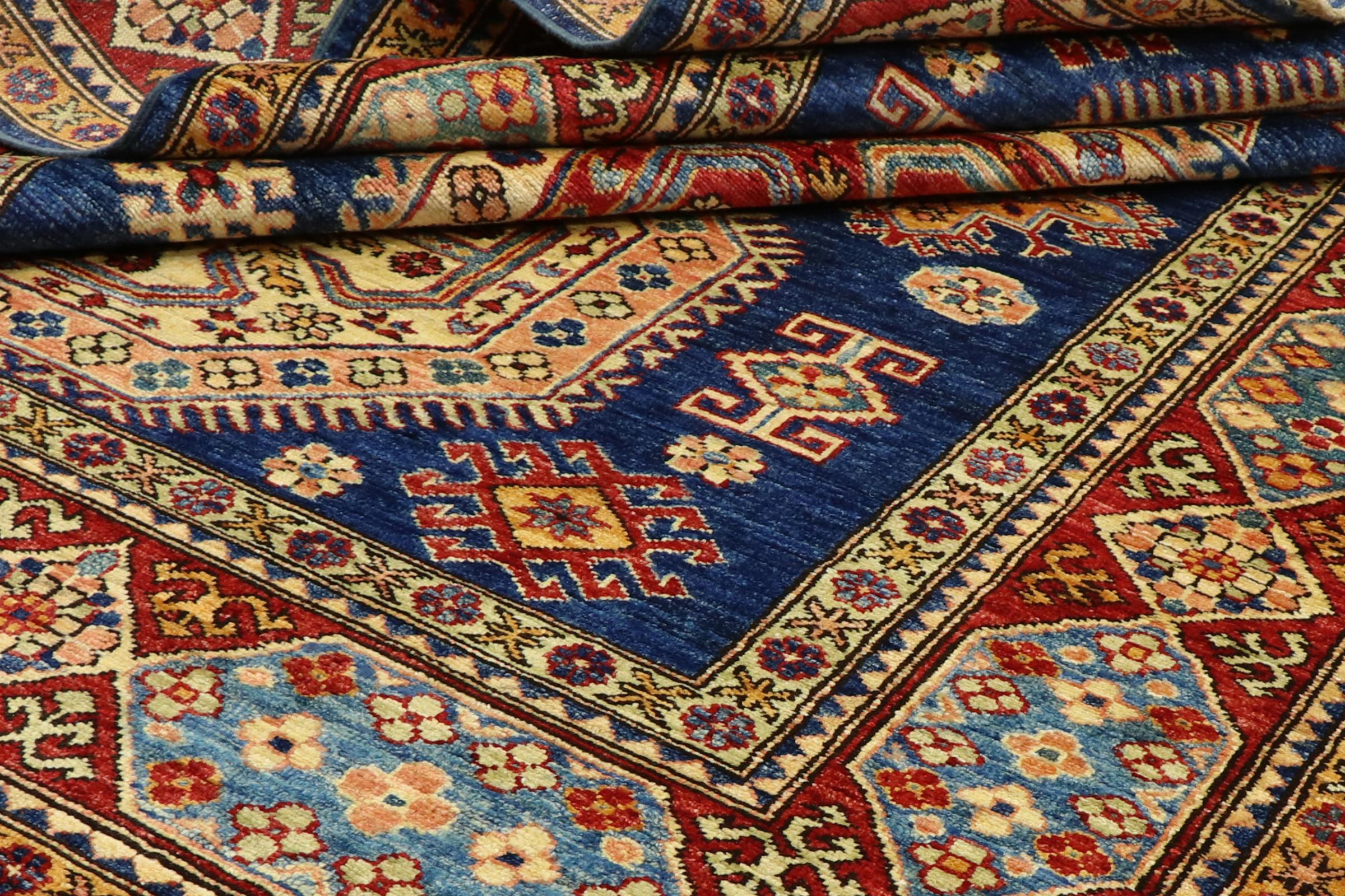 Os tapetes Kazak são originalmente tapetes caucasianos e são considerados os melhores de sua espécie. Eles são feitos à mão com lã de alta qualidade e são caracterizados por seu design com cores naturais quentes e formas geométricas retas.