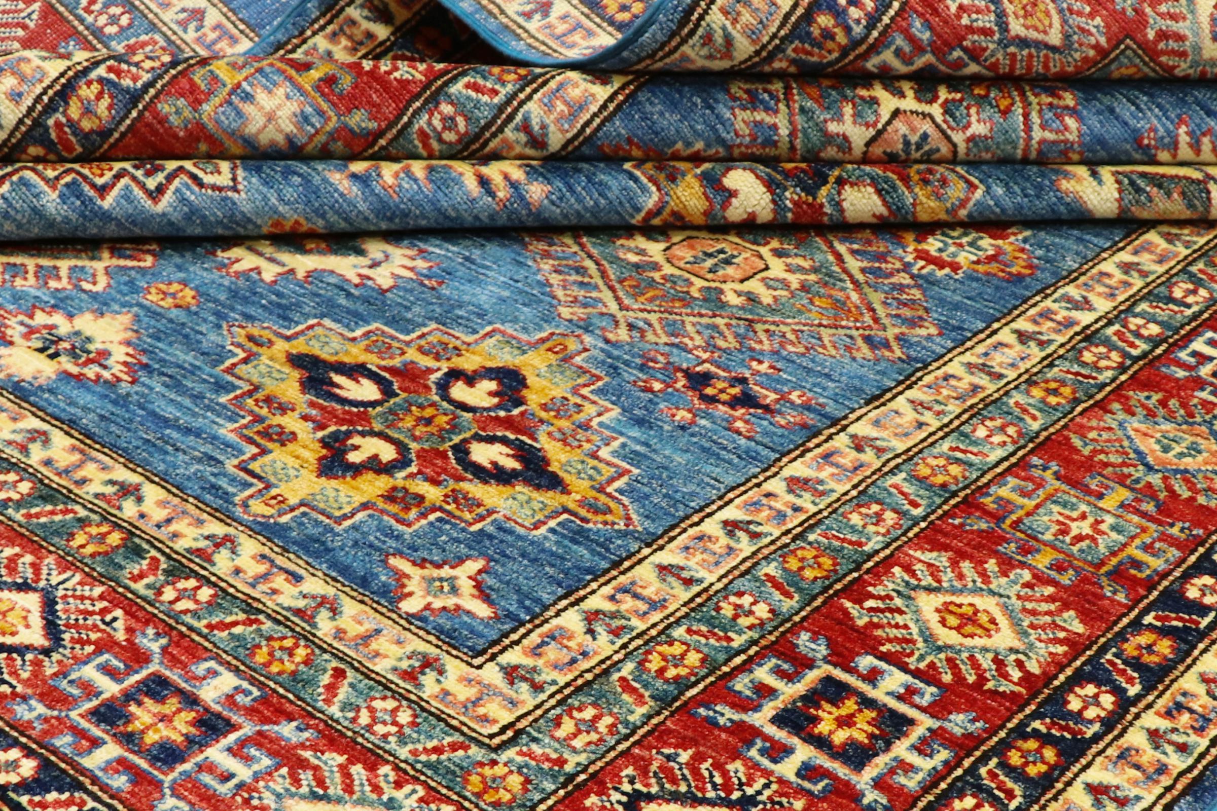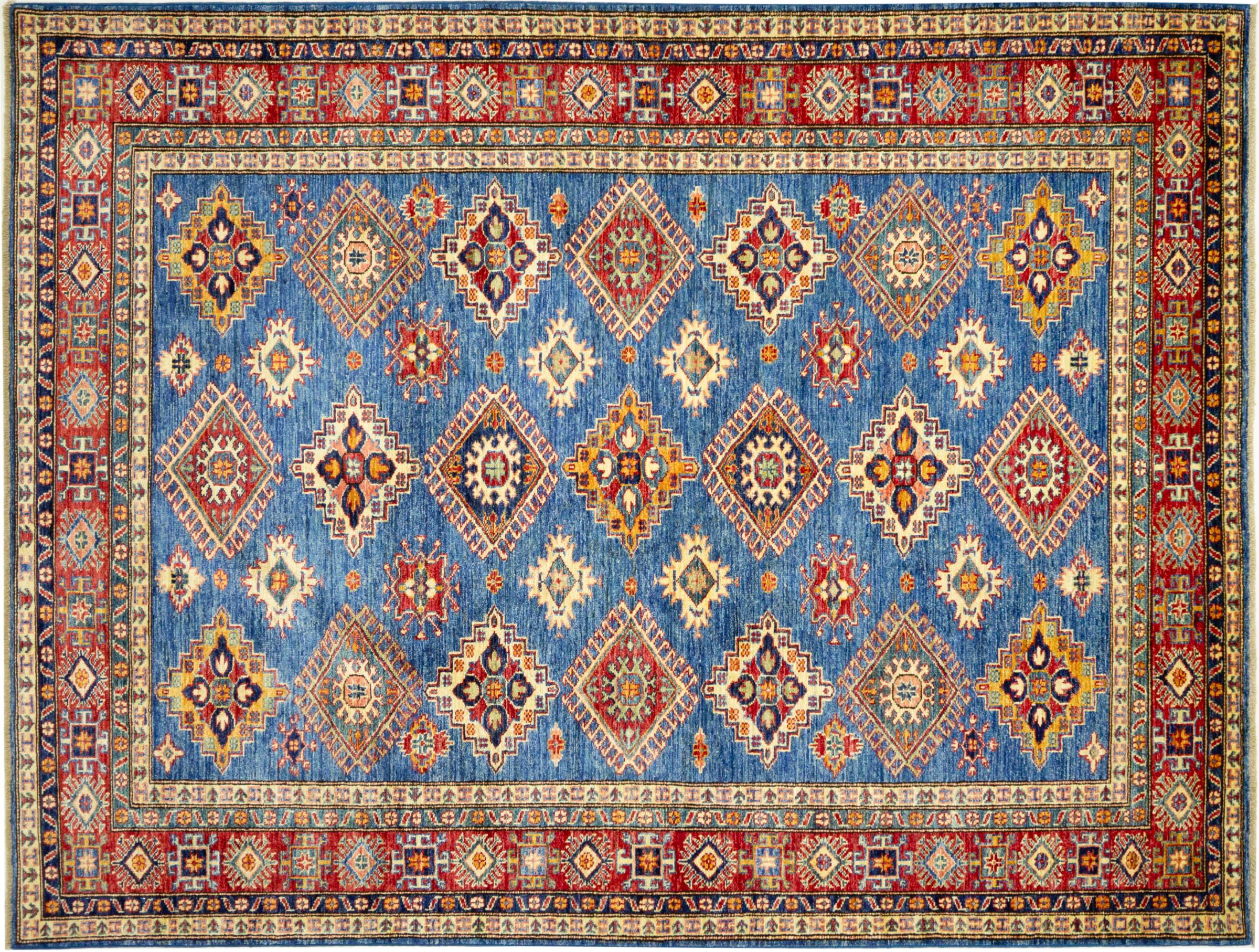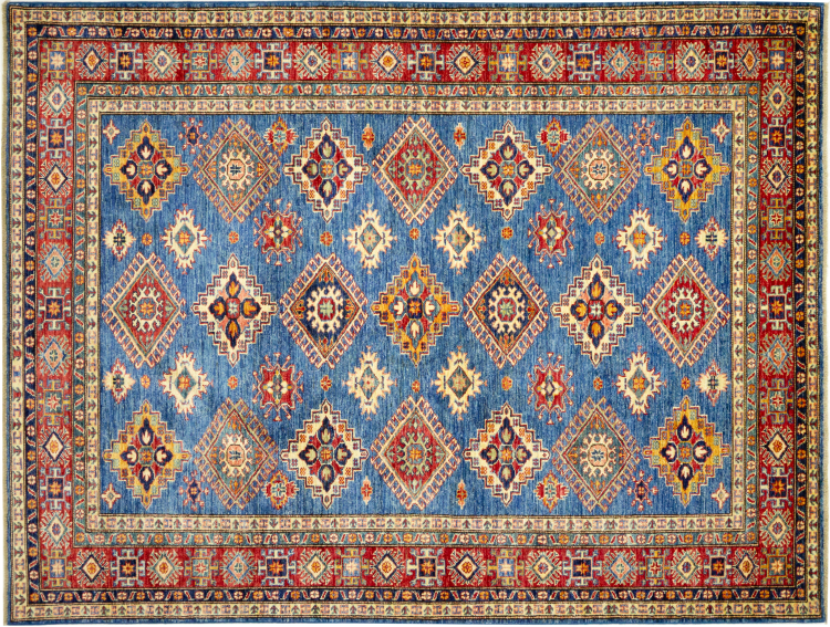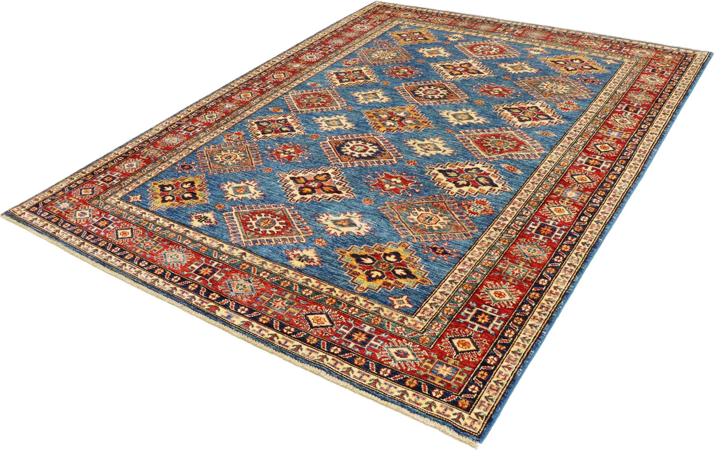 Os tapetes Kazak são originalmente tapetes caucasianos e são considerados os melhores de sua espécie. Eles são feitos à mão com lã de alta qualidade e são caracterizados por seu design com cores naturais quentes e formas geométricas retas.
