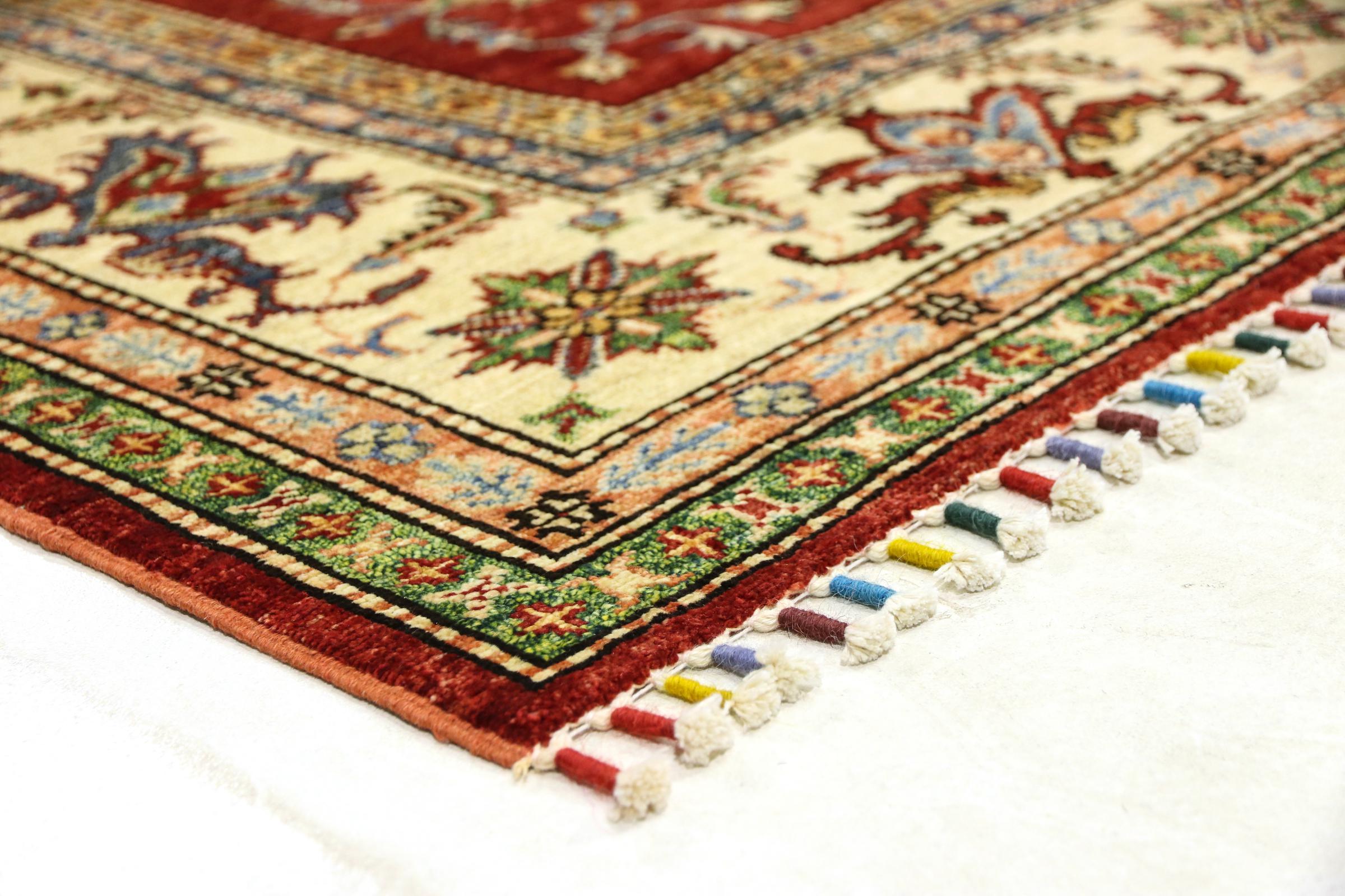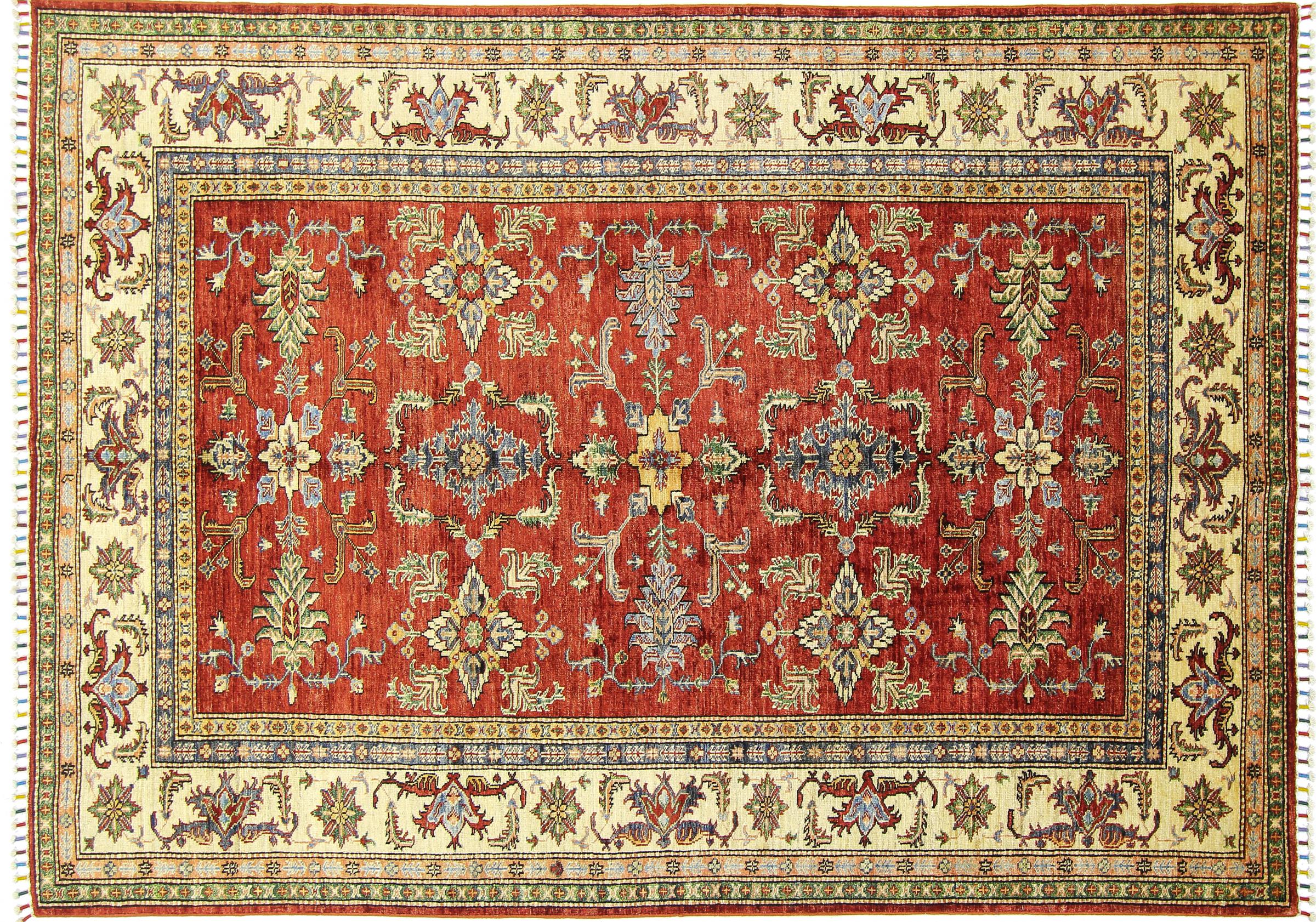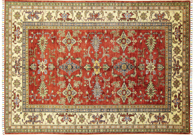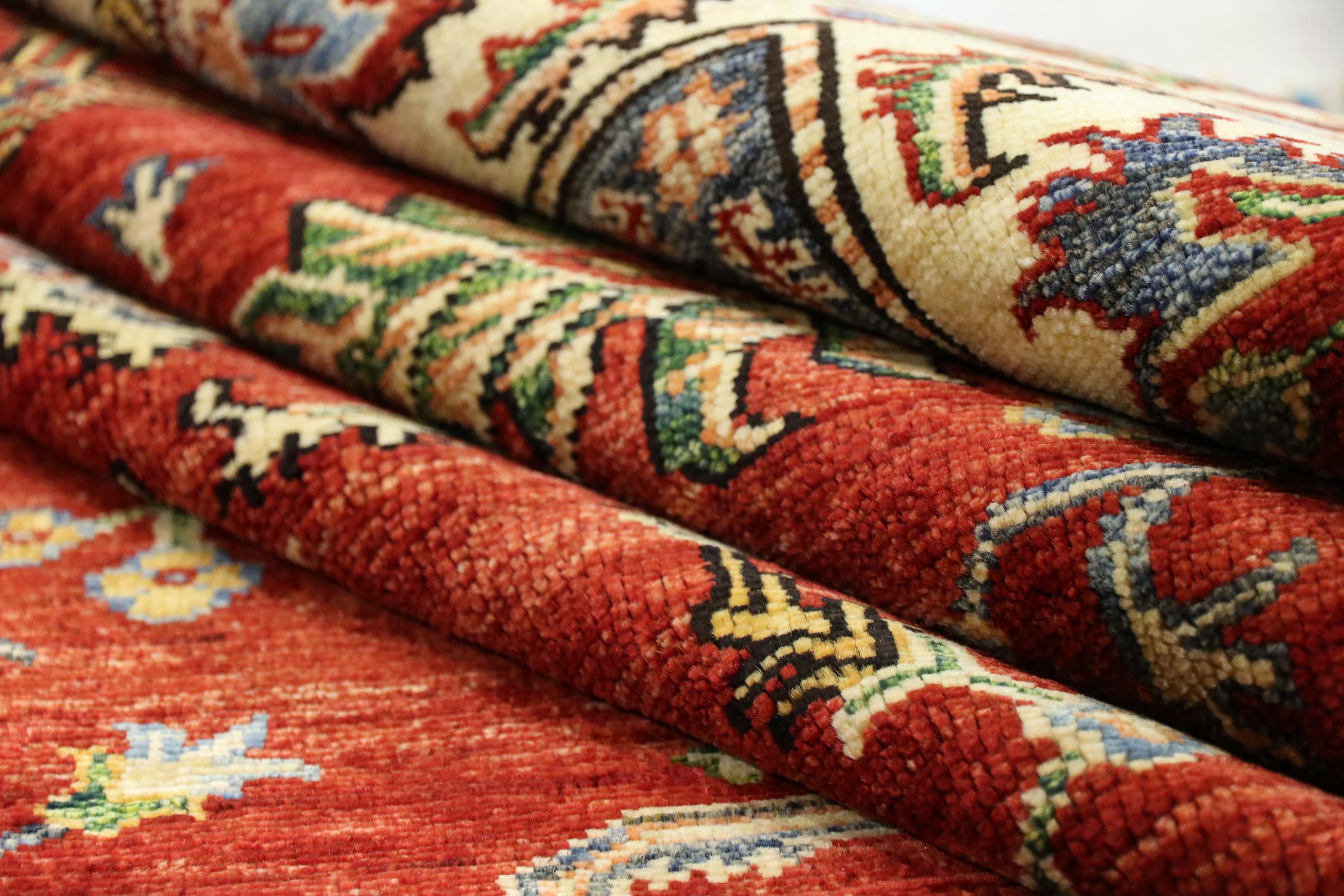 Os tapetes Kazak são originalmente tapetes caucasianos e são considerados os melhores de sua espécie. Eles são feitos à mão com lã de alta qualidade e são caracterizados por seu design com cores naturais quentes e formas geométricas retas.