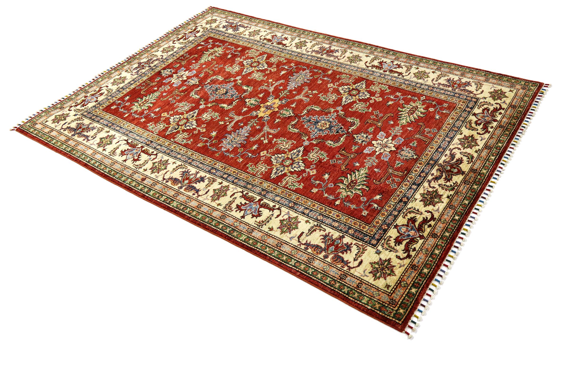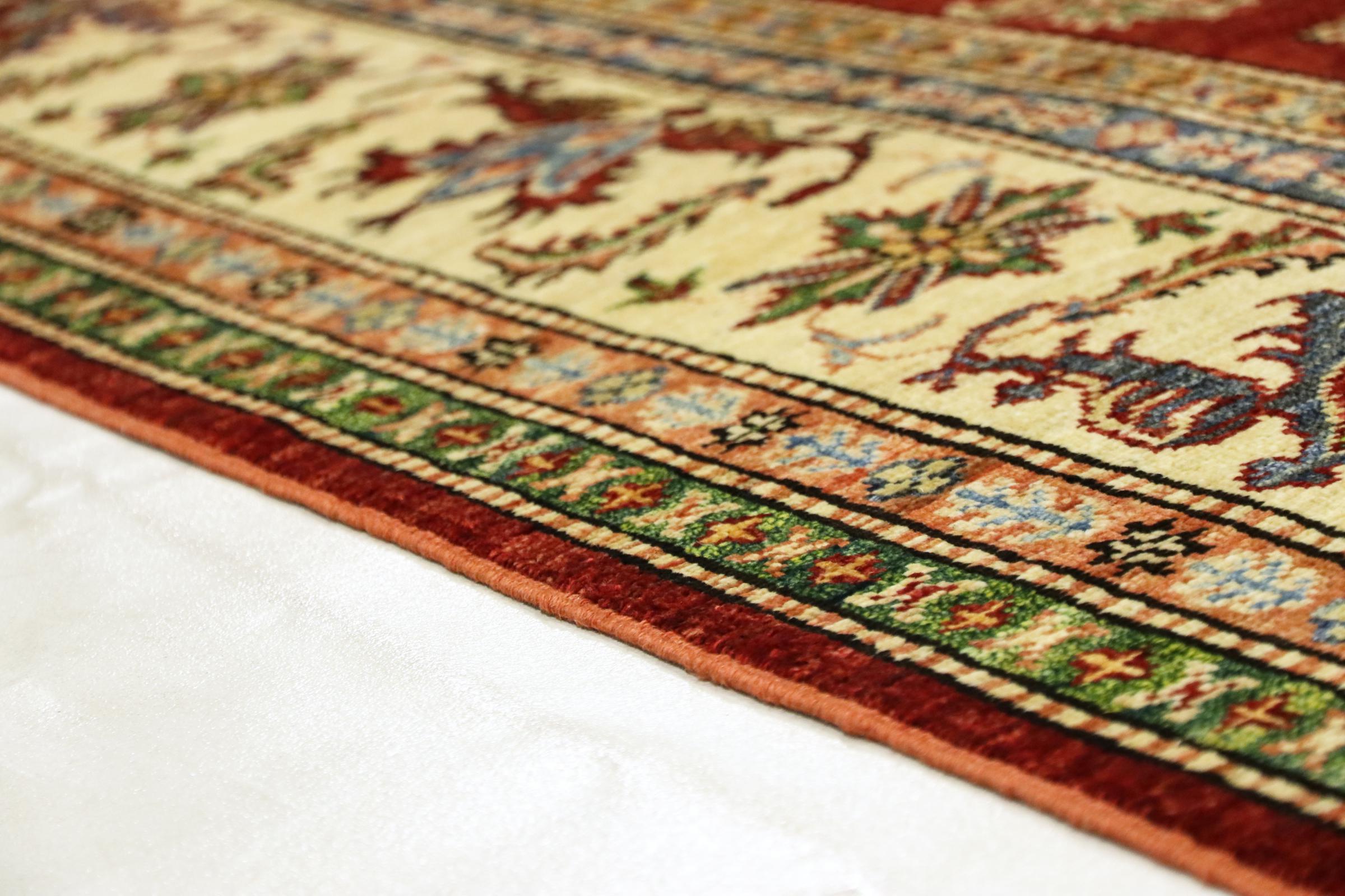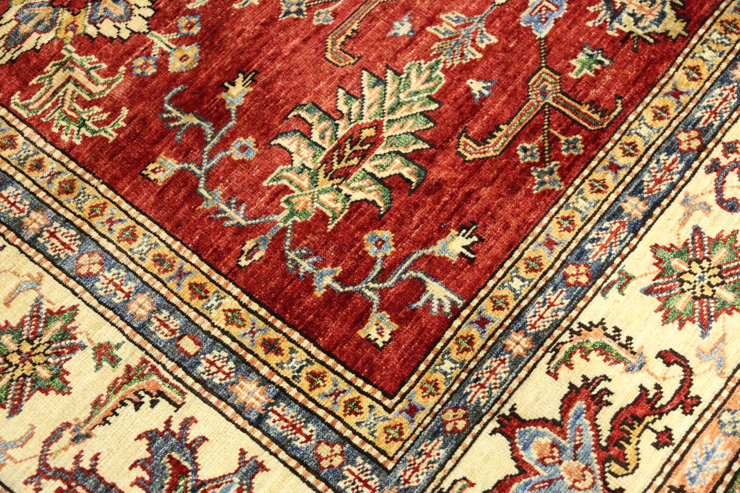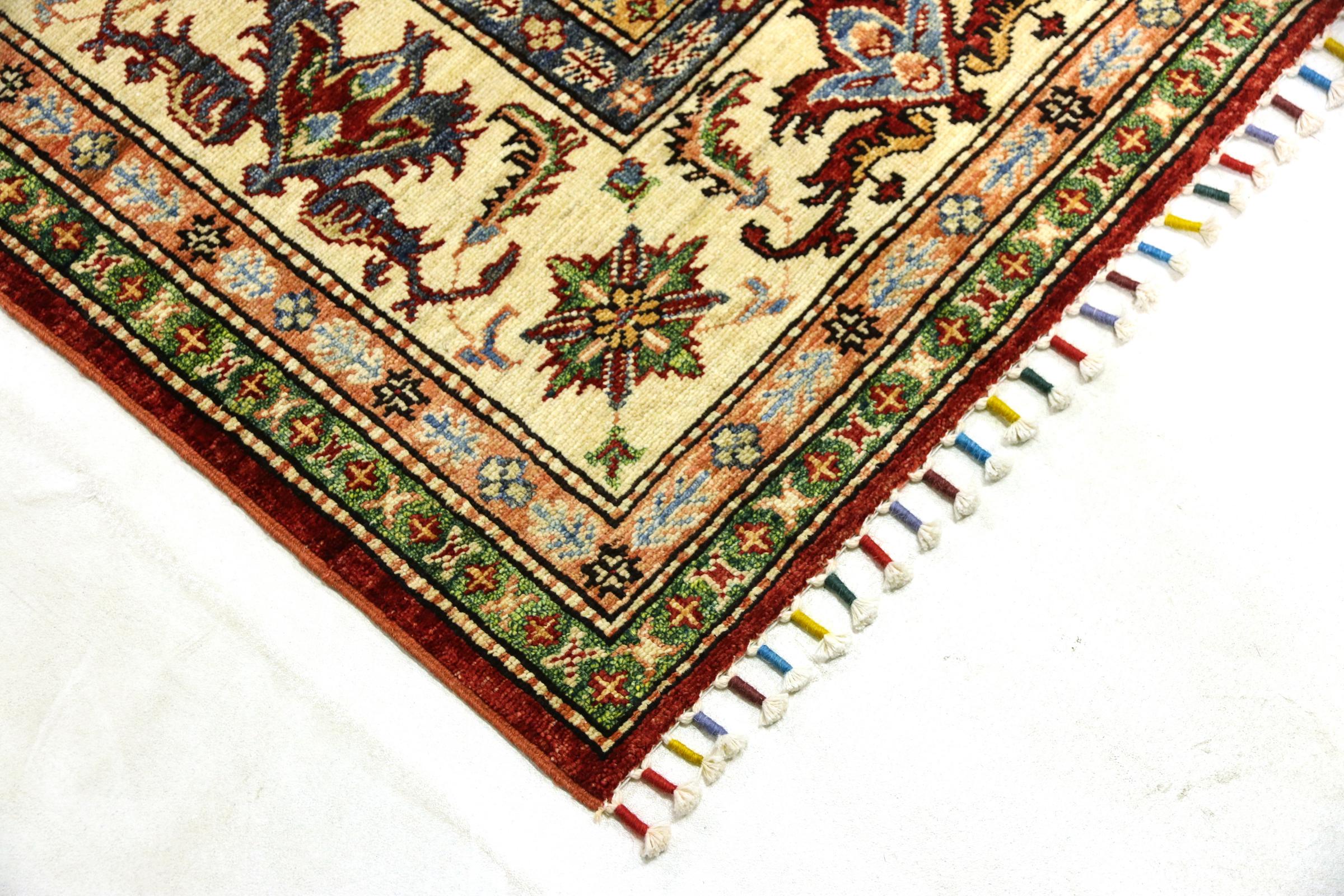 Os tapetes Kazak são originalmente tapetes caucasianos e são considerados os melhores de sua espécie. Eles são feitos à mão com lã de alta qualidade e são caracterizados por seu design com cores naturais quentes e formas geométricas retas.