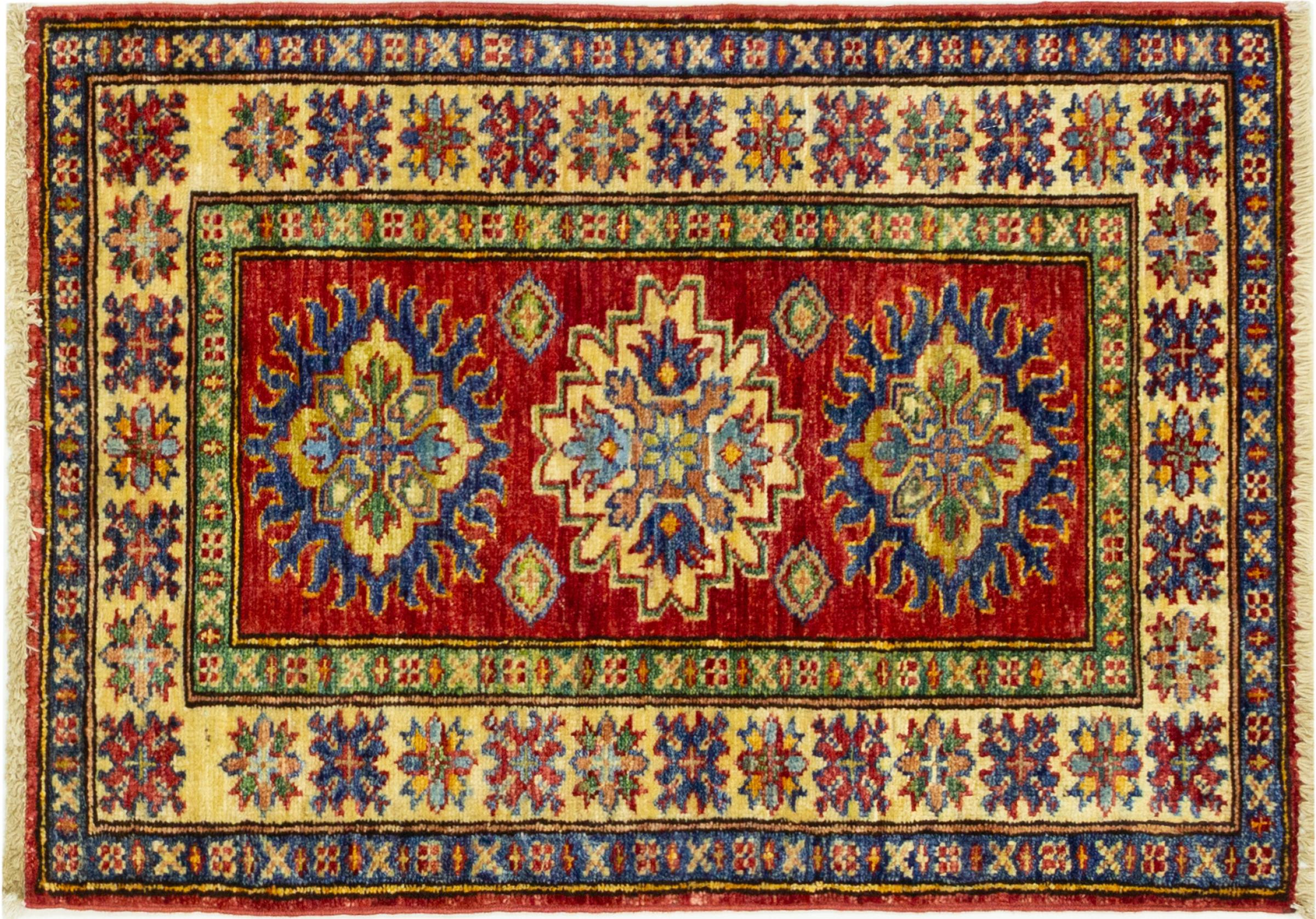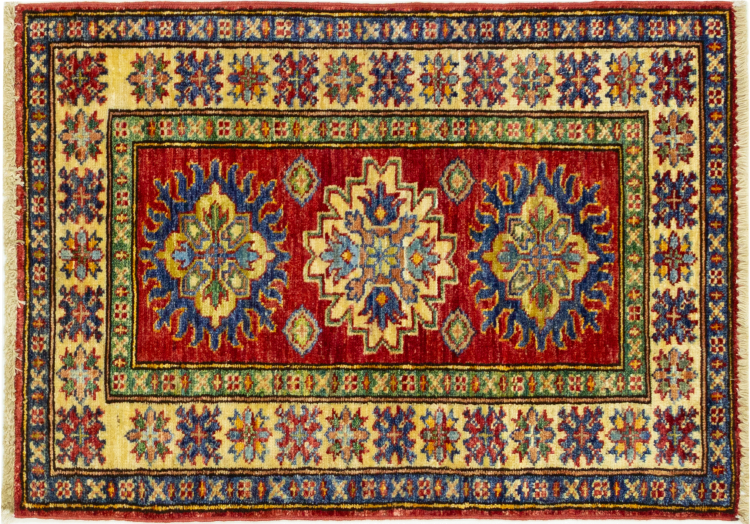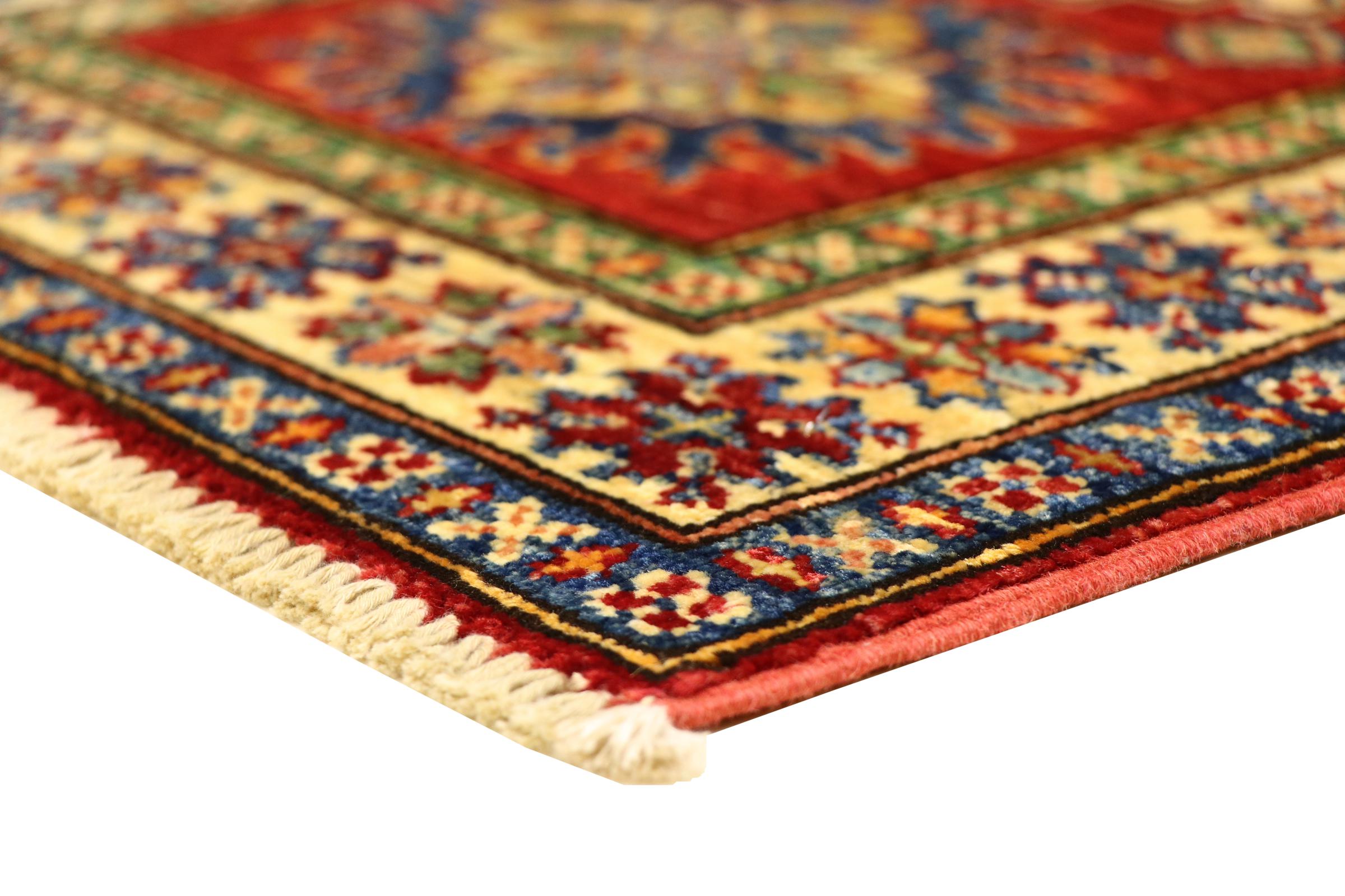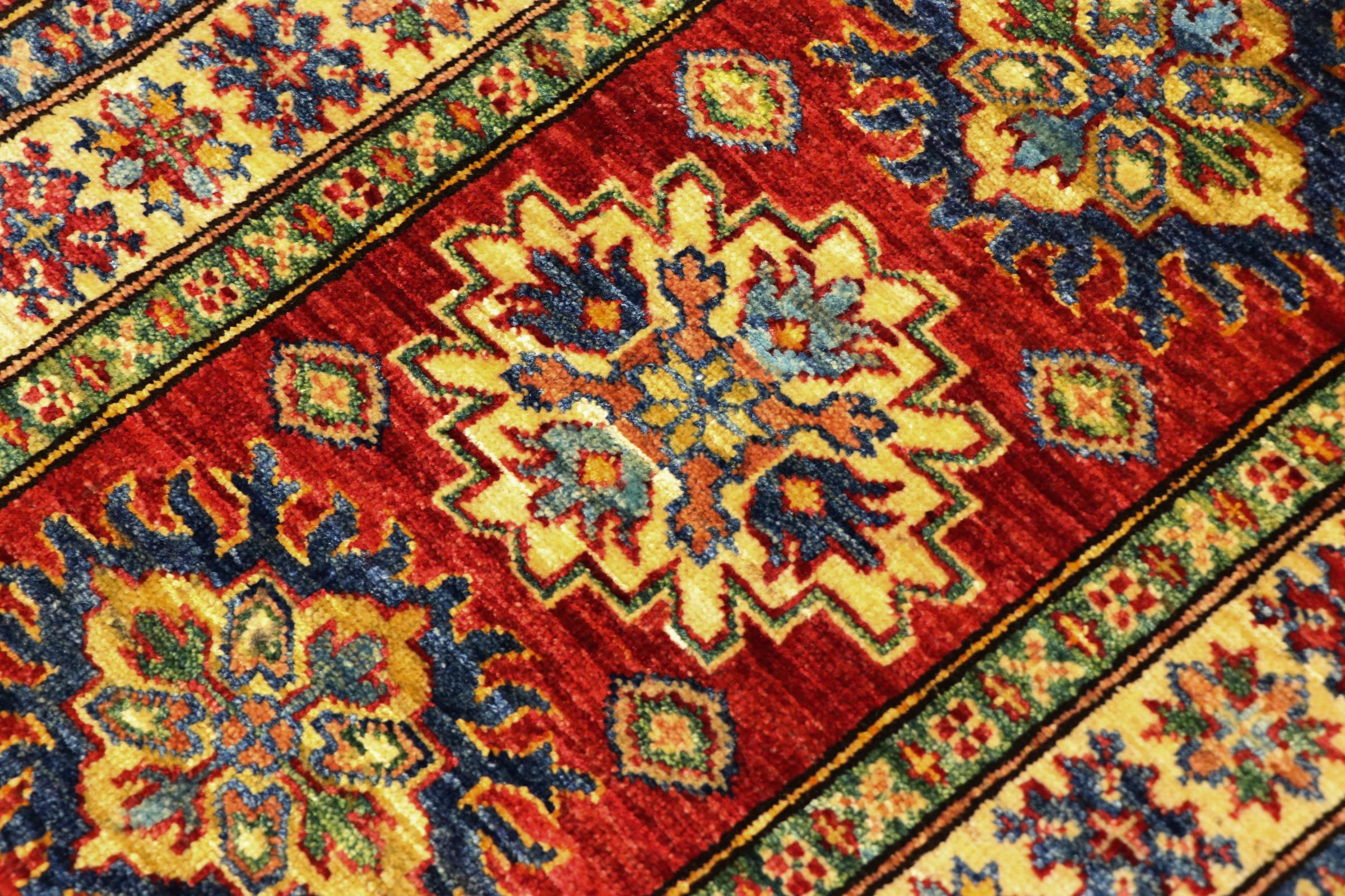 Os tapetes Kazak são originalmente tapetes caucasianos e são considerados os melhores de sua espécie. Eles são feitos à mão com lã de alta qualidade e são caracterizados por seu design com cores naturais quentes e formas geométricas retas.