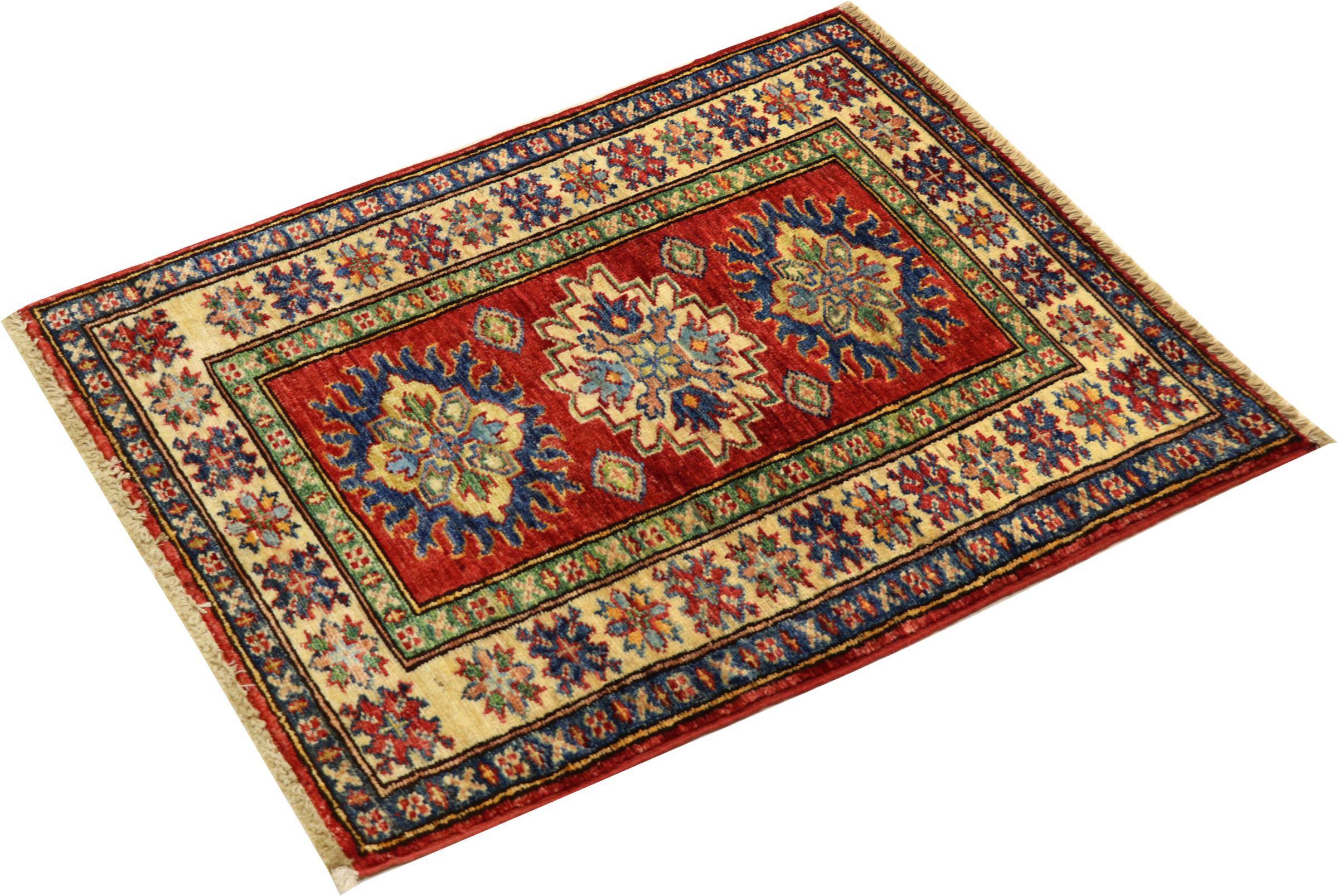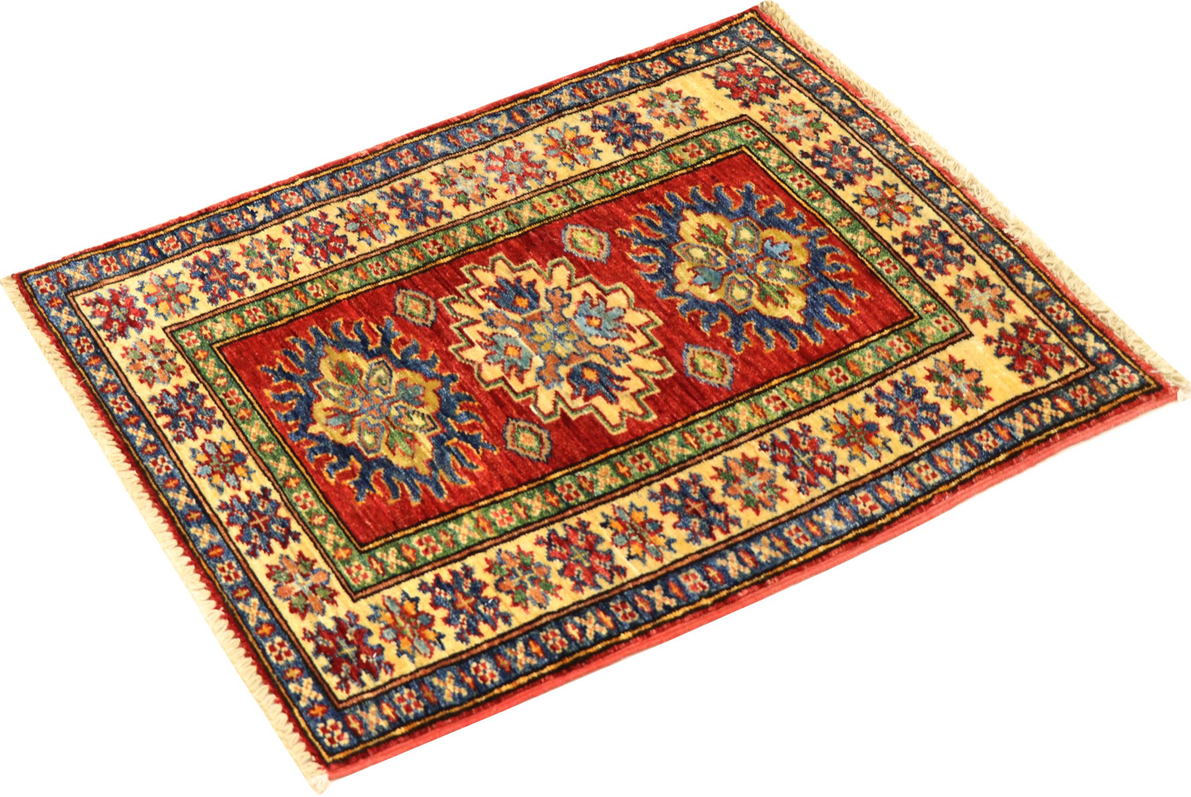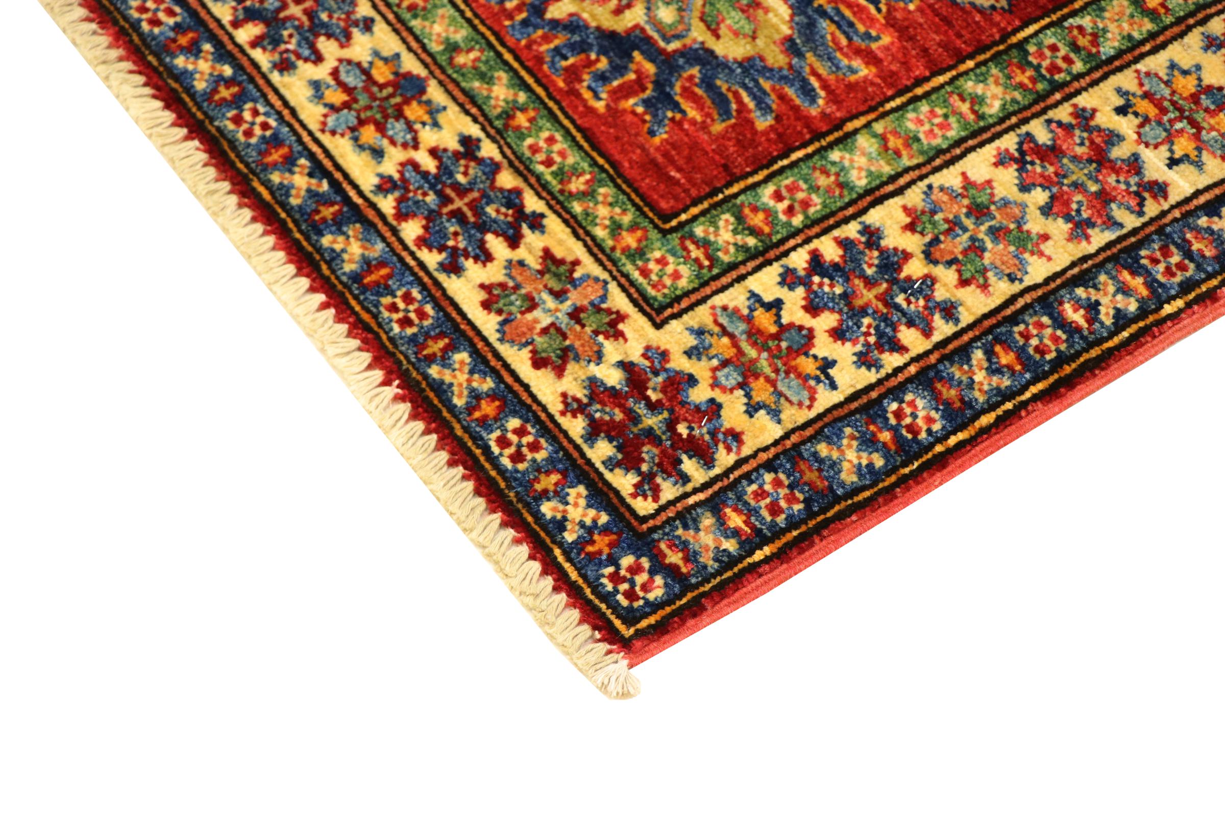 Os tapetes Kazak são originalmente tapetes caucasianos e são considerados os melhores de sua espécie. Eles são feitos à mão com lã de alta qualidade e são caracterizados por seu design com cores naturais quentes e formas geométricas retas.