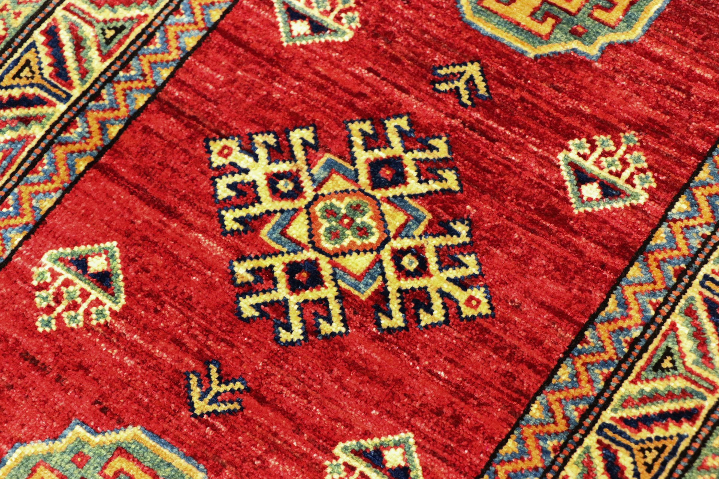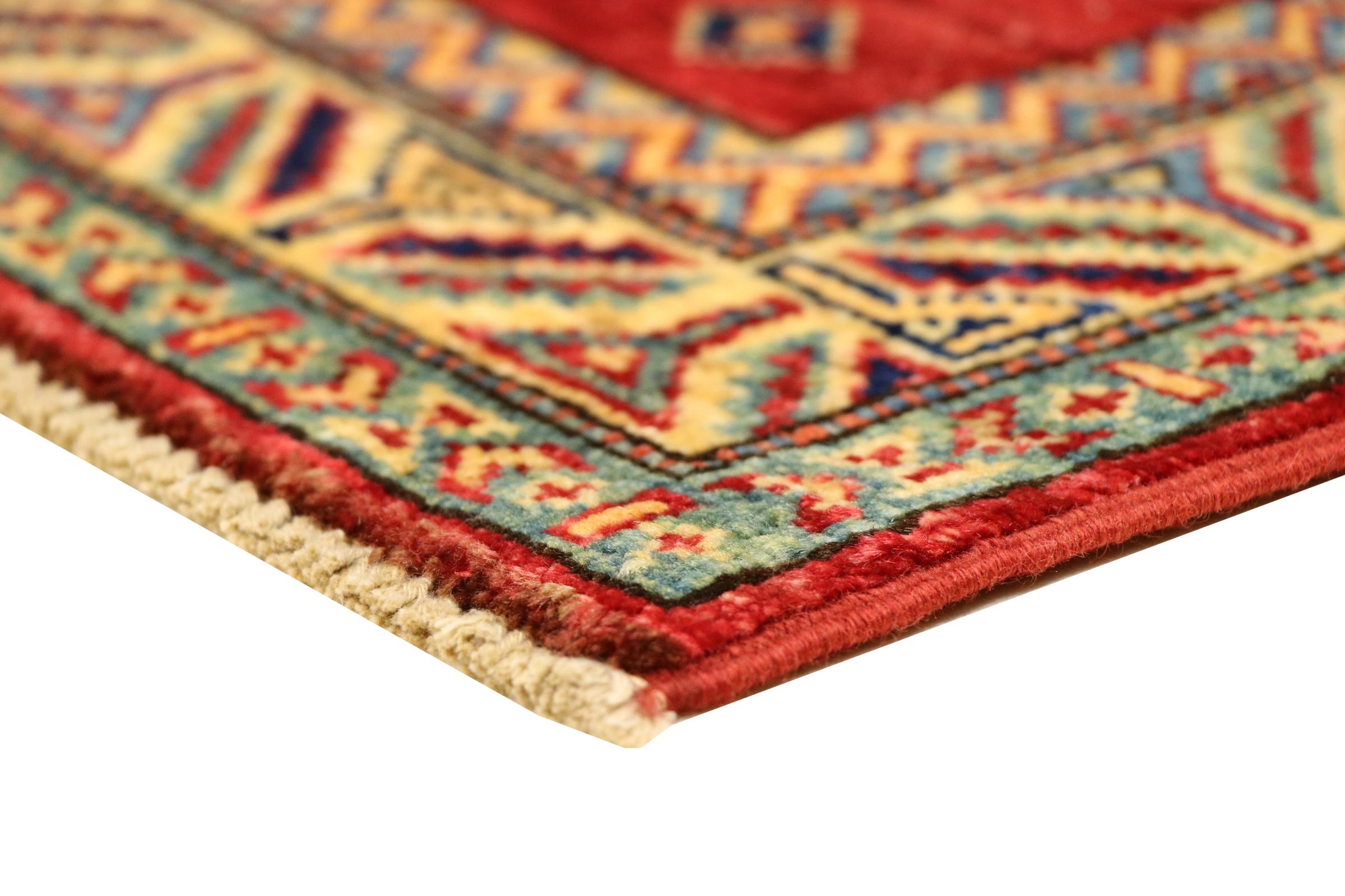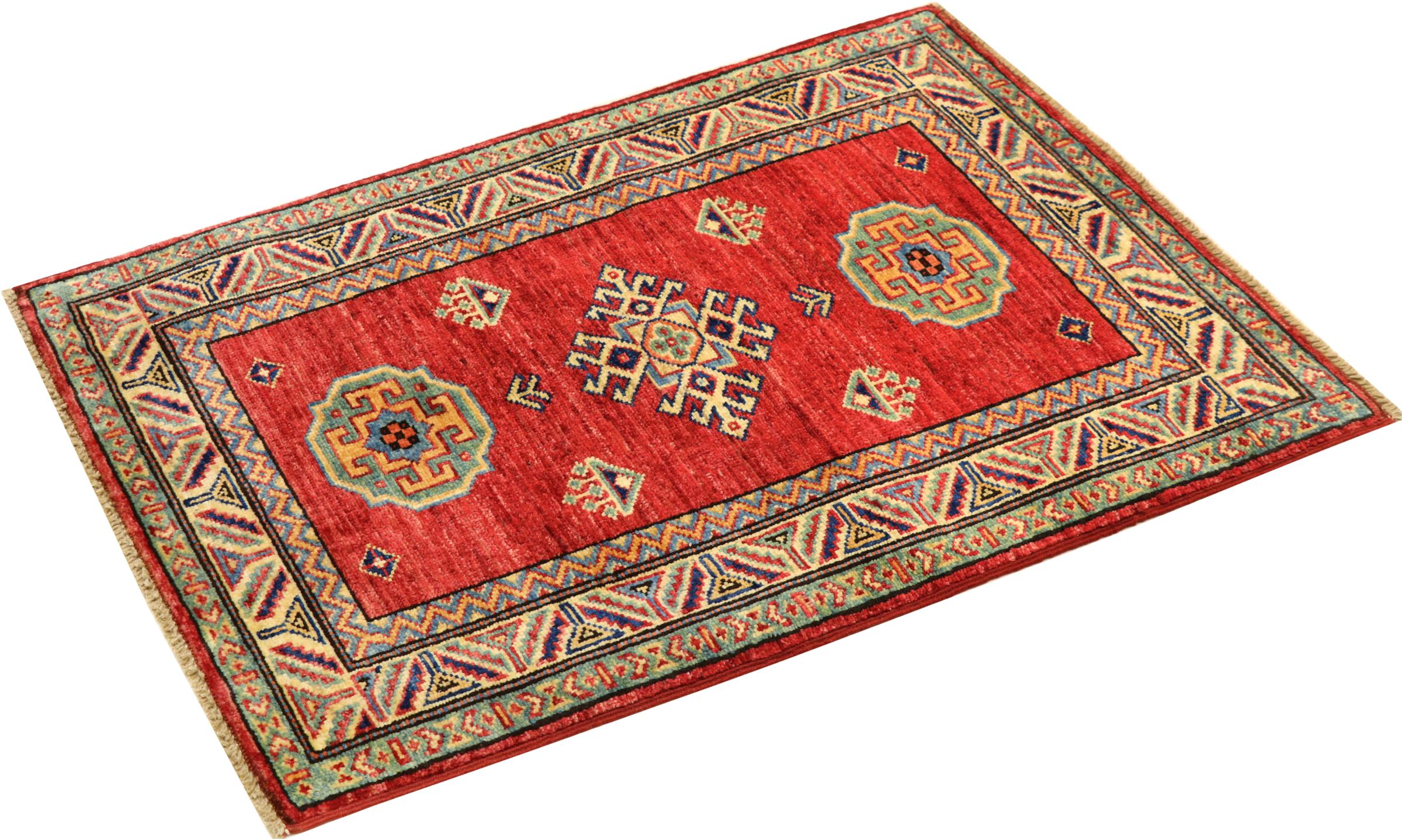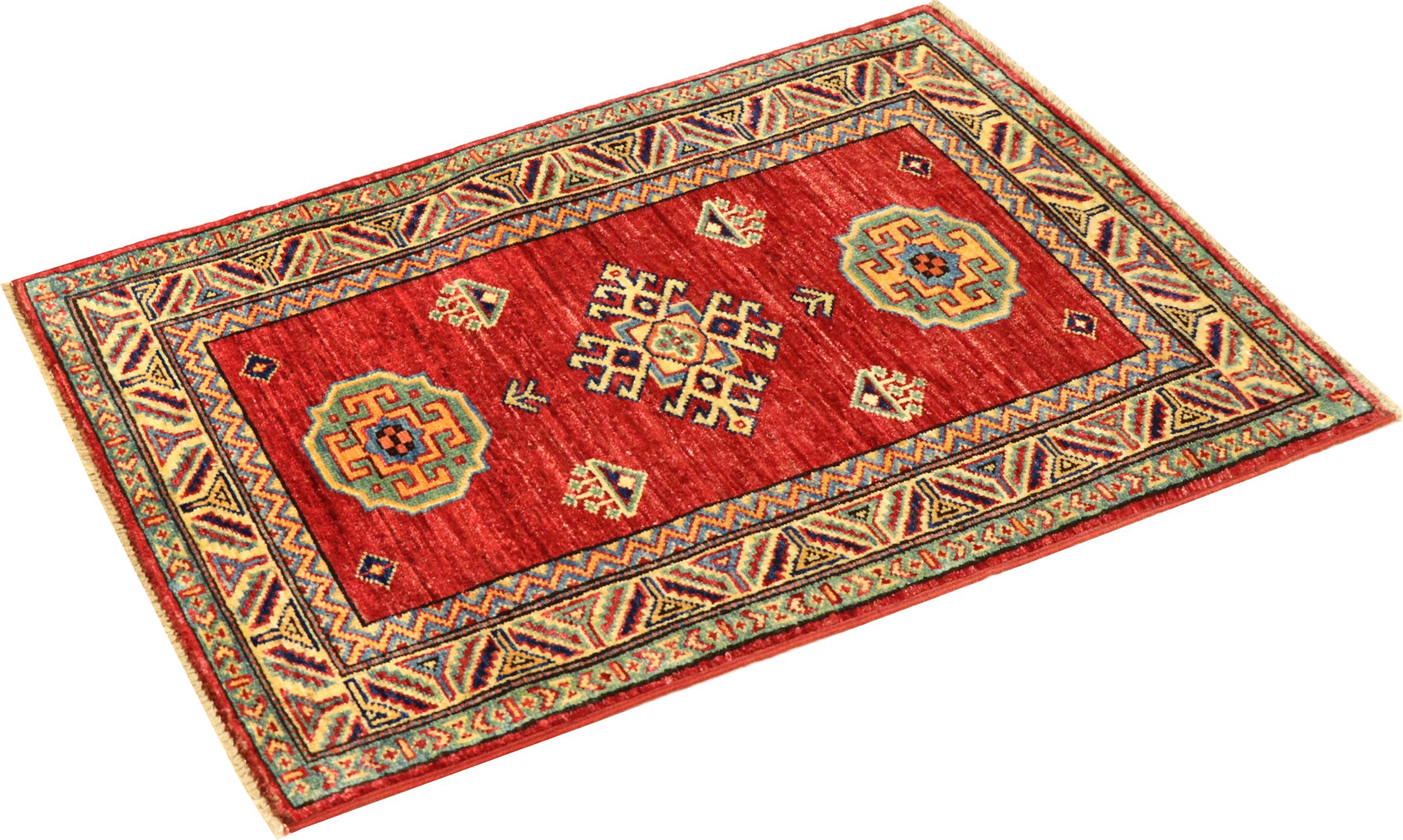 Os tapetes Kazak são originalmente tapetes caucasianos e são considerados os melhores de sua espécie. Eles são feitos à mão com lã de alta qualidade e são caracterizados por seu design com cores naturais quentes e formas geométricas retas.