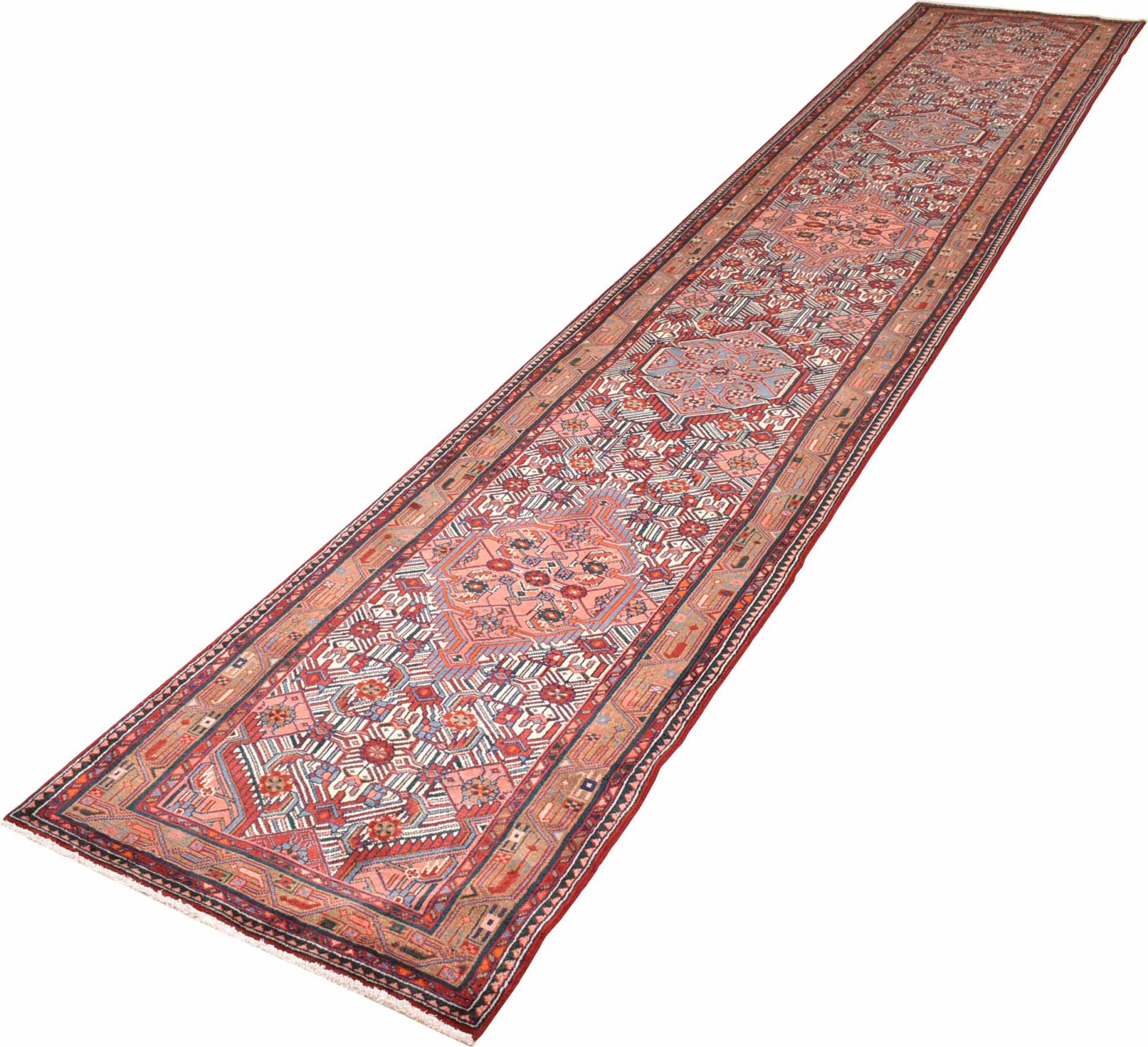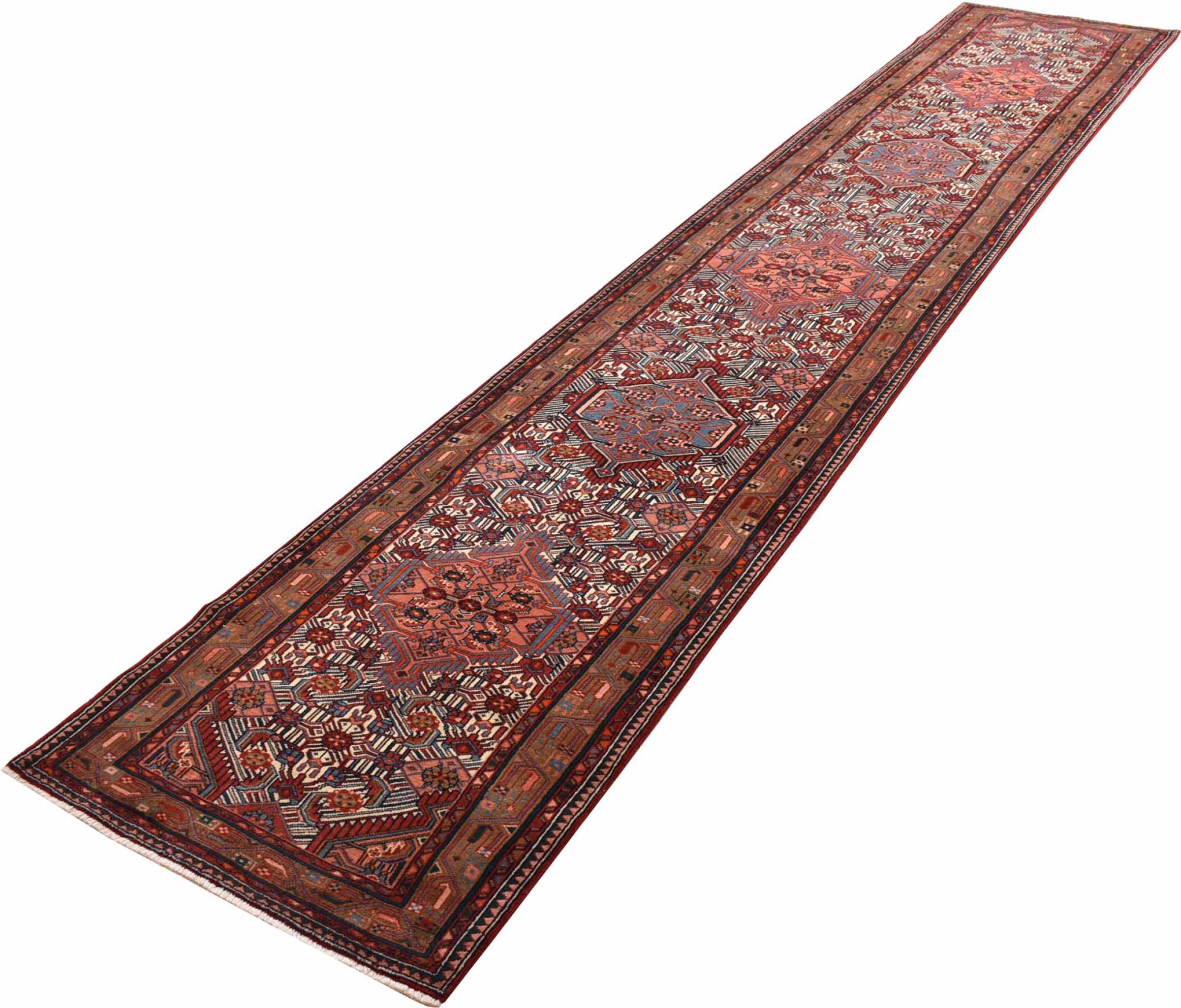 Nº do Tapete: 300904003687928 Tamanho: 479x88 cm Espessura: aproximadamente 12 mm Nós: 72 000 - 90 000 / m² Processamento: Atado à mão Veludo: Lã tecida à mão Urdidura: Algodão Origem: Pérsia / Iran Idade: Novo Peso: aproximadamente 15 kg Também conhecido como Huseinabad Em armazém: Único - Apenas 1 em stock