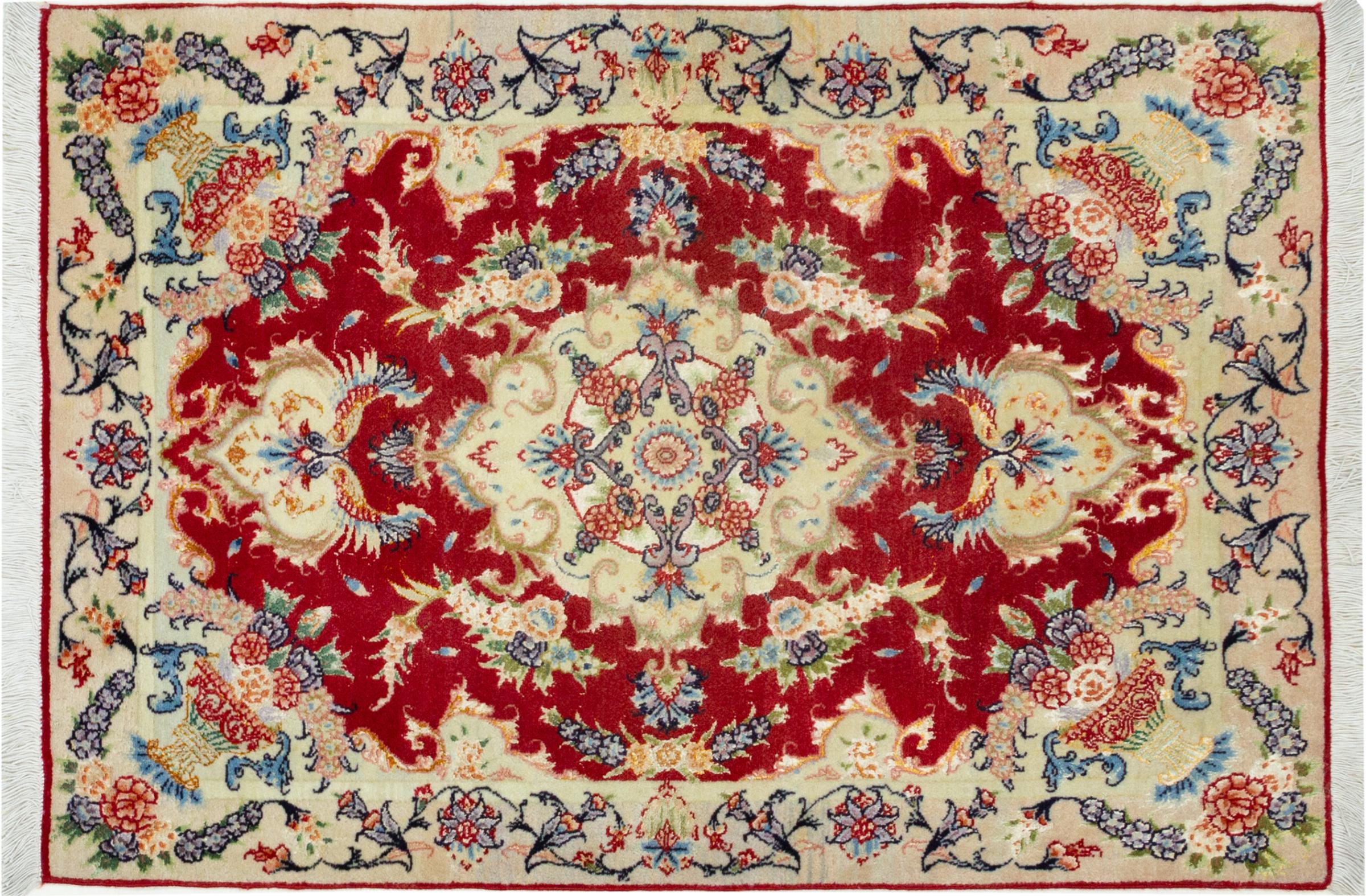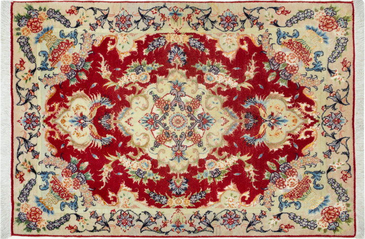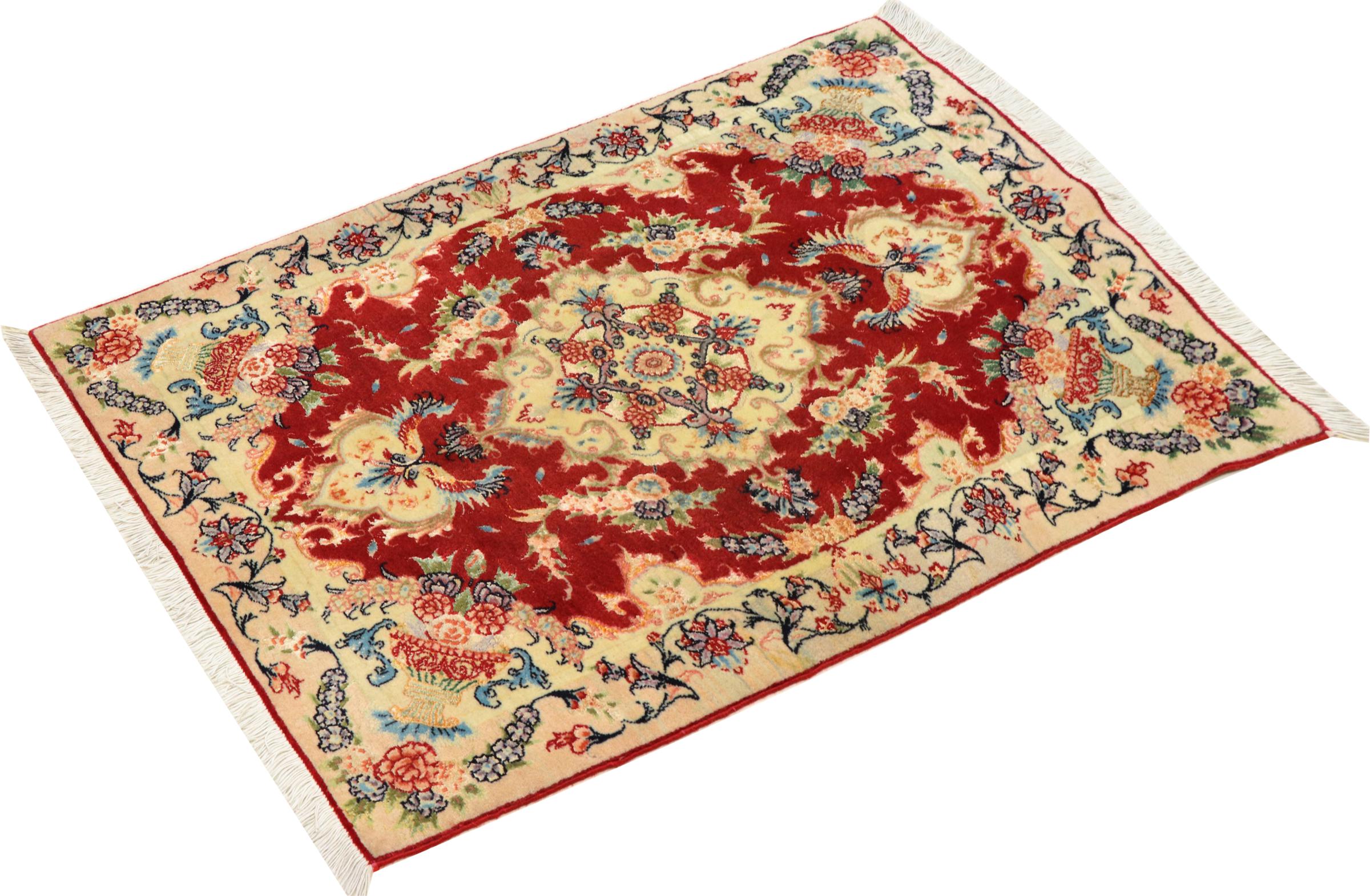 Este Tabriz foi feito à mão numa pequena aldeia em redor da cidade de Tabriz. Tem a excelente qualidade conhecida dos bons tapetes persas de Tabriz. Ao mesmo tempo, tem um carácter único de origem.