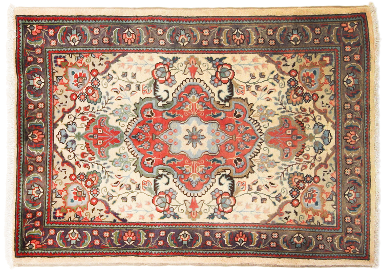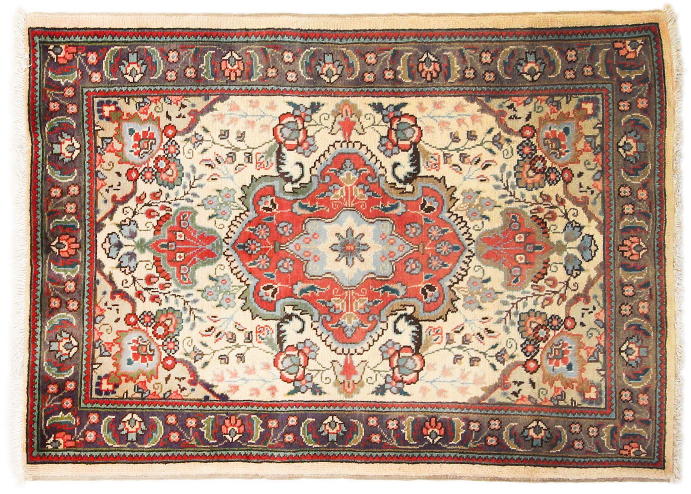 Nº do Tapete: 19225900743632 Tamanho: 144x106 cm Espessura: aproximadamente 10 mm Nós: 200 000 - 250 000 / m² Processamento: Atado à mão Veludo: Lã tecida à mão Urdidura: Algodão Origem: Pérsia / Iran Idade: Novo Peso: aproximadamente 5 kg Também conhecido como Tabris, Tabriz, Tebris, Tebriz, Täbris, Village Em armazém: Único - Apenas 1 em stock