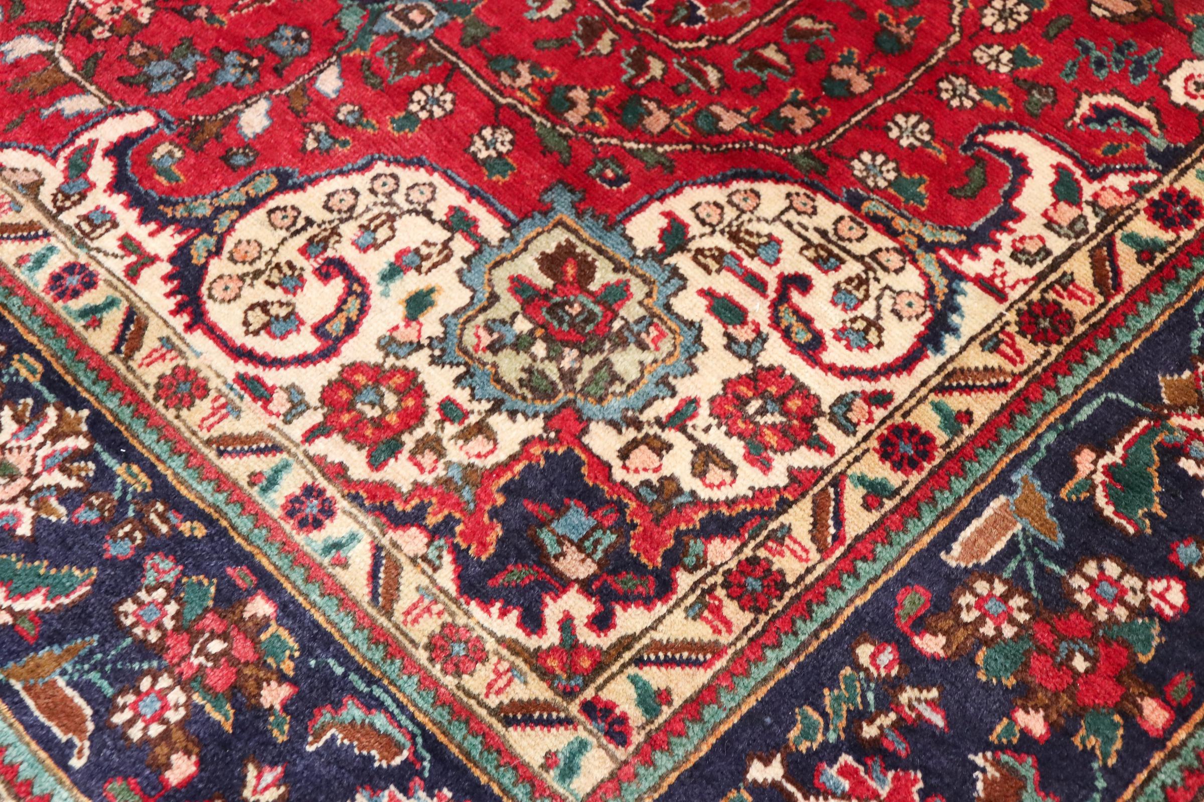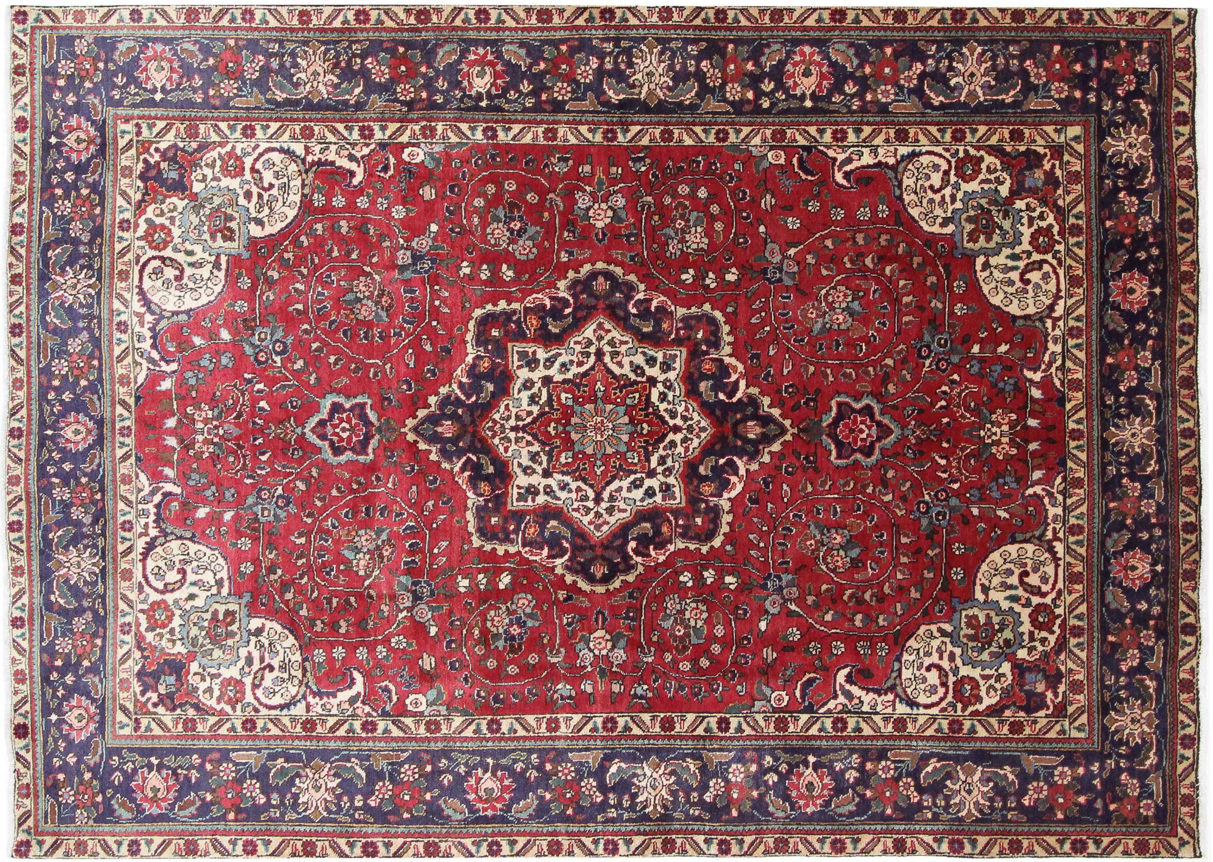 Nº do Tapete: 100533005356252 Tamanho: 301x214 cm Espessura: aproximadamente 10 mm Nós: 72 000 - 90 000 / m² Processamento: Atado à mão Veludo: Lã tecida à mão Urdidura: Algodão Origem: Pérsia / Iran Idade: Novo Peso: aproximadamente 23 kg Também conhecido como Tabris, Tabriz, Tebris, Tebriz, Täbris, Village Em armazém: Único - Apenas 1 em stock