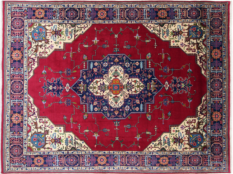 Este Tabriz foi feito à mão numa pequena aldeia em redor da cidade de Tabriz. Tem a excelente qualidade conhecida dos bons tapetes persas de Tabriz. Ao mesmo tempo, tem um carácter único de origem.