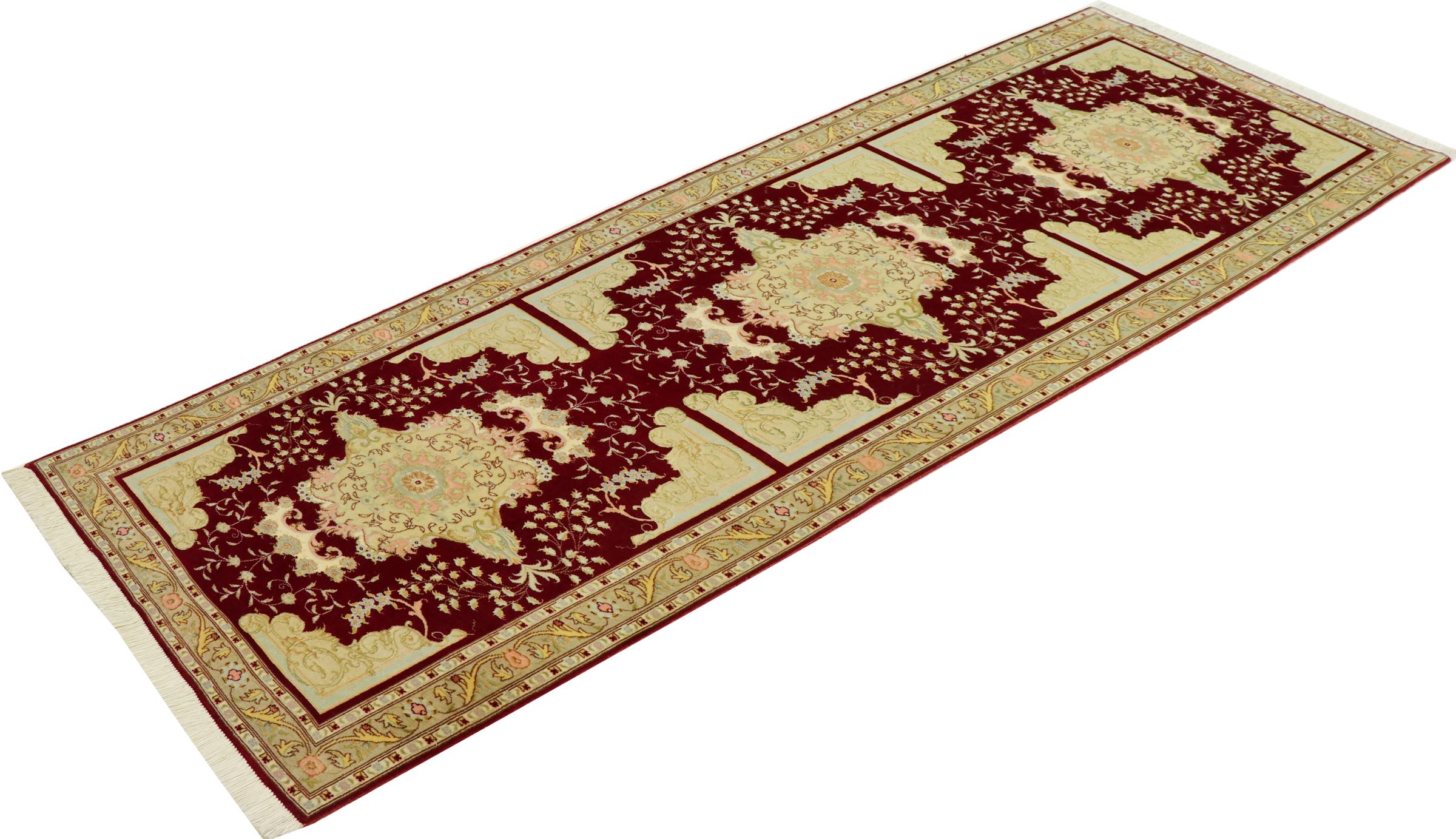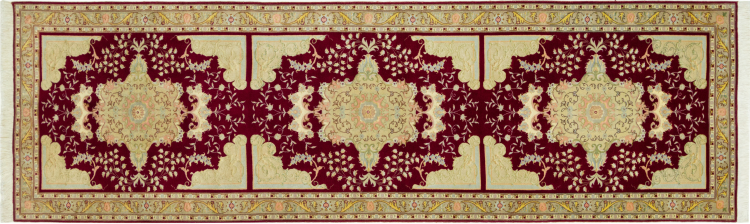 Nº do Tapete: 303902004763249 Tamanho: 9'1"x2'9" ft Espessura: aproximadamente 0.2 in Nós: 284 - 316 / Polegada quadrada Processamento: Atado à mão Veludo: Lã de cortiça com seda Urdidura: Algodão Origem: Pérsia / Iran Idade: Novo Peso: aproximadamente 18 lb Também conhecido como Tabriz, Tabris, Täbris, Tebriz, Tebris, 40Raj, 50Raj Em armazém: Único - Apenas 1 em stock