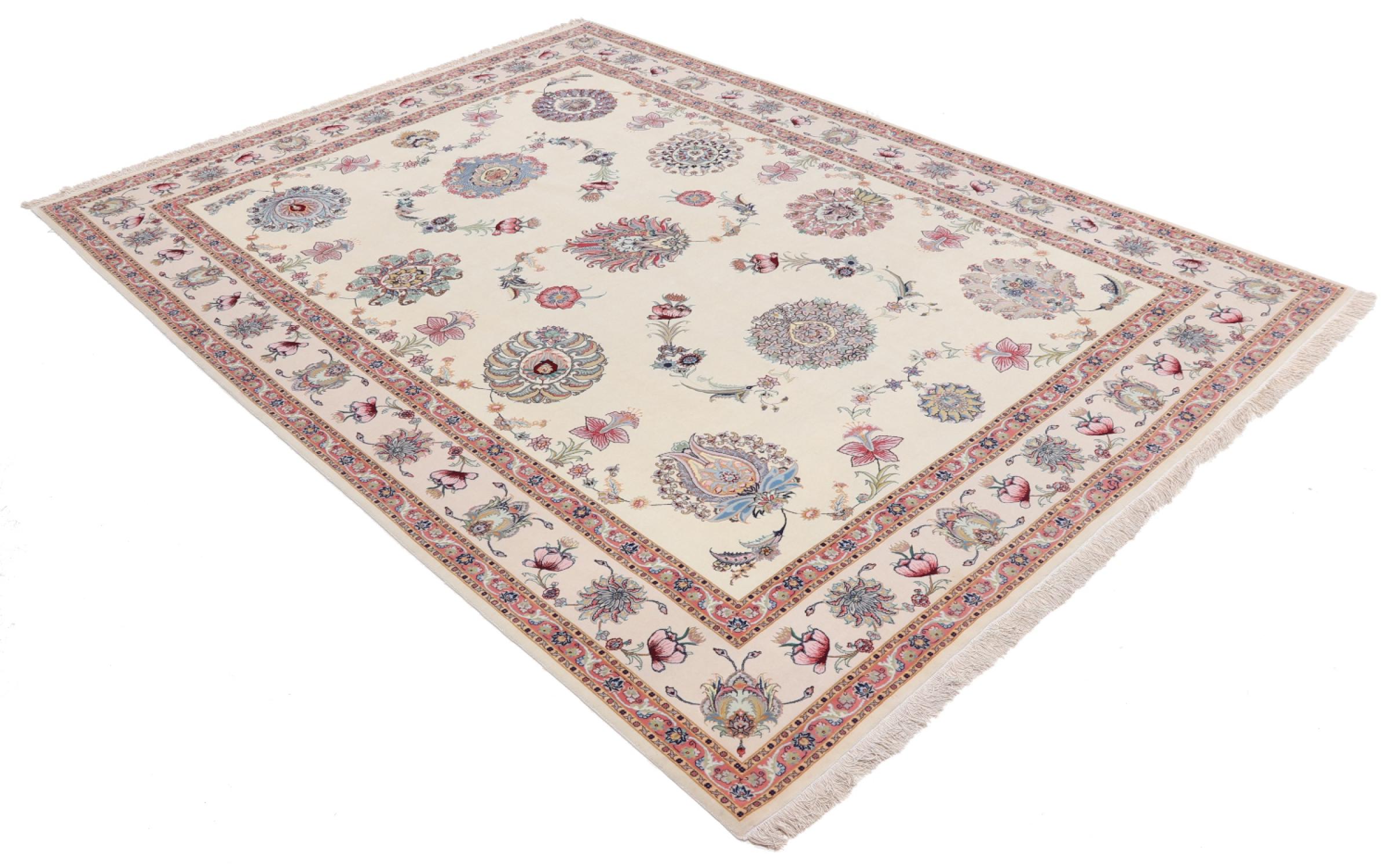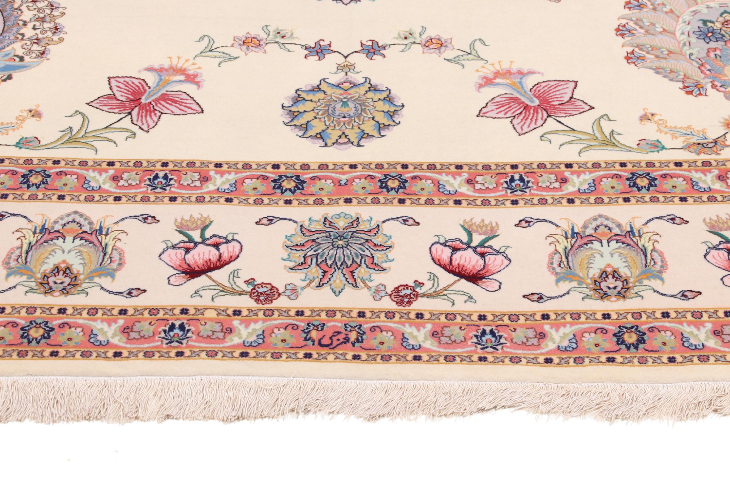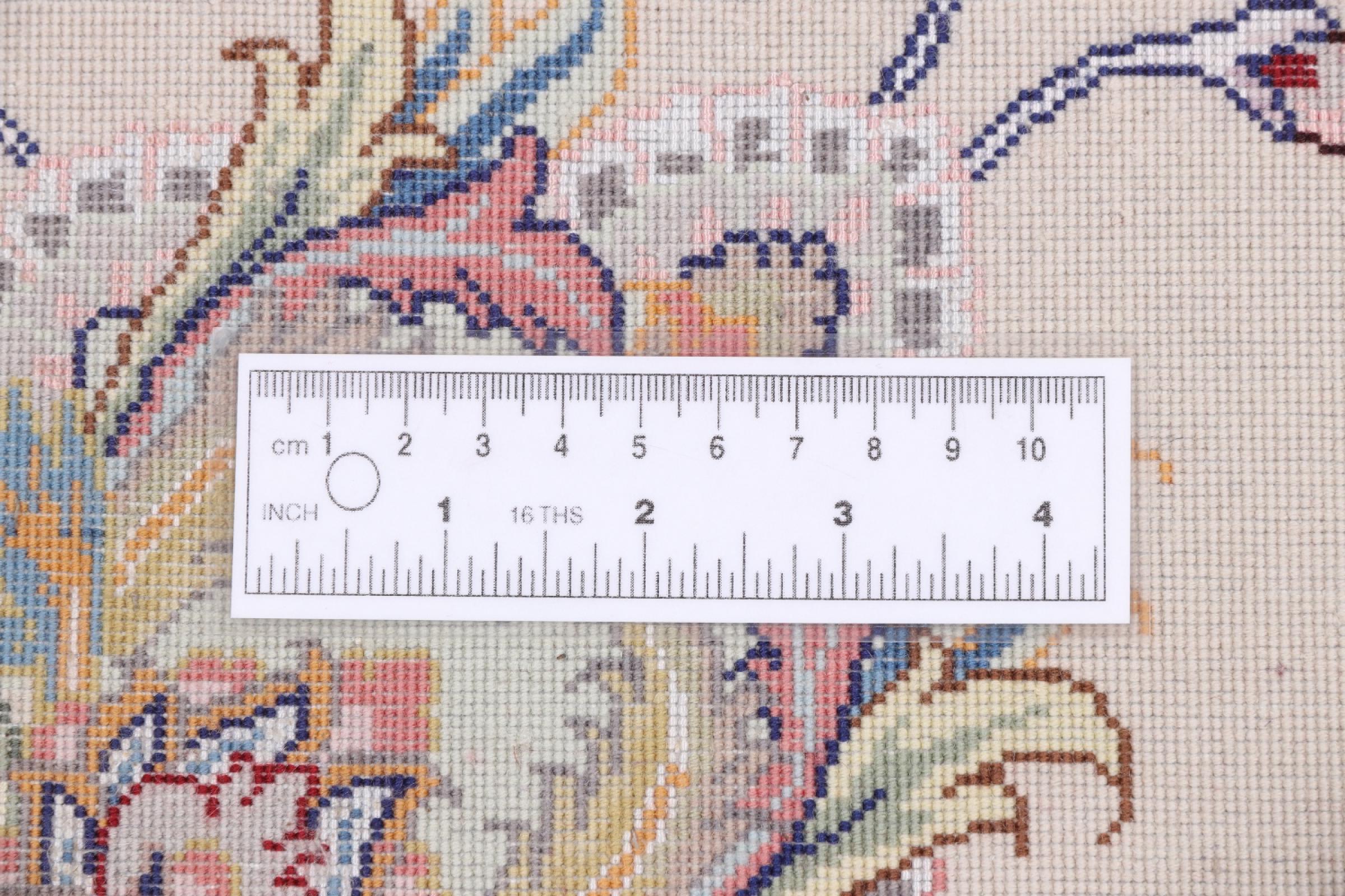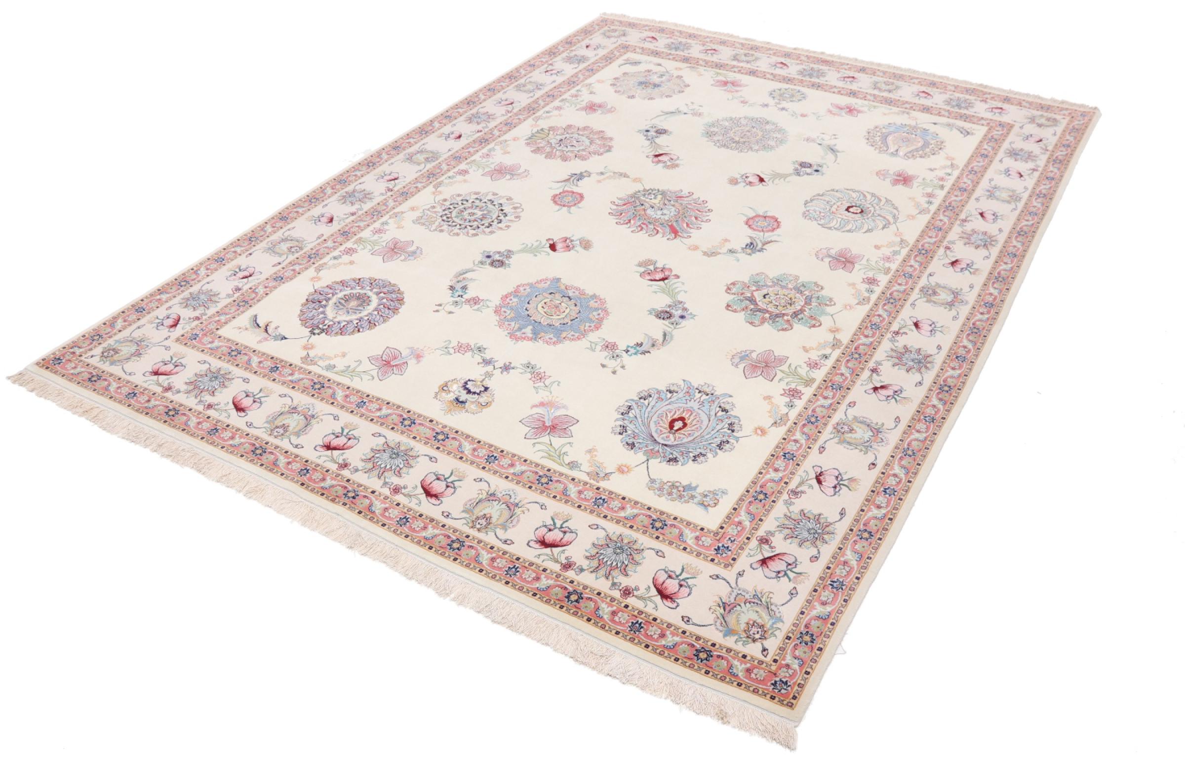 Nº do Tapete: 202140037144 Tamanho: 338x250 cm Espessura: aproximadamente 7 mm Nós: 450 000 - 500 000 / m² Processamento: Atado à mão Veludo: Lã com seda Urdidura: Algodão Origem: Pérsia / Iran Idade: Novo Peso: aproximadamente 25 kg Também conhecido como Tabriz, Tabris, Täbris, Tebriz, Tebris, 40Raj, 50Raj Em armazém: Único - Apenas 1 em stock
