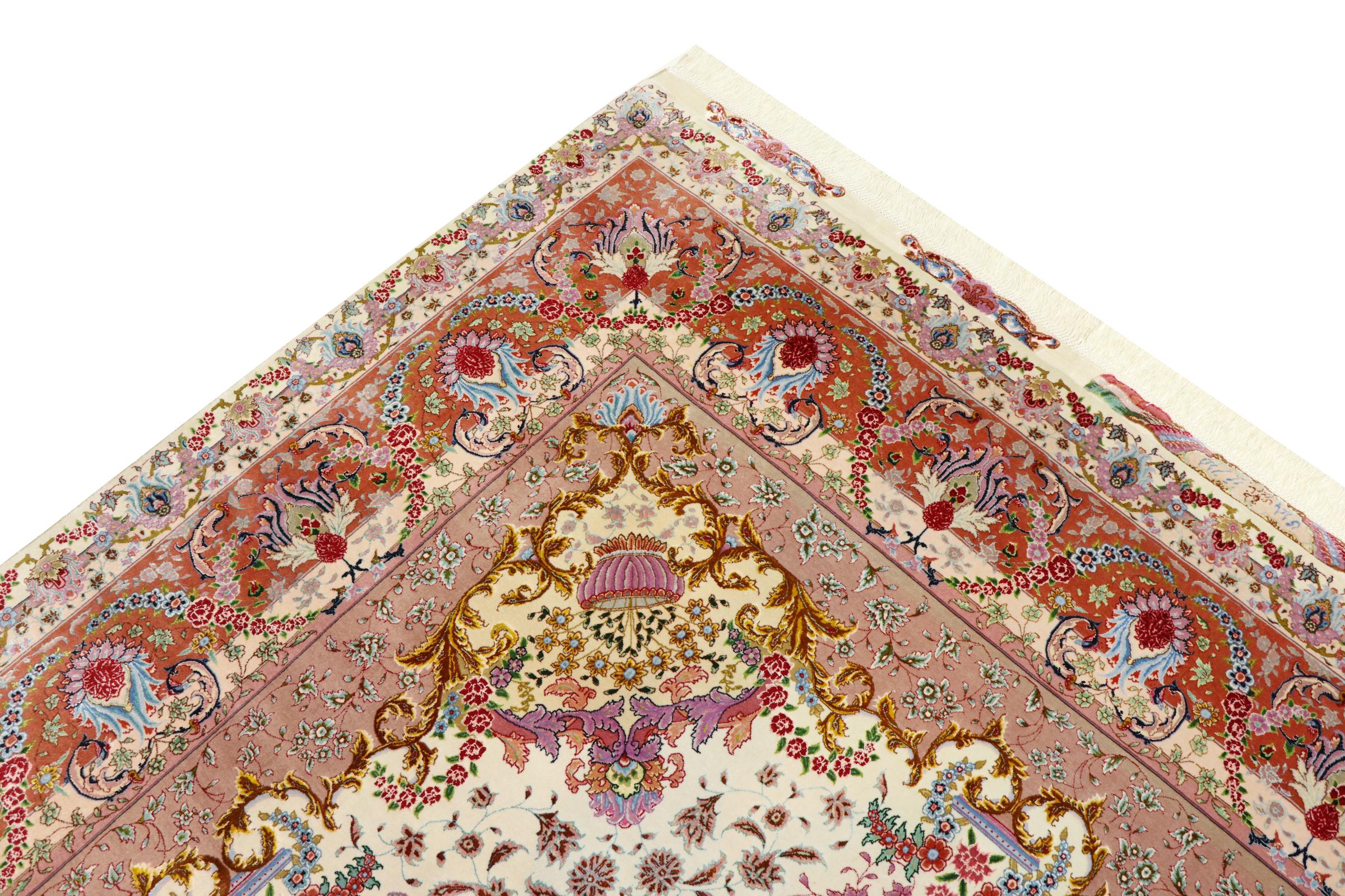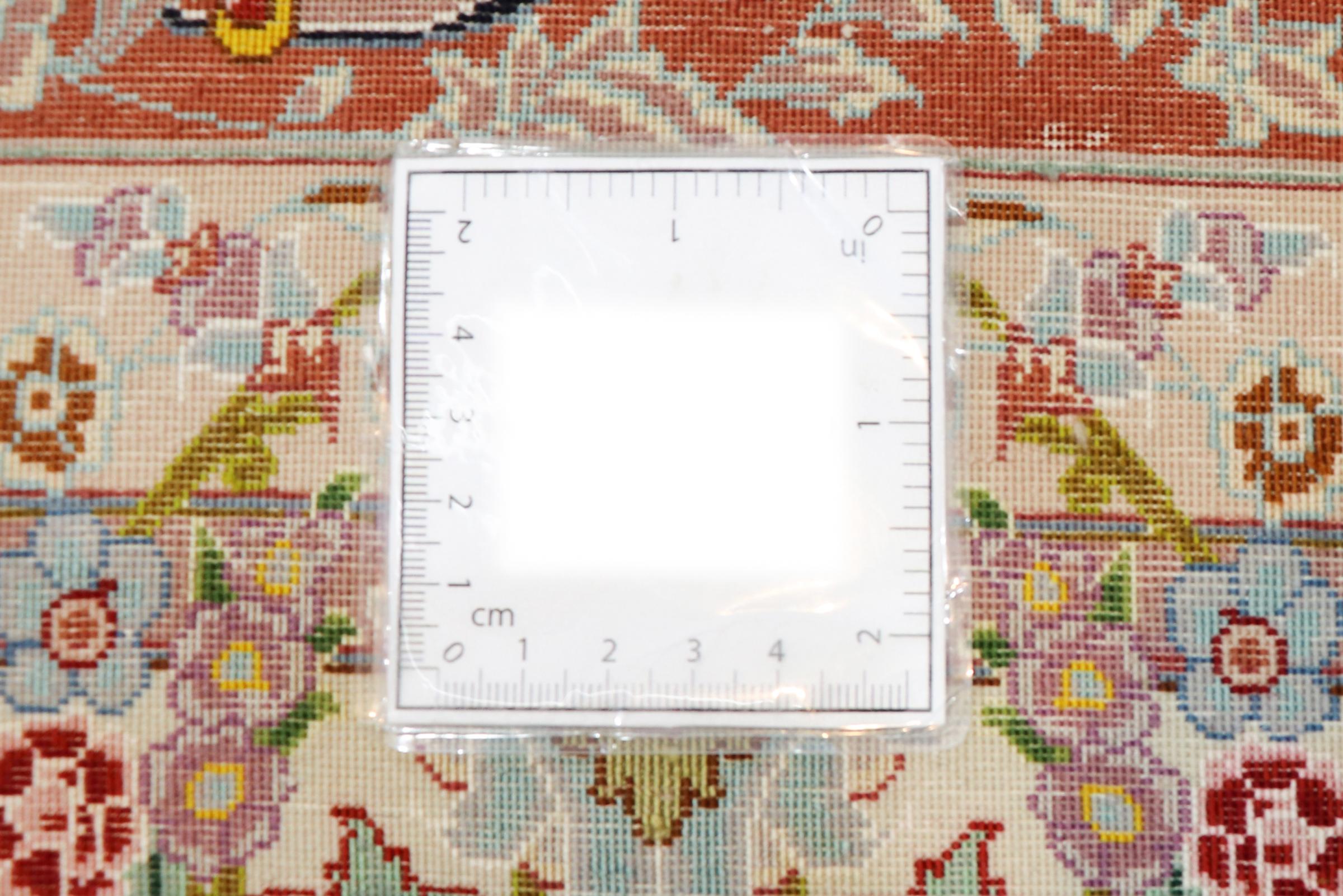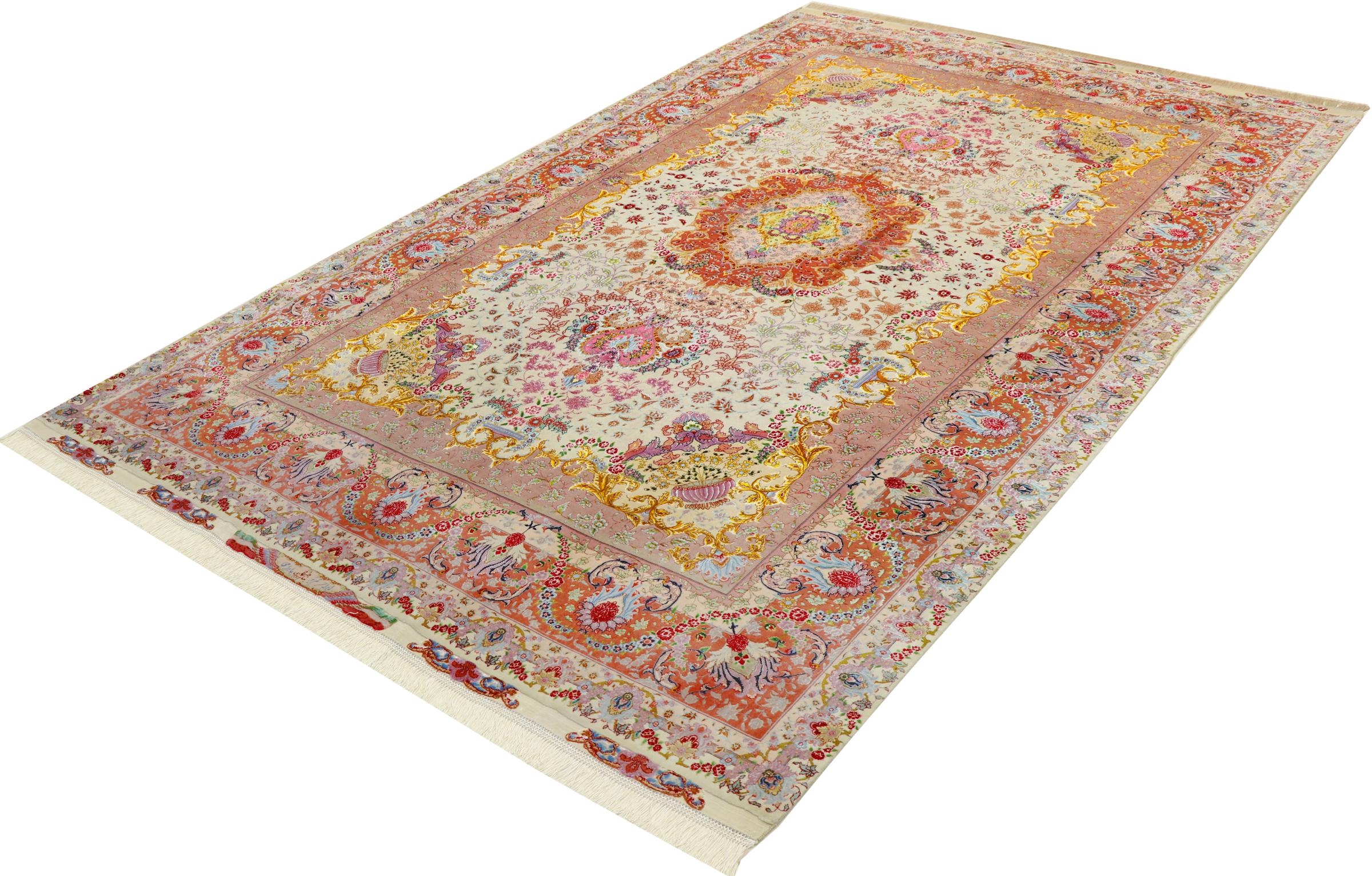 Nº do Tapete: 303786006339009 Tamanho: 320x201 cm Espessura: aproximadamente 5 mm Nós: 1 350 000 - 1 500 000 / m² Processamento: Atado à mão Veludo: Lã de cortiça com seda Urdidura: Seda Origem: Pérsia / Iran Idade: Novo Peso: aproximadamente 22 kg Também conhecido como Tabris, Tabriz, Tebris, Tebriz, Täbris, Village Em armazém: Único - Apenas 1 em stock