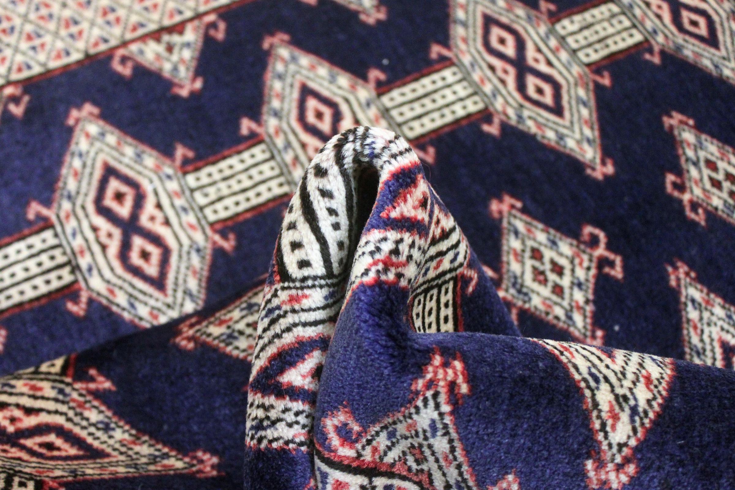 Este tapete turcomano foi tradicionalmente atado à mão e impressiona pelo seu elevado nível de fabrico e pela lã de ovelha de alta qualidade com um elevado teor de gordura. As suas cores quentes e escuras reflectem a cultura dos turcomanos e dão um toque oriental e acolhedor ao seu ambiente de vida. Os tapetes paquistaneses assemelham-se frequentemente a este tipo de tapete, mas muitas vezes não se aproximam da sua qualidade.