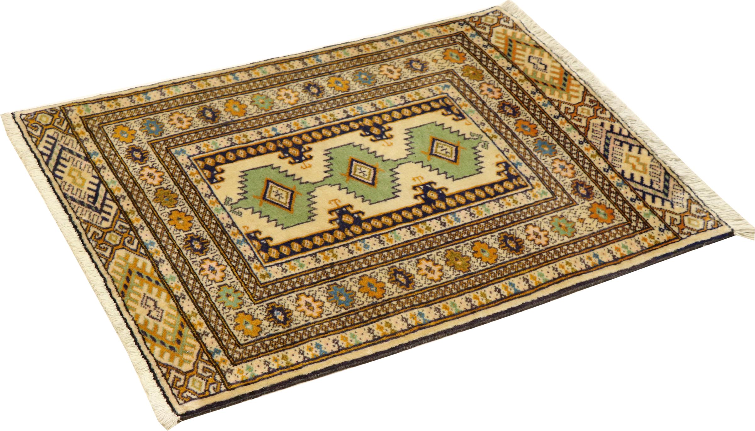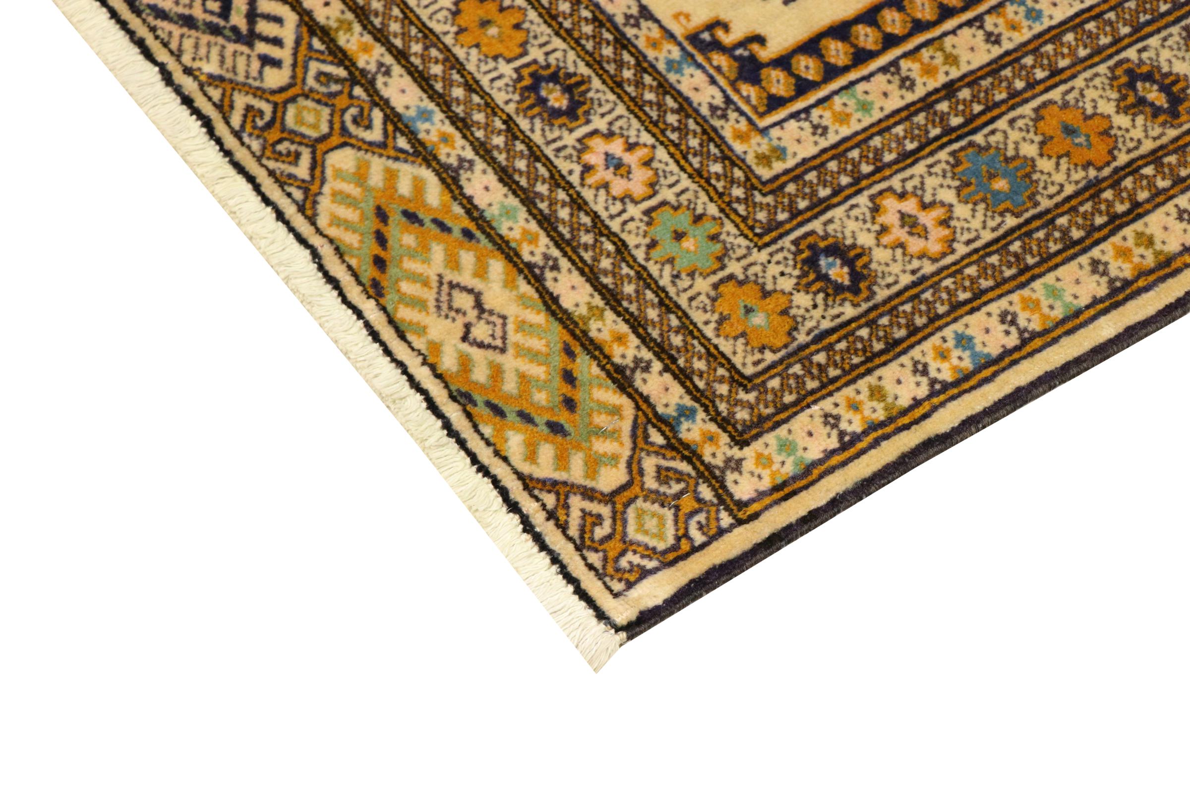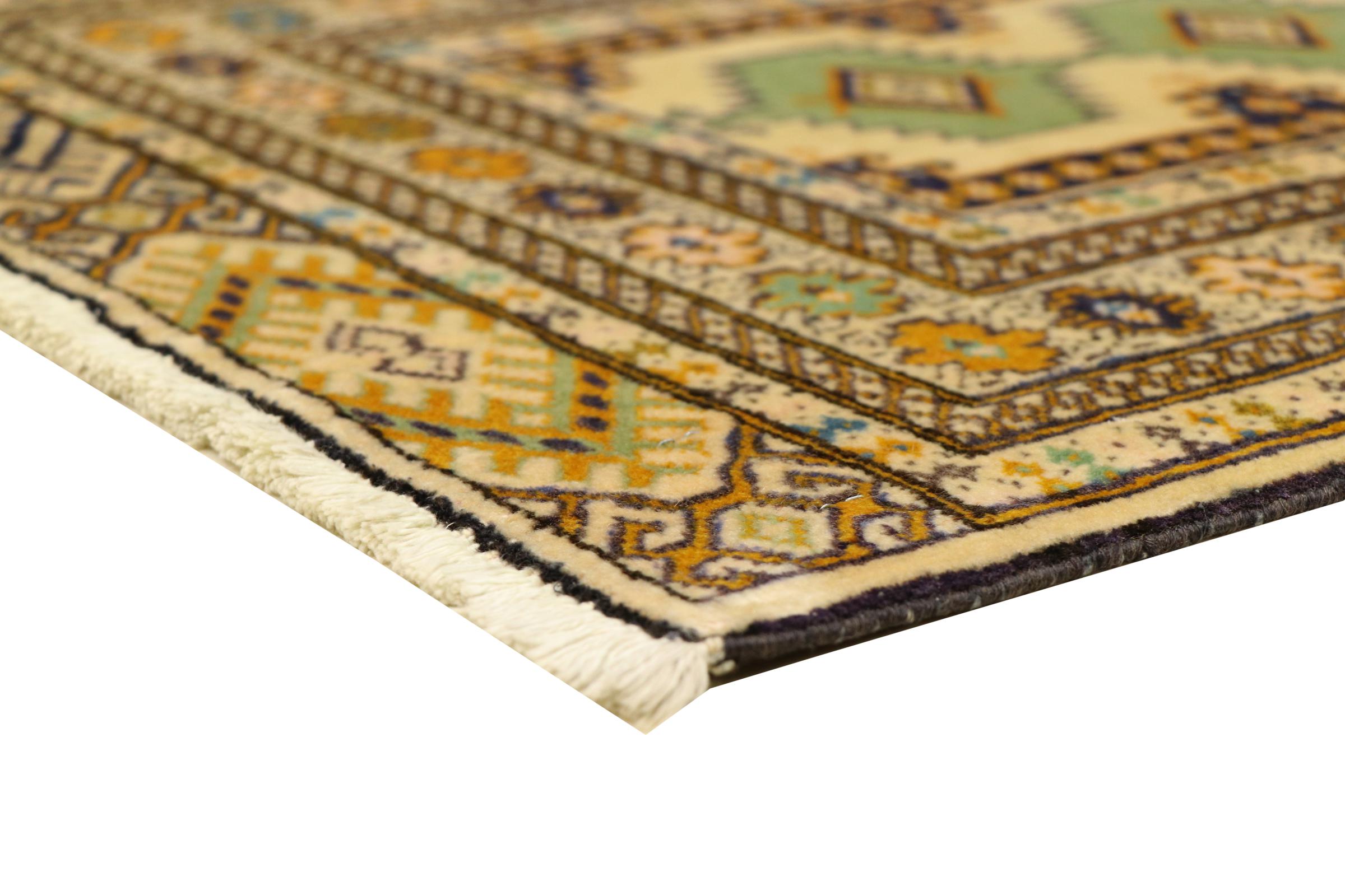 Este tapete turcomano foi tradicionalmente atado à mão e impressiona pelo seu elevado nível de fabrico e pela lã de ovelha de alta qualidade com um elevado teor de gordura. As suas cores quentes e escuras reflectem a cultura dos turcomanos e dão um toque oriental e acolhedor ao seu ambiente de vida. Os tapetes paquistaneses assemelham-se frequentemente a este tipo de tapete, mas muitas vezes não se aproximam da sua qualidade.
