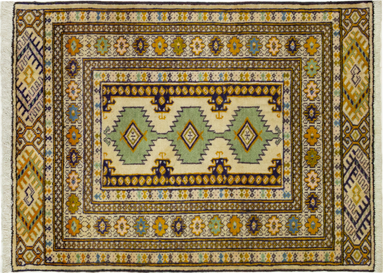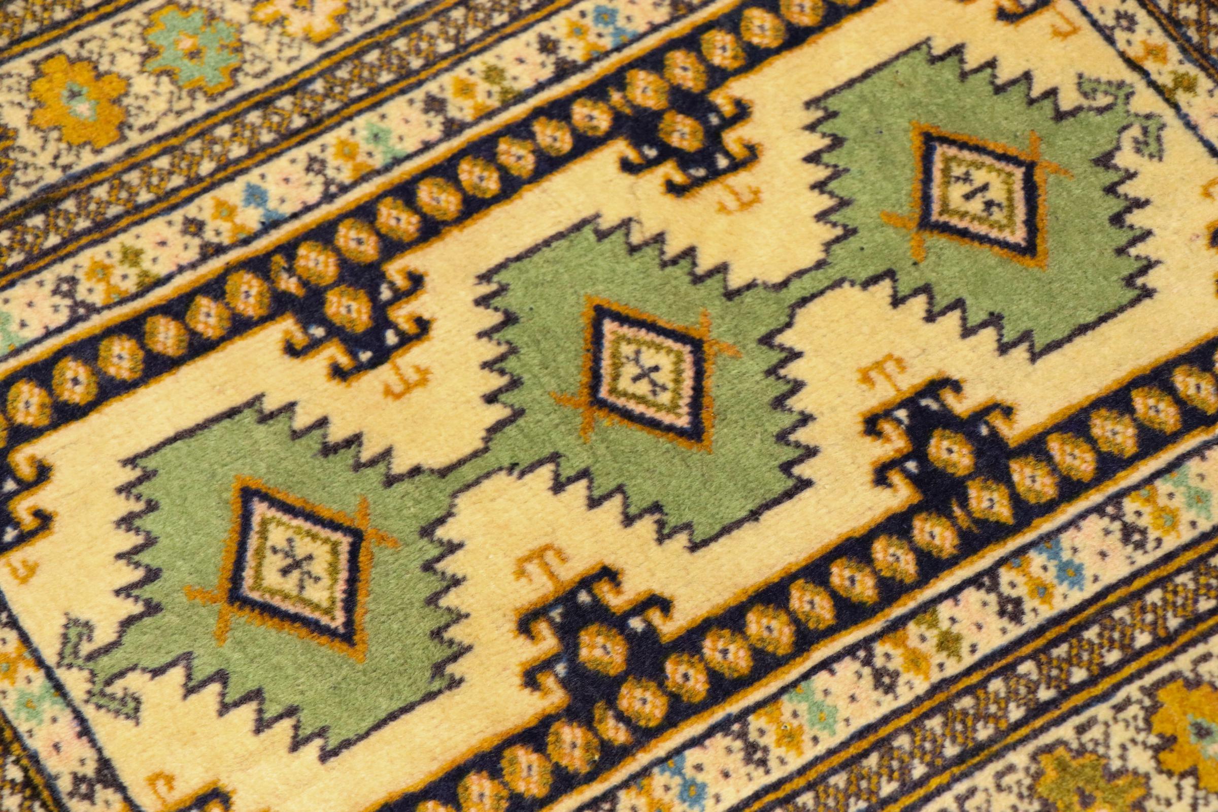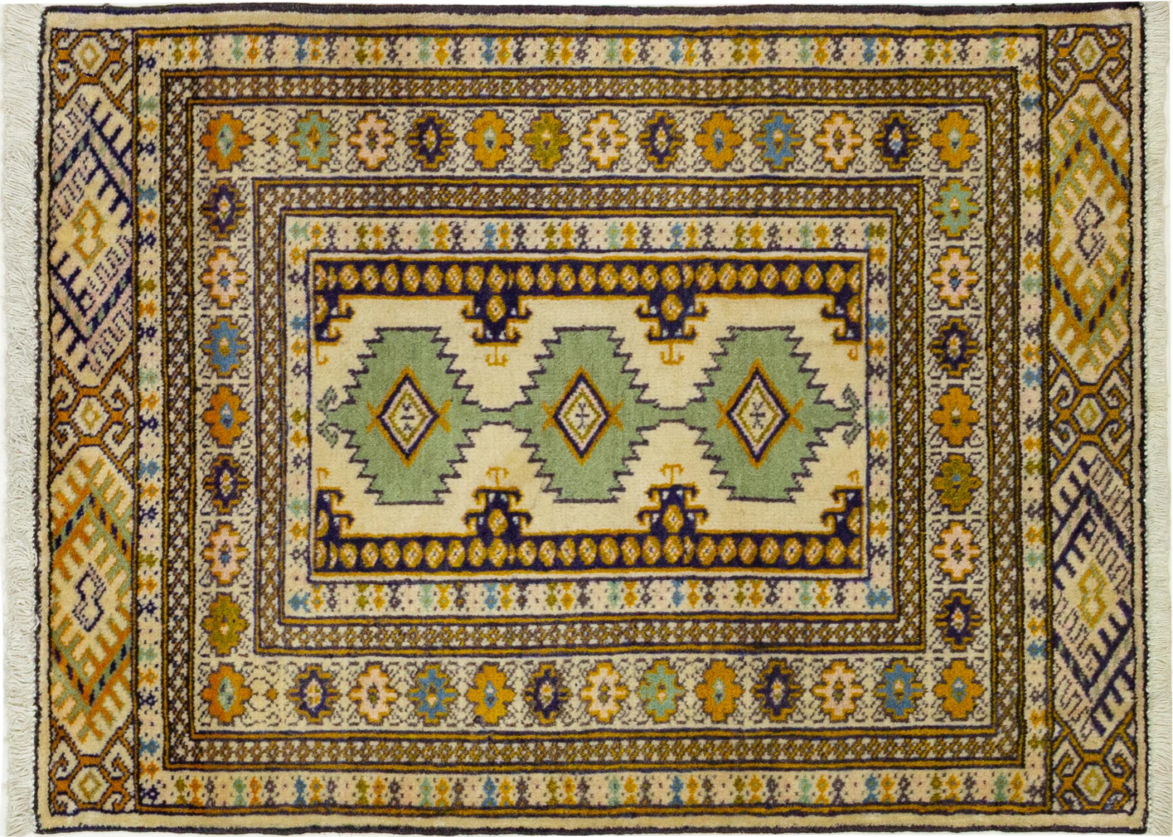 Este tapete turcomano foi tradicionalmente atado à mão e impressiona pelo seu elevado nível de fabrico e pela lã de ovelha de alta qualidade com um elevado teor de gordura. As suas cores quentes e escuras reflectem a cultura dos turcomanos e dão um toque oriental e acolhedor ao seu ambiente de vida. Os tapetes paquistaneses assemelham-se frequentemente a este tipo de tapete, mas muitas vezes não se aproximam da sua qualidade.