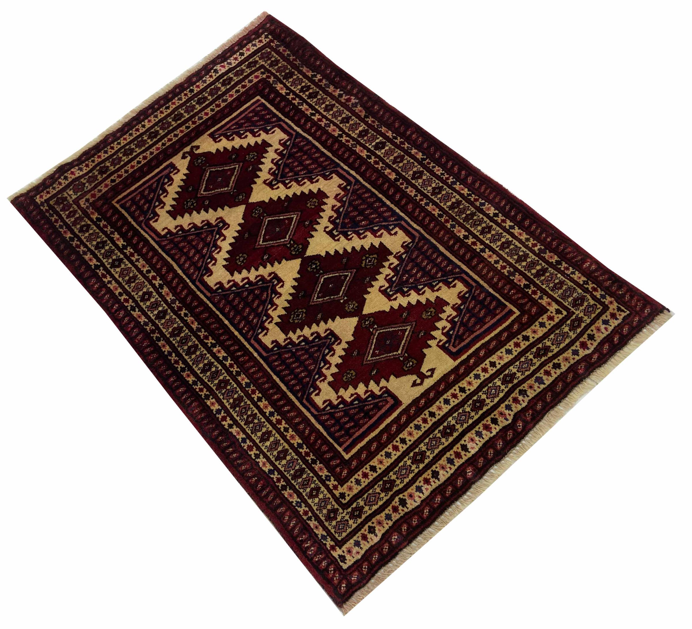 Este tapete turcomano foi tradicionalmente atado à mão e impressiona pelo seu elevado nível de fabrico e pela lã de ovelha de alta qualidade com um elevado teor de gordura. As suas cores quentes e escuras reflectem a cultura dos turcomanos e dão um toque oriental e acolhedor ao seu ambiente de vida. Os tapetes paquistaneses assemelham-se frequentemente a este tipo de tapete, mas muitas vezes não se aproximam da sua qualidade.