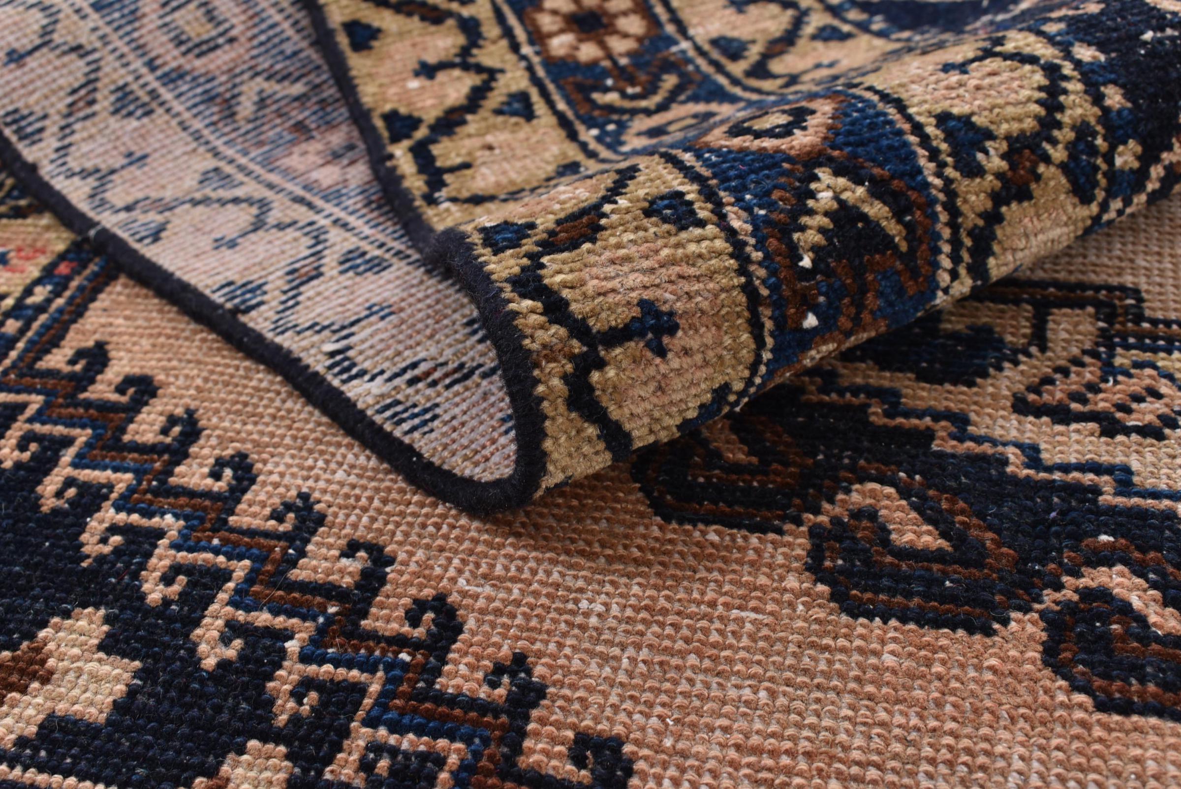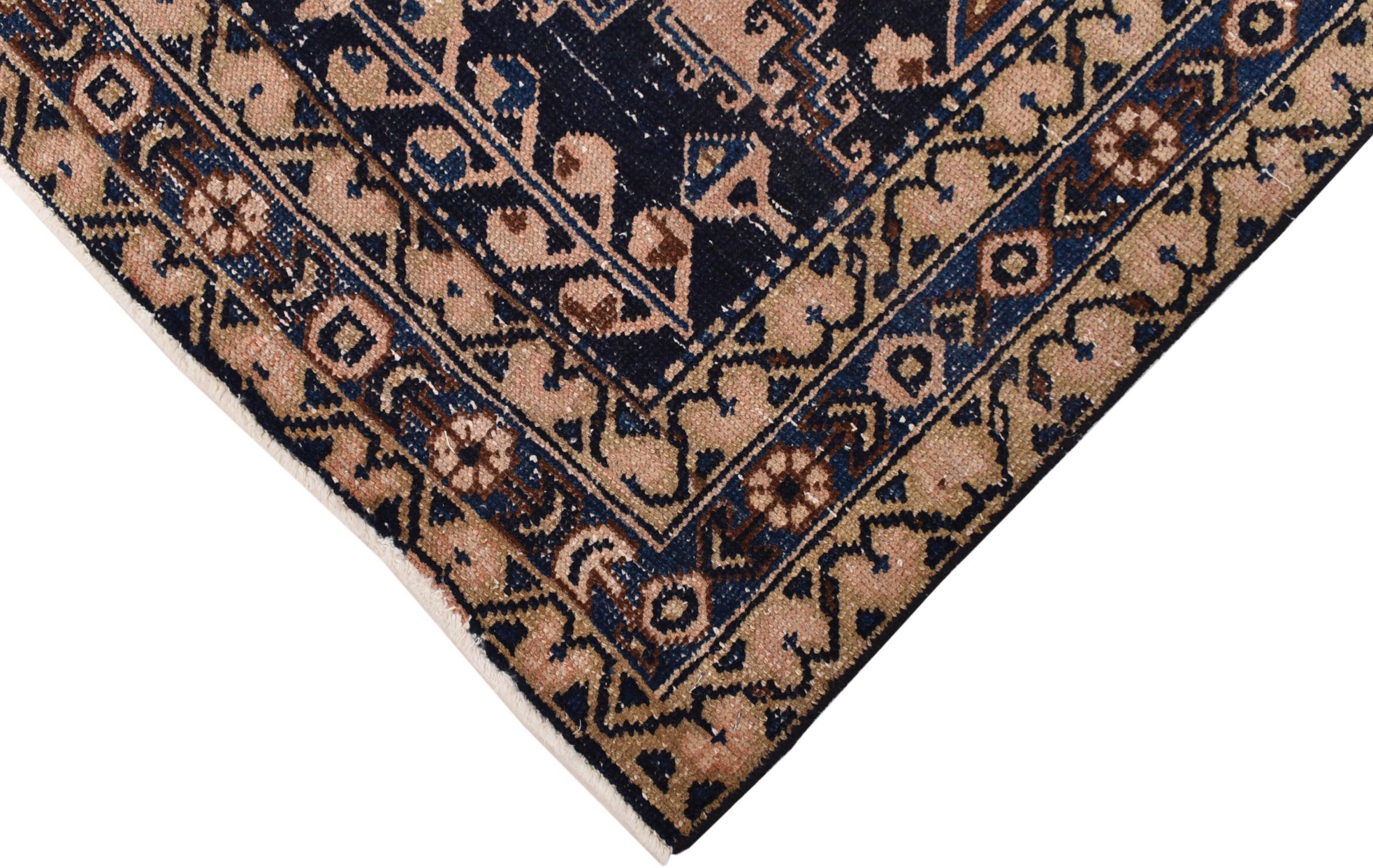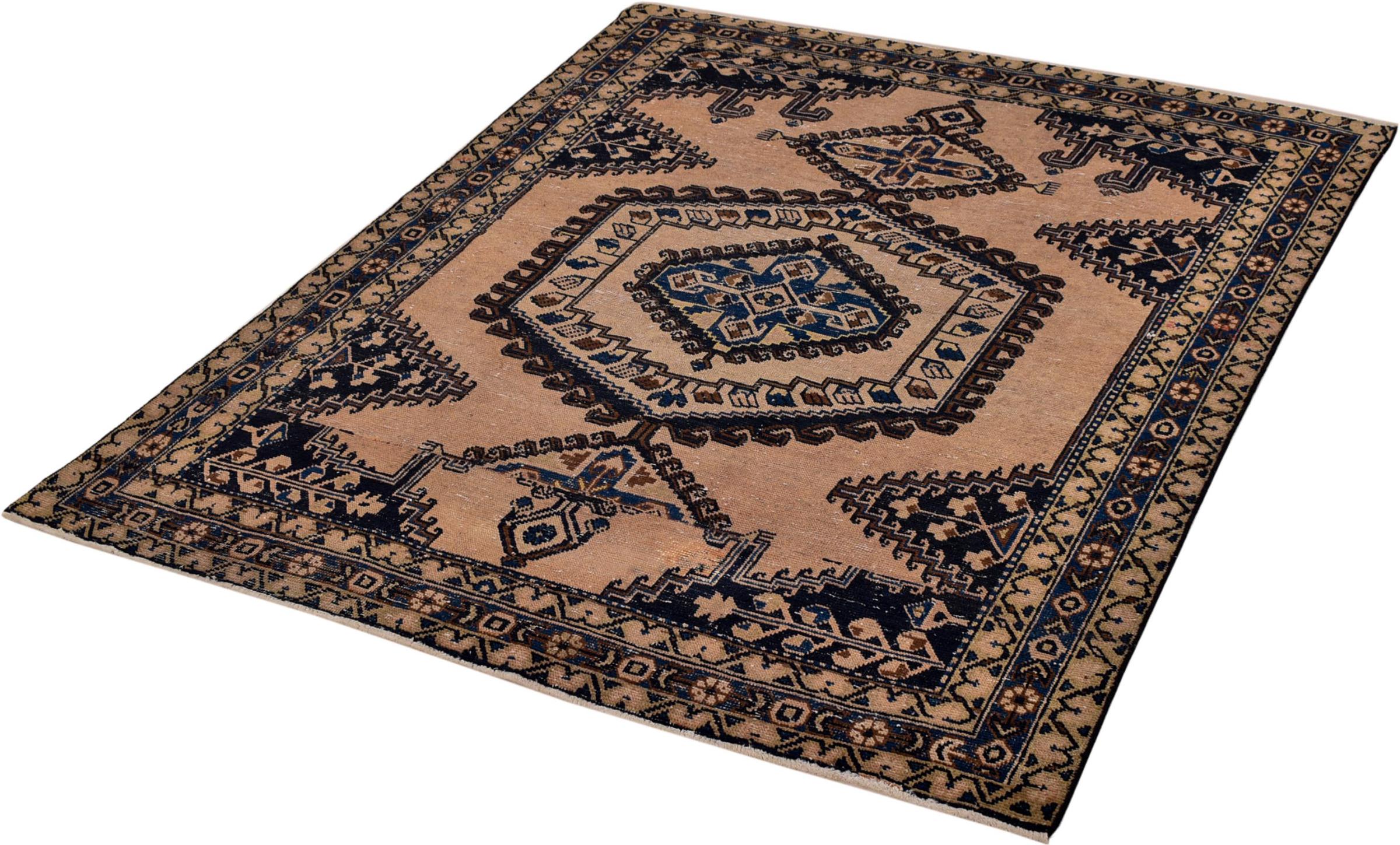 Este é um tapete persa feito à mão que tem pelo menos 20 anos de idade. Este tapete pode durar gerações com os cuidados adequados. O tapete foi completamente tingido de novo sem tingir completamente os ornamentos originalmente atados. Isto dá ao tapete persa de alta qualidade um carácter vintage moderno único.