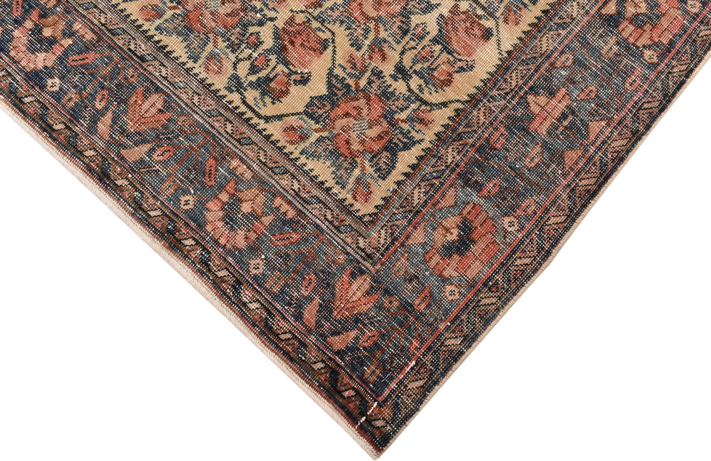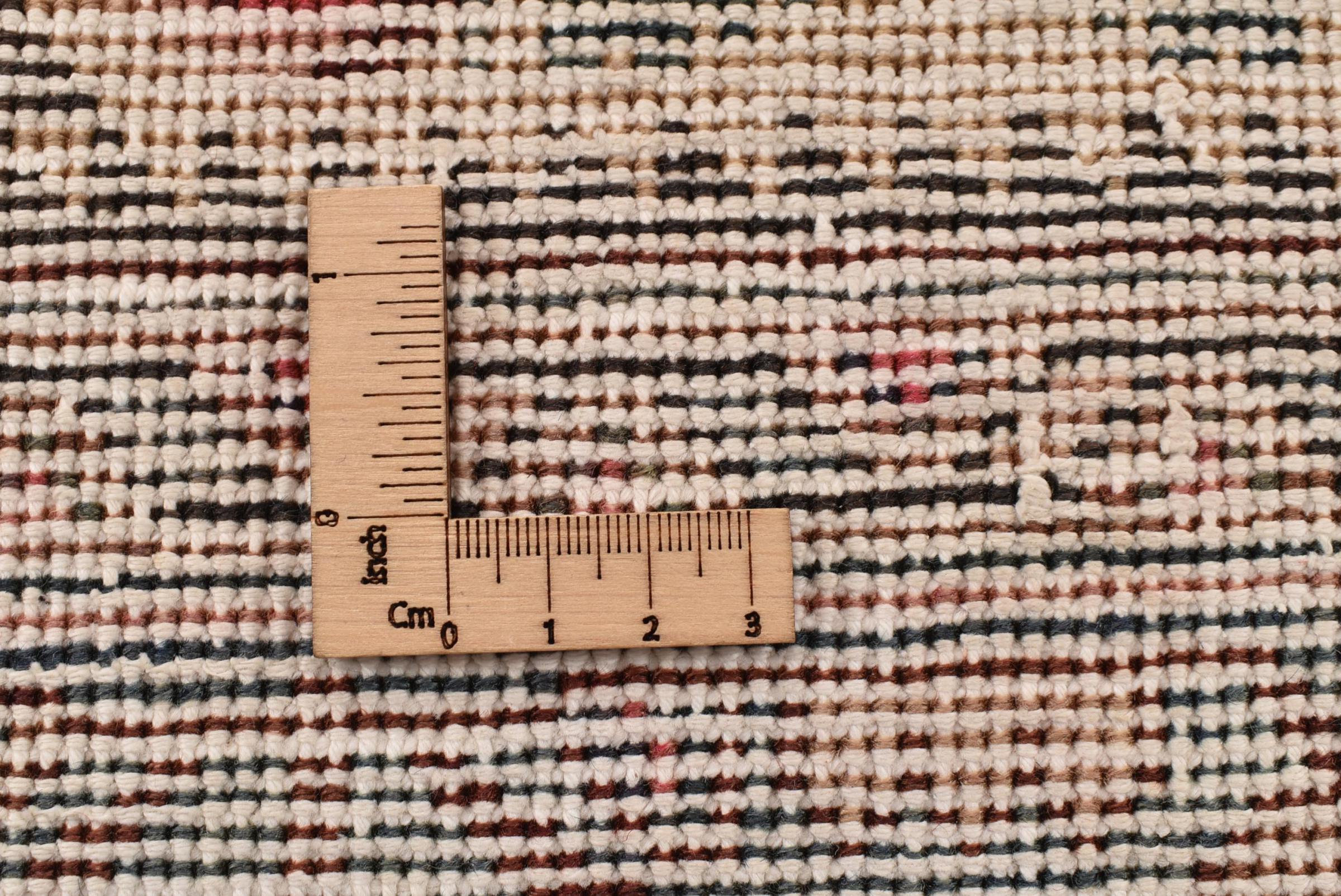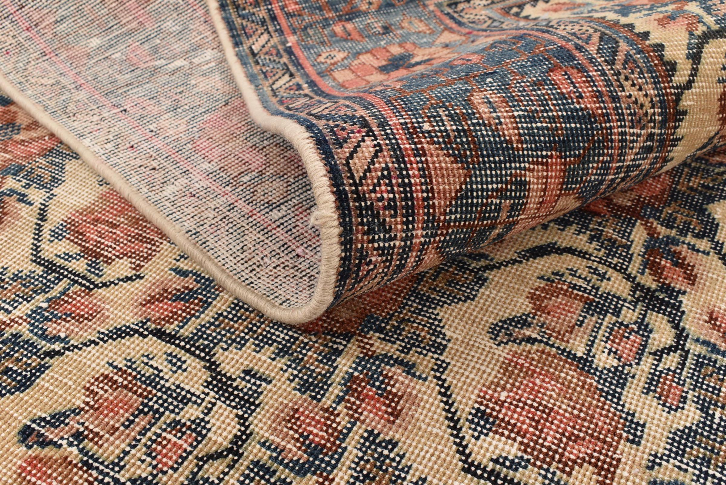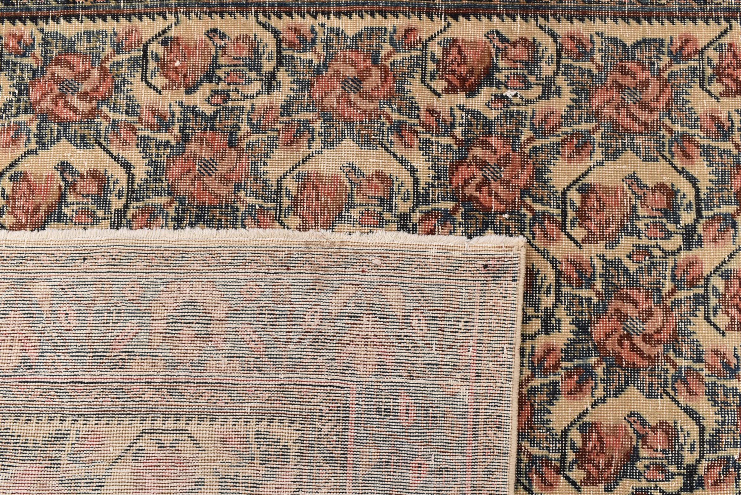 Este é um tapete persa feito à mão que tem pelo menos 20 anos de idade. Este tapete pode durar gerações com os cuidados adequados. O tapete foi completamente tingido de novo sem tingir completamente os ornamentos originalmente atados. Isto dá ao tapete persa de alta qualidade um carácter vintage moderno único.