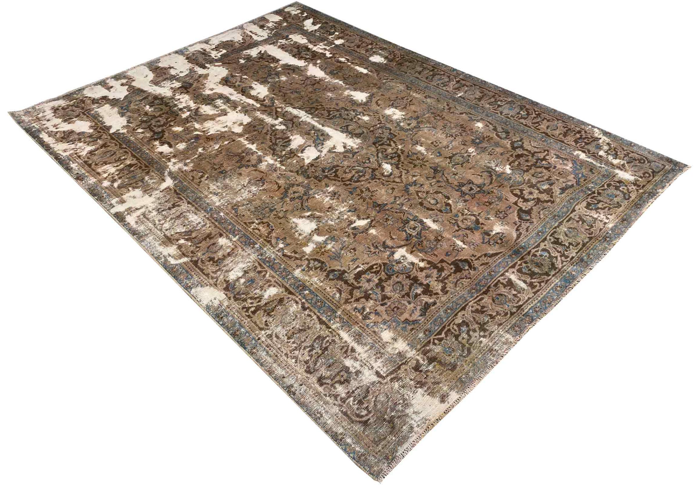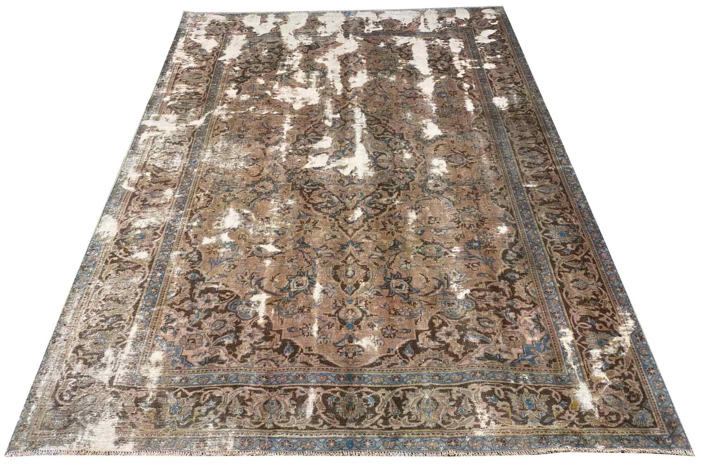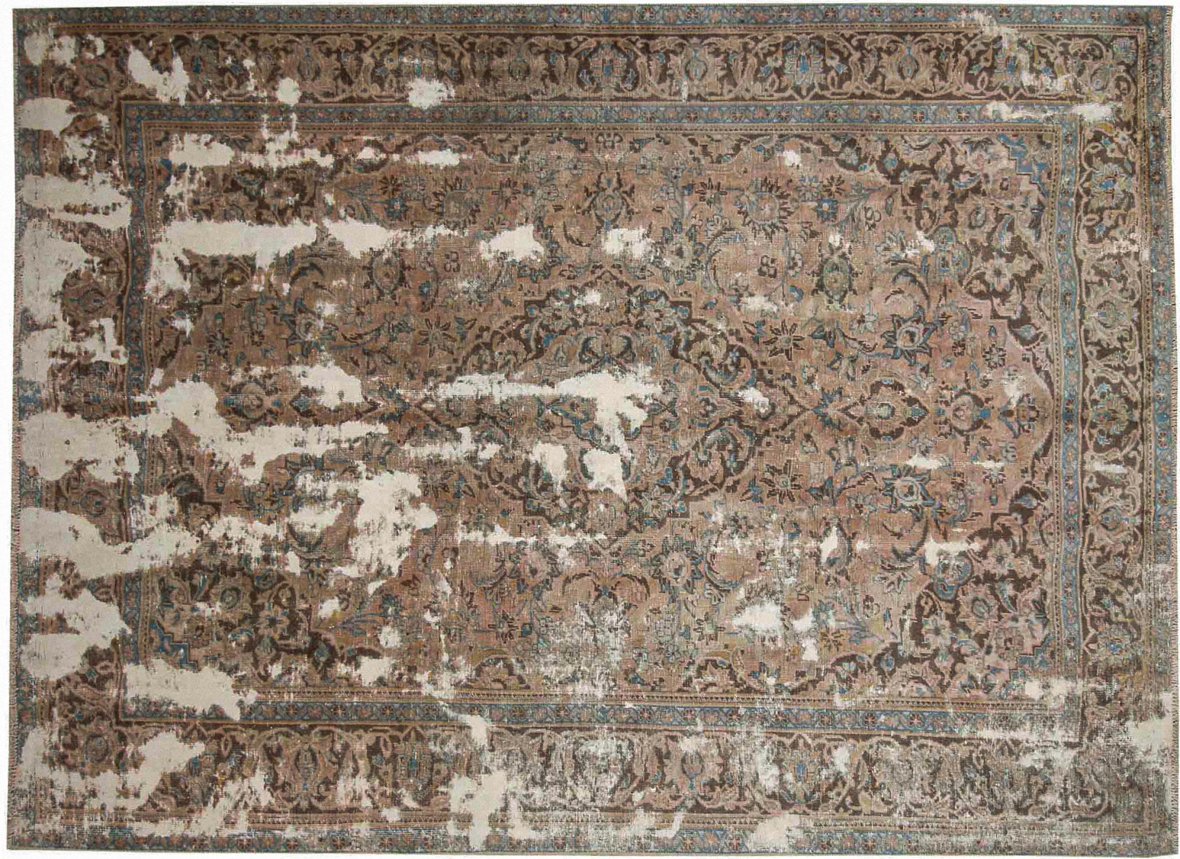 Estes tapetes vintage são tapetes orientais antigos com nós manuais, na sua maioria tapetes persas. Tal tapete durará uma vida inteira. Os tapetes são normalmente descoloridos e a pilha de lã é reduzida a um nível. Isto dá ao tapete um aspecto uniforme e um estilo de vindima intemporal. Apenas tapetes com nós manuais de alta qualidade e sem danos são feitos como tapetes vintage.