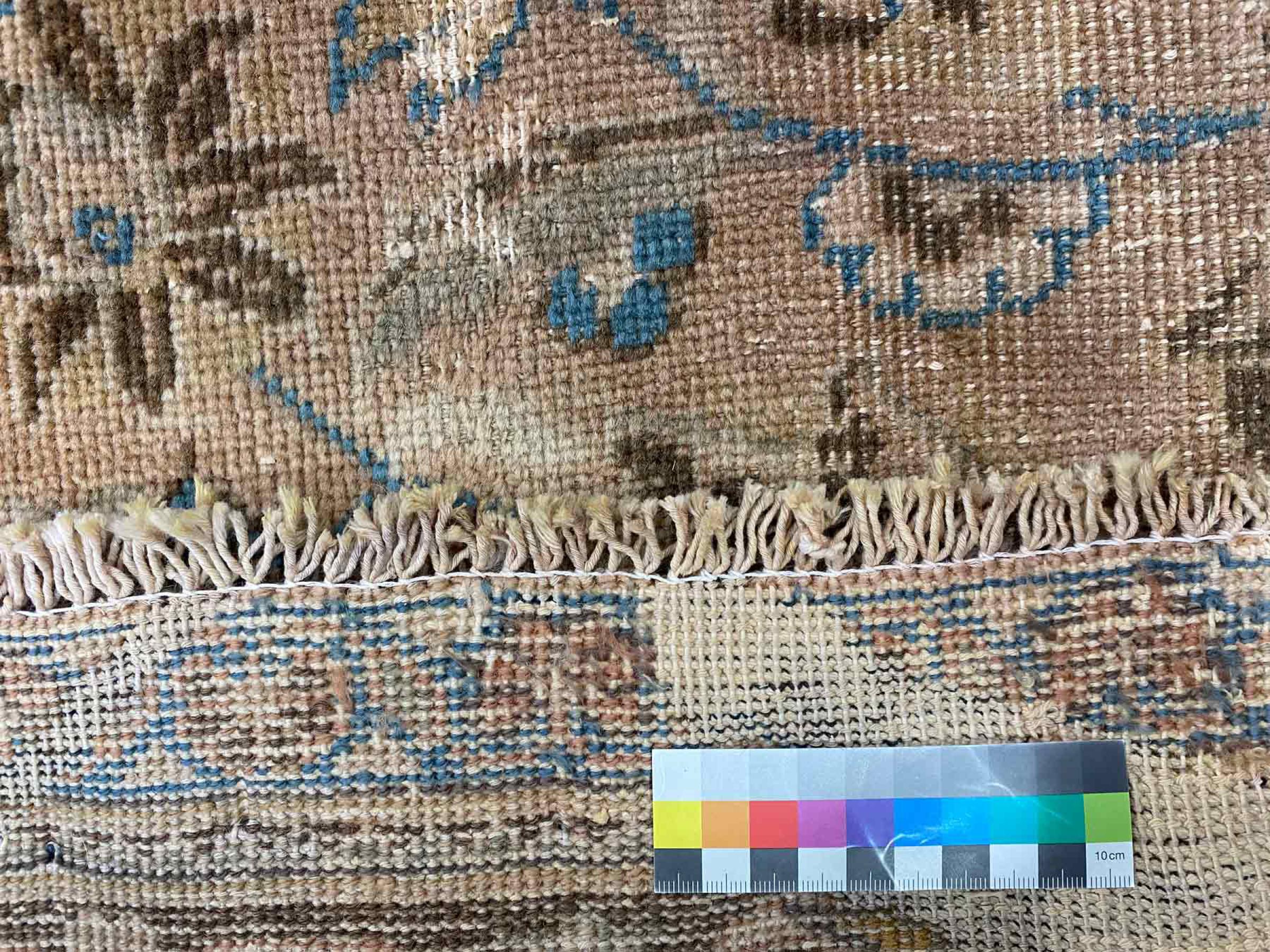 Este tapete é feito de lã de ovelha fiada à mão, da mais alta qualidade. Especialmente no Irão (antiga Pérsia), Afeganistão e Paquistão, a lã ainda é fiada à mão antes do início do nó do tapete. A lã tem provado ser um material natural e extremamente resistente ao longo dos séculos. Entre outras coisas, tem propriedades repelentes de impurezas e isolantes térmicos. Ao mesmo tempo, a lã é incomparavelmente macia e tem um brilho natural.