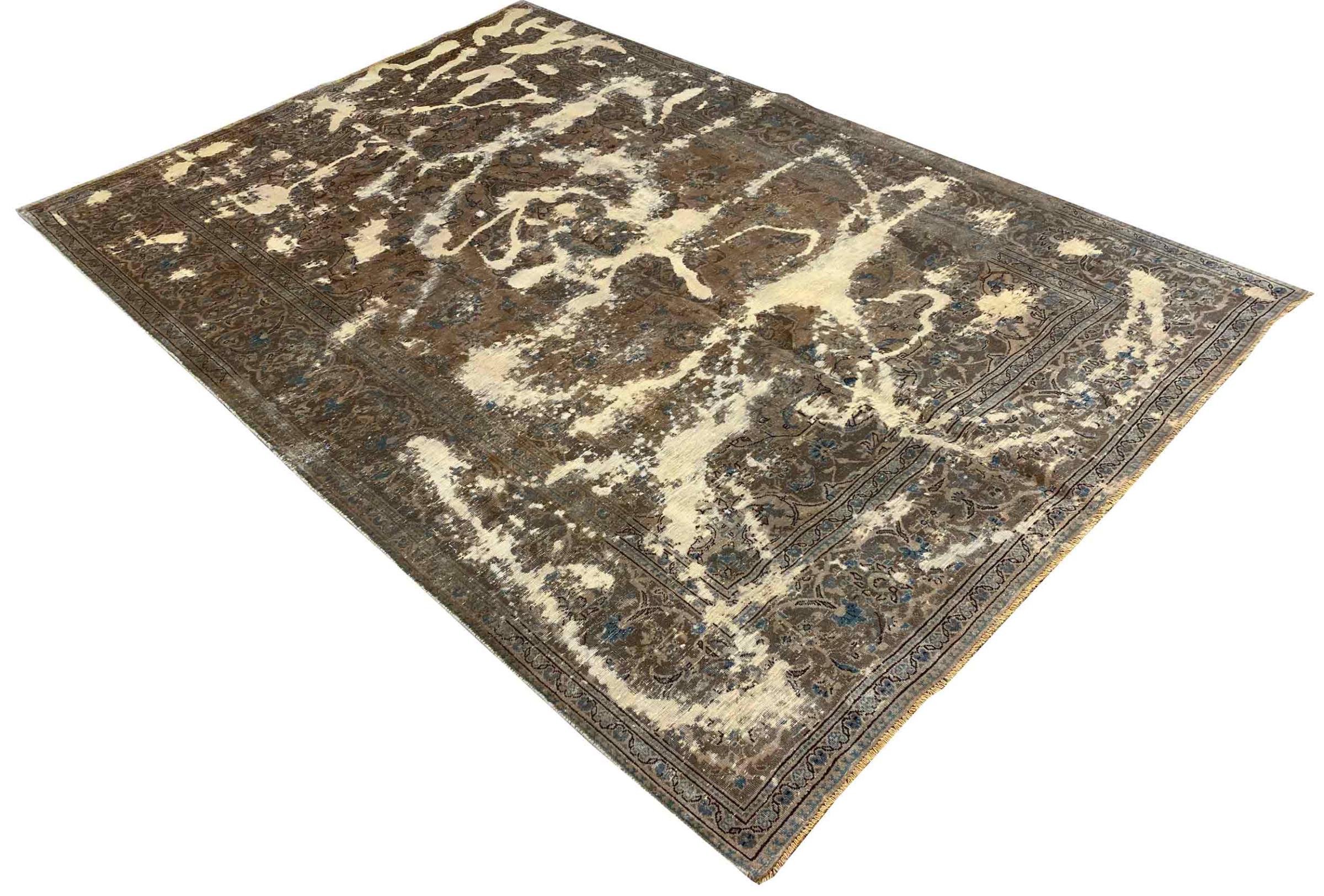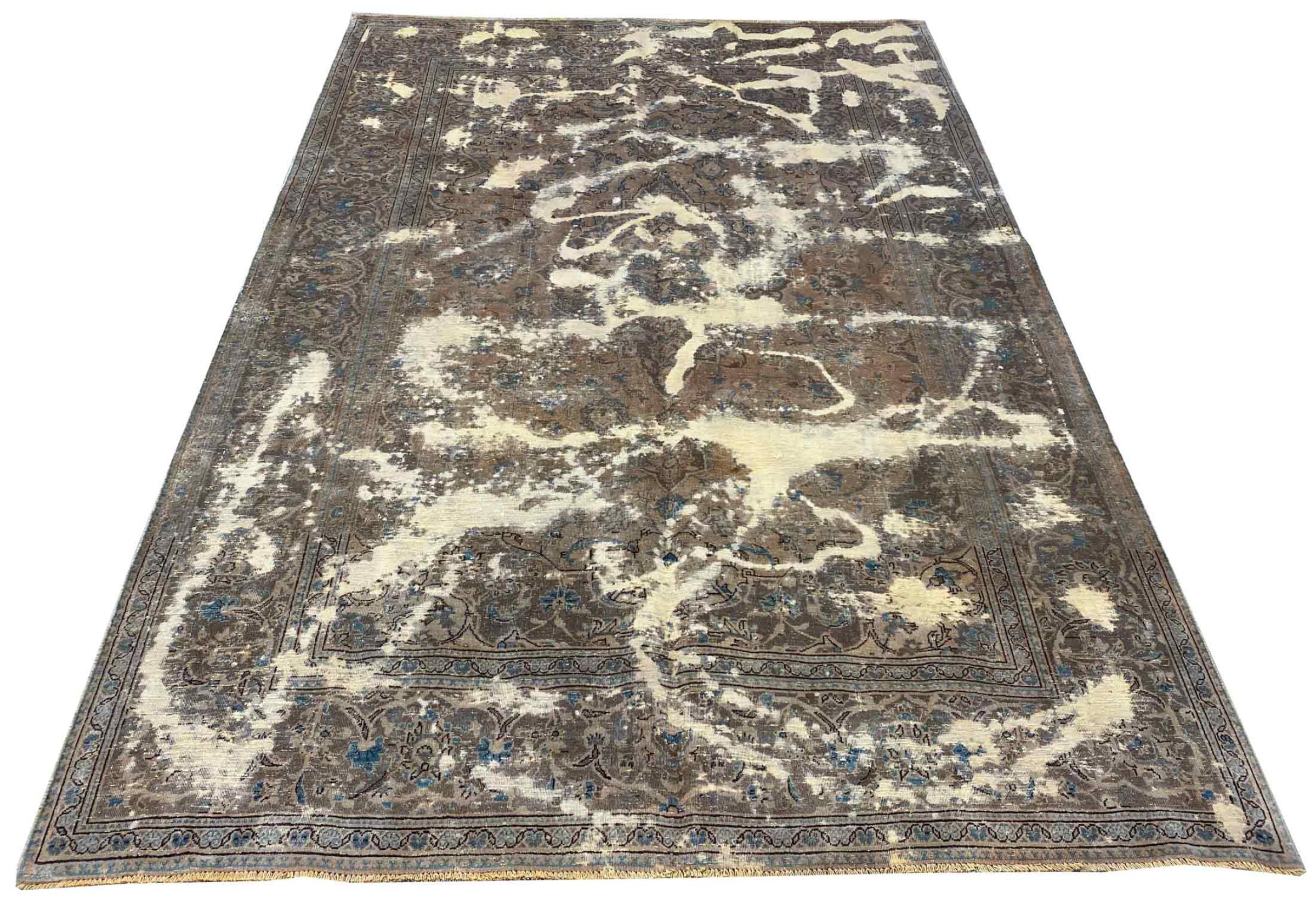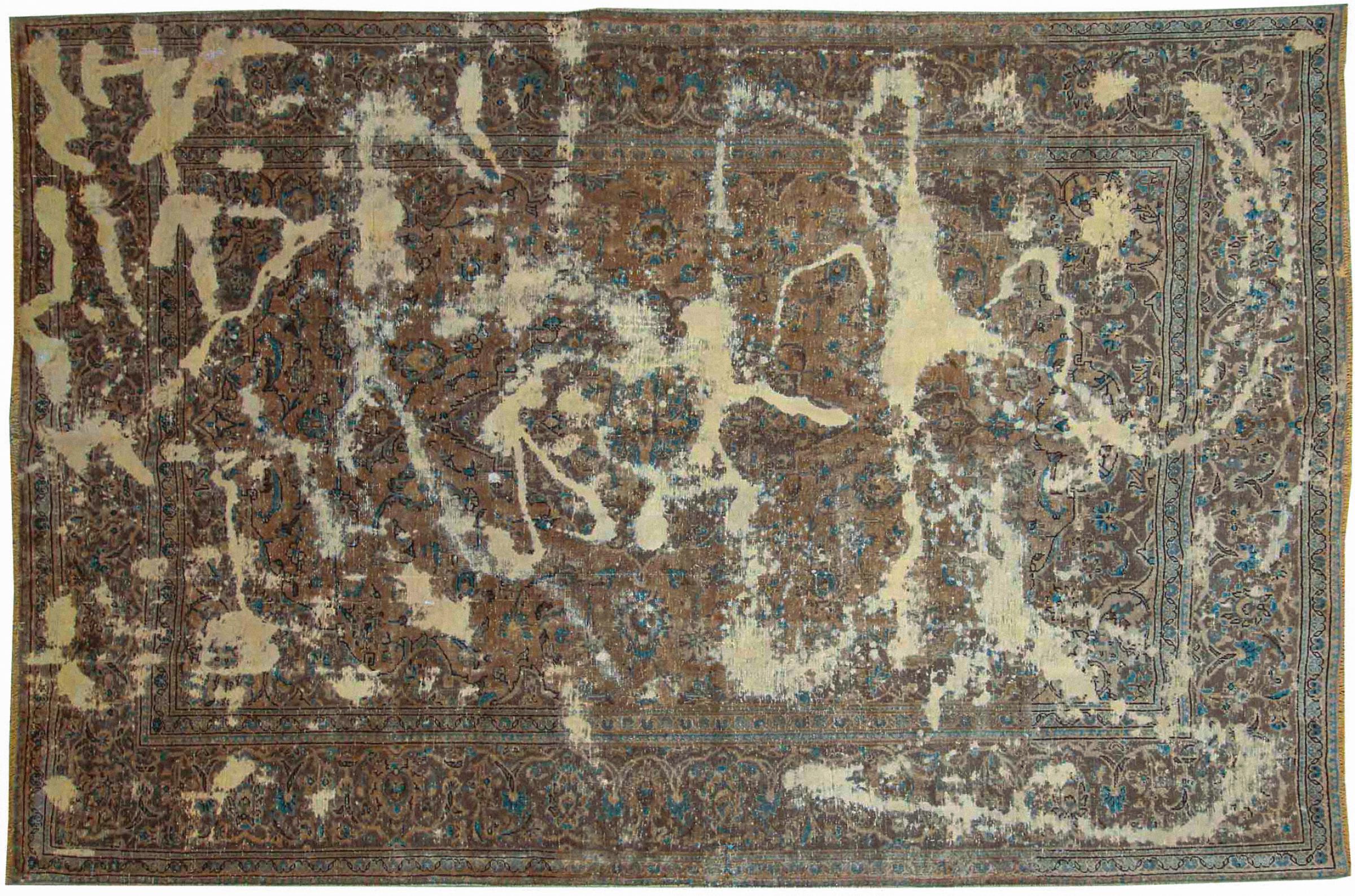 Estes tapetes vintage são tapetes orientais antigos com nós manuais, na sua maioria tapetes persas. Tal tapete durará uma vida inteira. Os tapetes são normalmente descoloridos e a pilha de lã é reduzida a um nível. Isto dá ao tapete um aspecto uniforme e um estilo de vindima intemporal. Apenas tapetes com nós manuais de alta qualidade e sem danos são feitos como tapetes vintage.