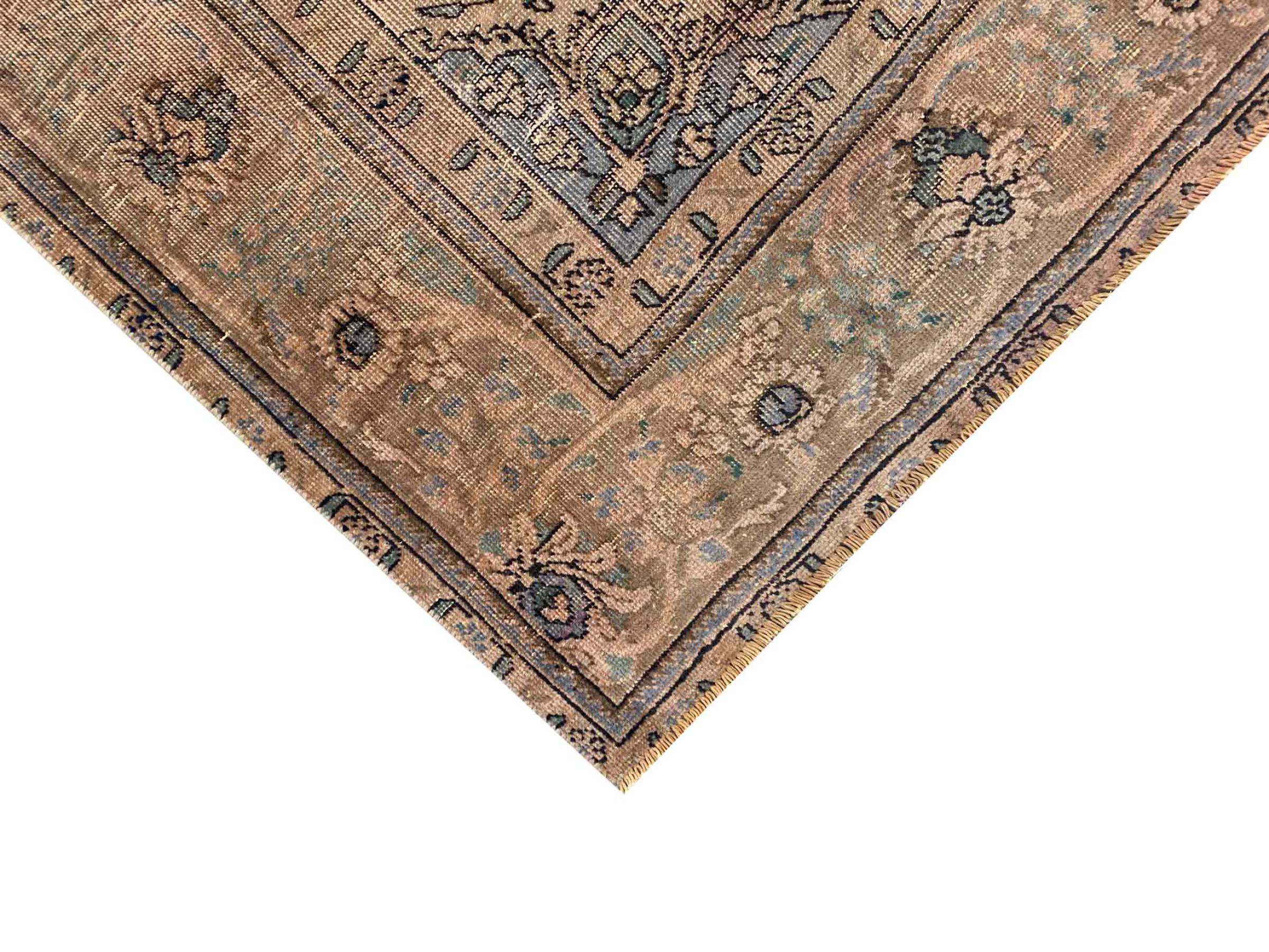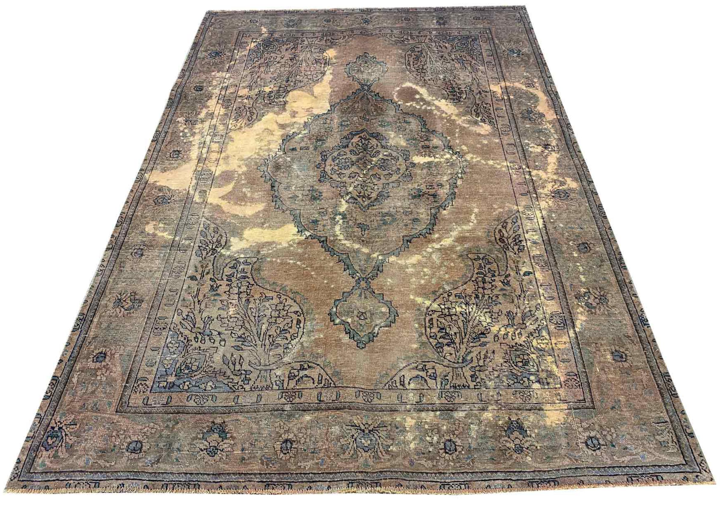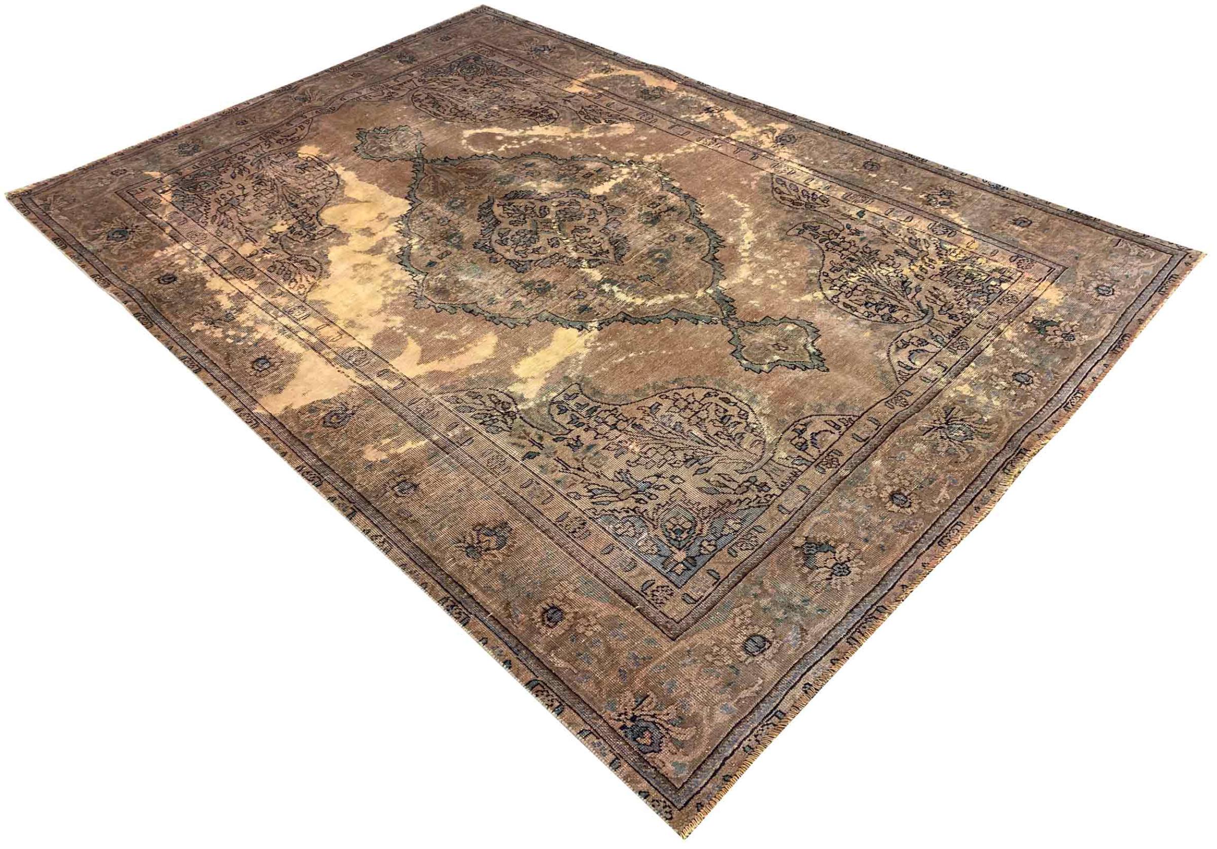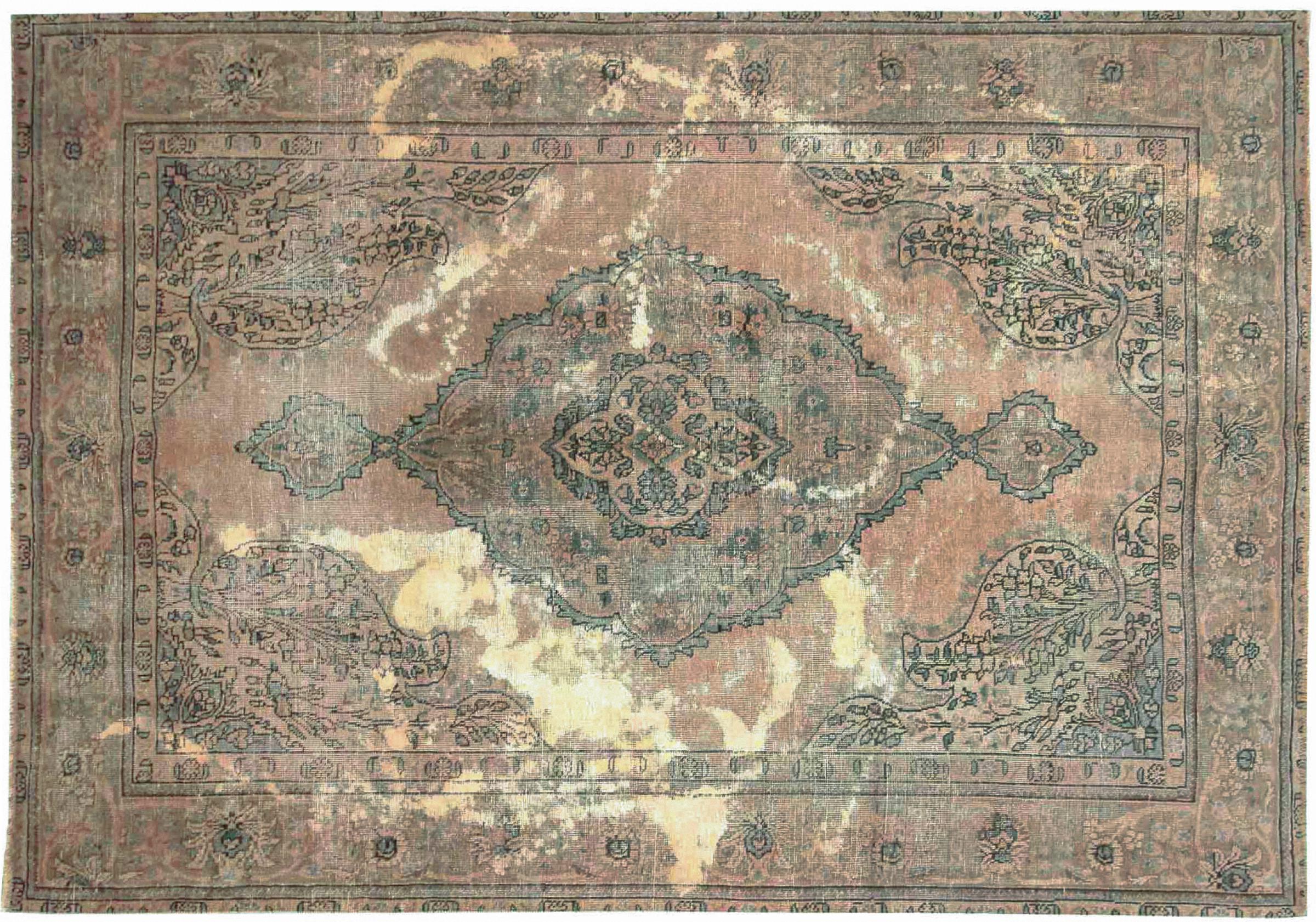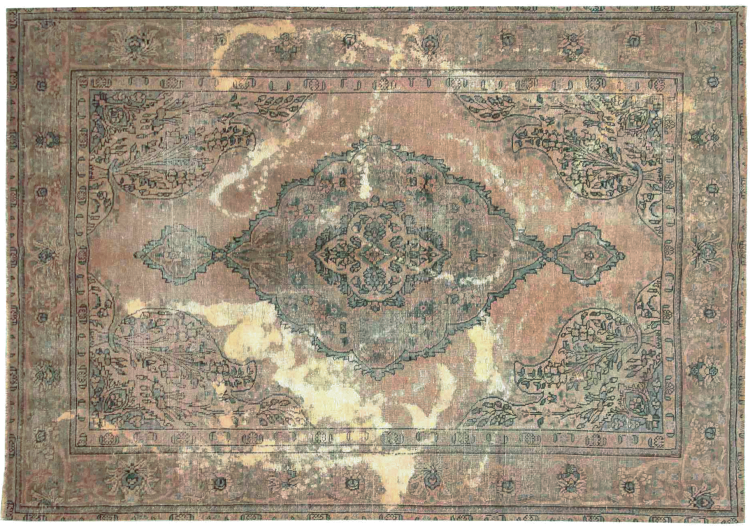 Estes tapetes vintage são tapetes orientais antigos com nós manuais, na sua maioria tapetes persas. Tal tapete durará uma vida inteira. Os tapetes são normalmente descoloridos e a pilha de lã é reduzida a um nível. Isto dá ao tapete um aspecto uniforme e um estilo de vindima intemporal. Apenas tapetes com nós manuais de alta qualidade e sem danos são feitos como tapetes vintage.