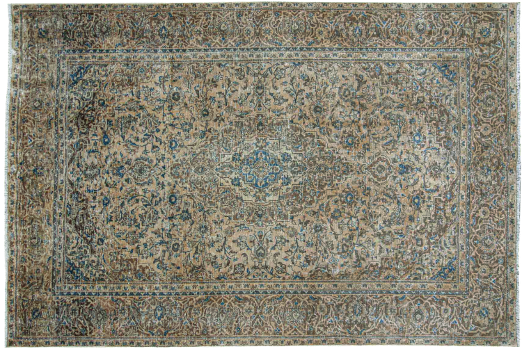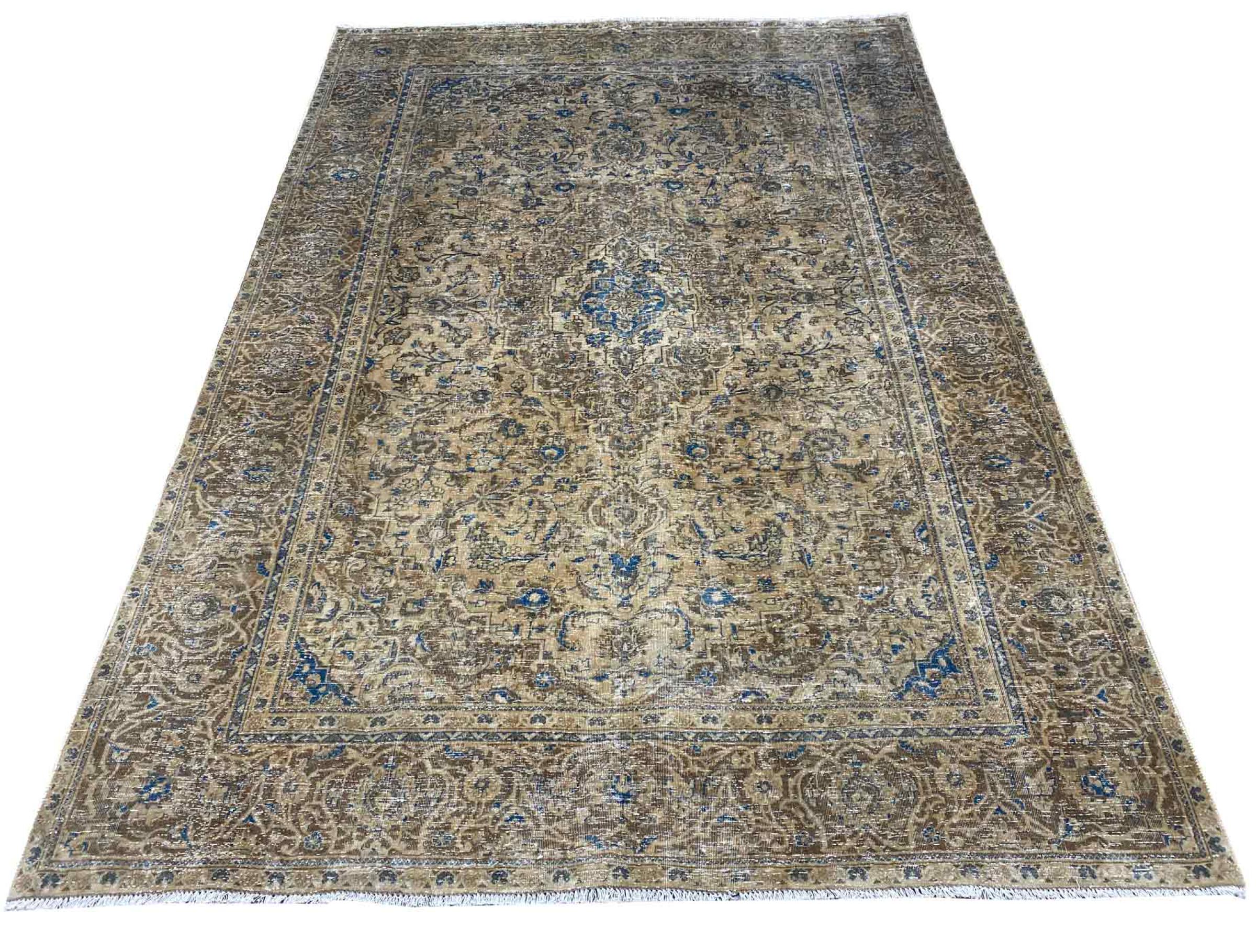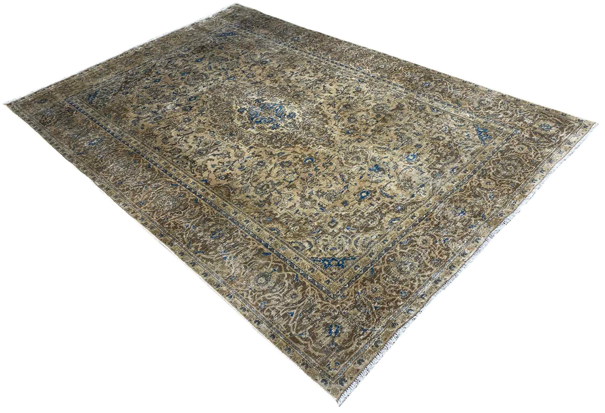 Estes tapetes vintage são tapetes orientais antigos com nós manuais, na sua maioria tapetes persas. Tal tapete durará uma vida inteira. Os tapetes são normalmente descoloridos e a pilha de lã é reduzida a um nível. Isto dá ao tapete um aspecto uniforme e um estilo de vindima intemporal. Apenas tapetes com nós manuais de alta qualidade e sem danos são feitos como tapetes vintage.
