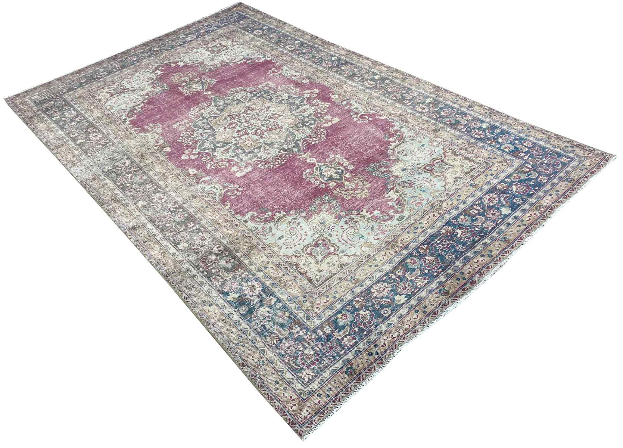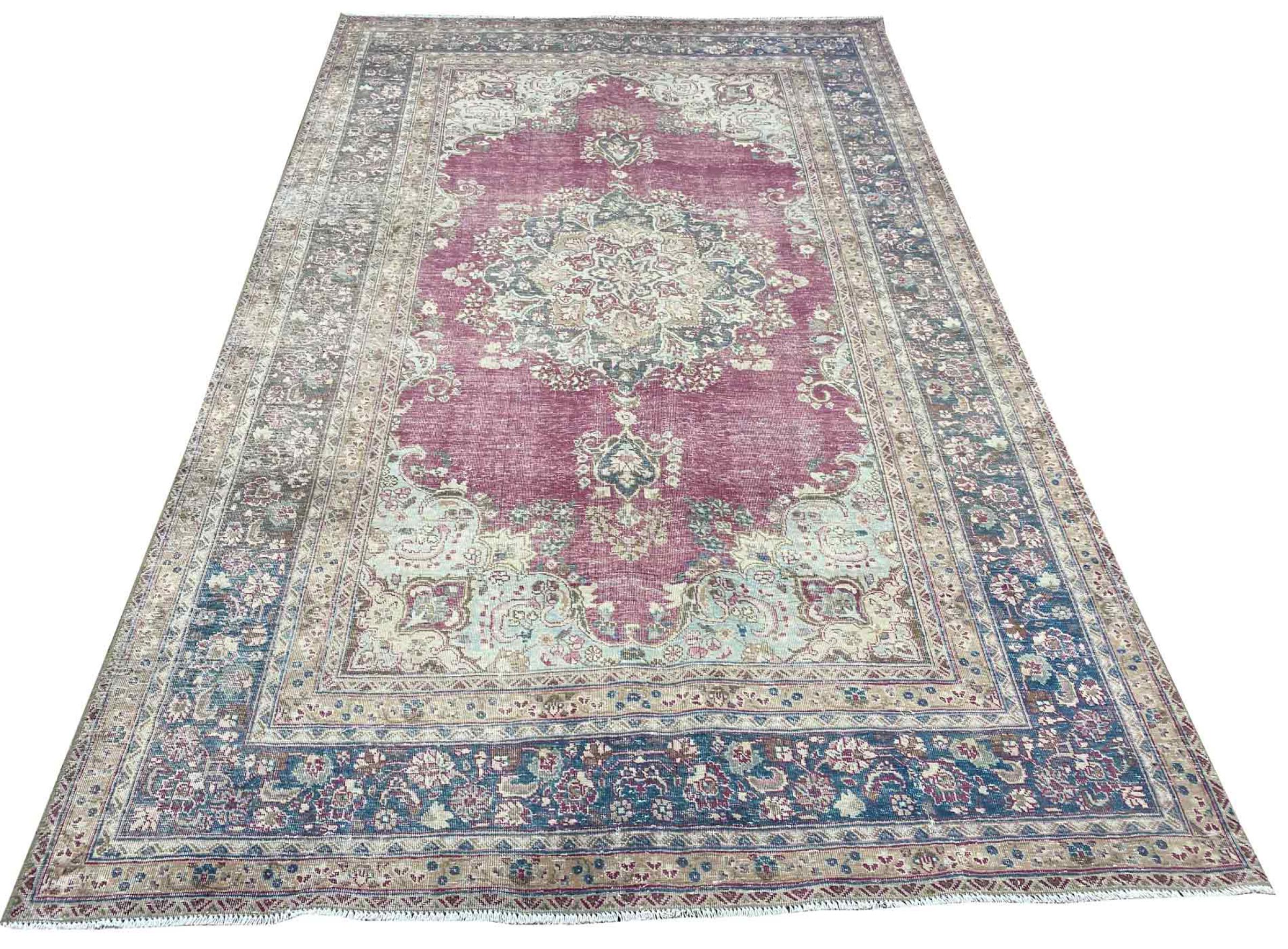 Estes tapetes vintage são tapetes orientais antigos com nós manuais, na sua maioria tapetes persas. Tal tapete durará uma vida inteira. Os tapetes são normalmente descoloridos e a pilha de lã é reduzida a um nível. Isto dá ao tapete um aspecto uniforme e um estilo de vindima intemporal. Apenas tapetes com nós manuais de alta qualidade e sem danos são feitos como tapetes vintage.