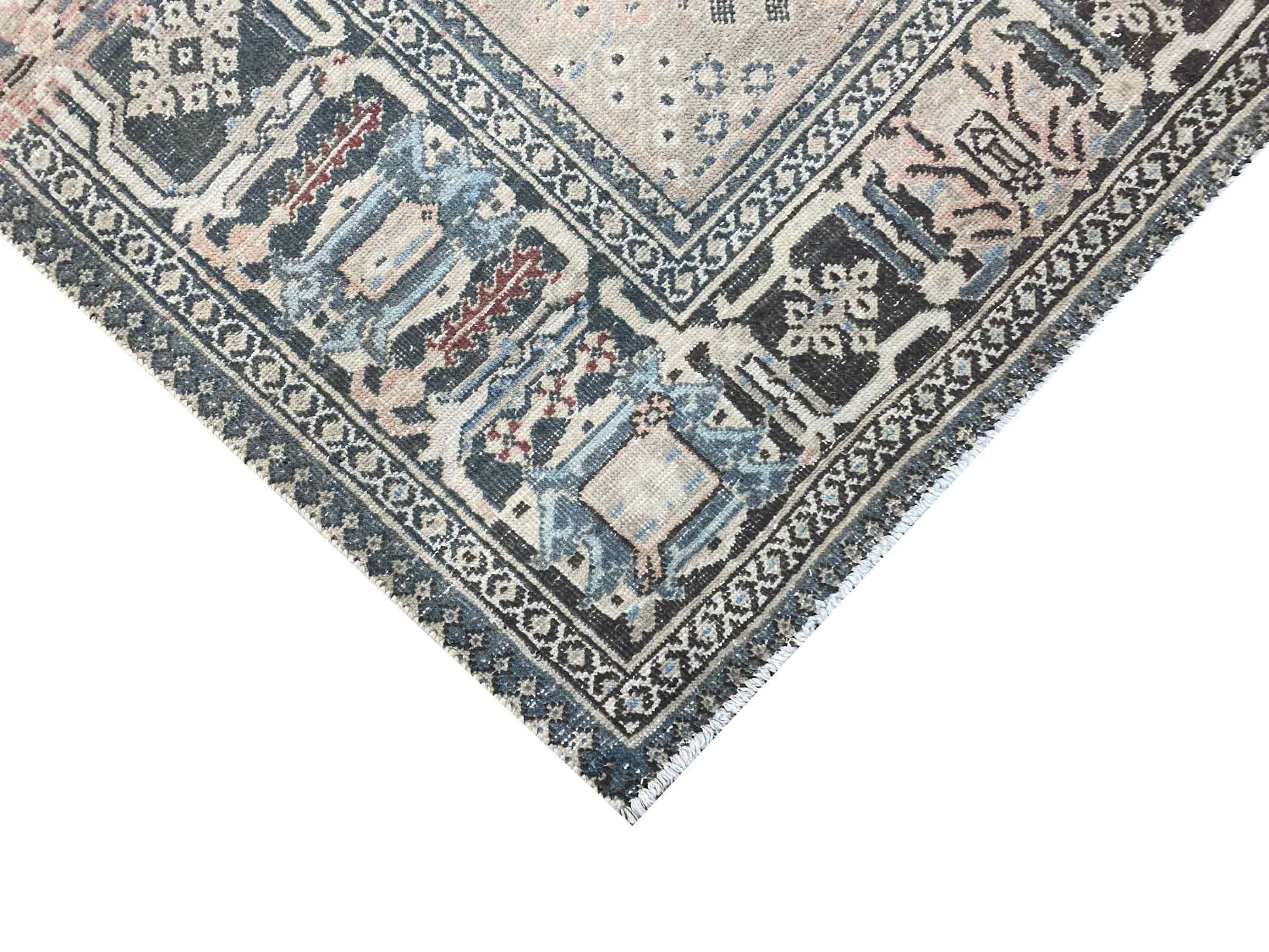 Este é um tapete persa feito à mão que tem pelo menos 20 anos de idade. Este tapete pode durar gerações com os cuidados adequados. O tapete foi completamente tingido de novo sem tingir completamente os ornamentos originalmente atados. Isto dá ao tapete persa de alta qualidade um carácter vintage moderno único.