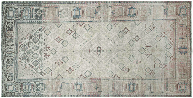 Estes tapetes vintage são tapetes orientais antigos com nós manuais, na sua maioria tapetes persas. Tal tapete durará uma vida inteira. Os tapetes são normalmente descoloridos e a pilha de lã é reduzida a um nível. Isto dá ao tapete um aspecto uniforme e um estilo de vindima intemporal. Apenas tapetes com nós manuais de alta qualidade e sem danos são feitos como tapetes vintage.