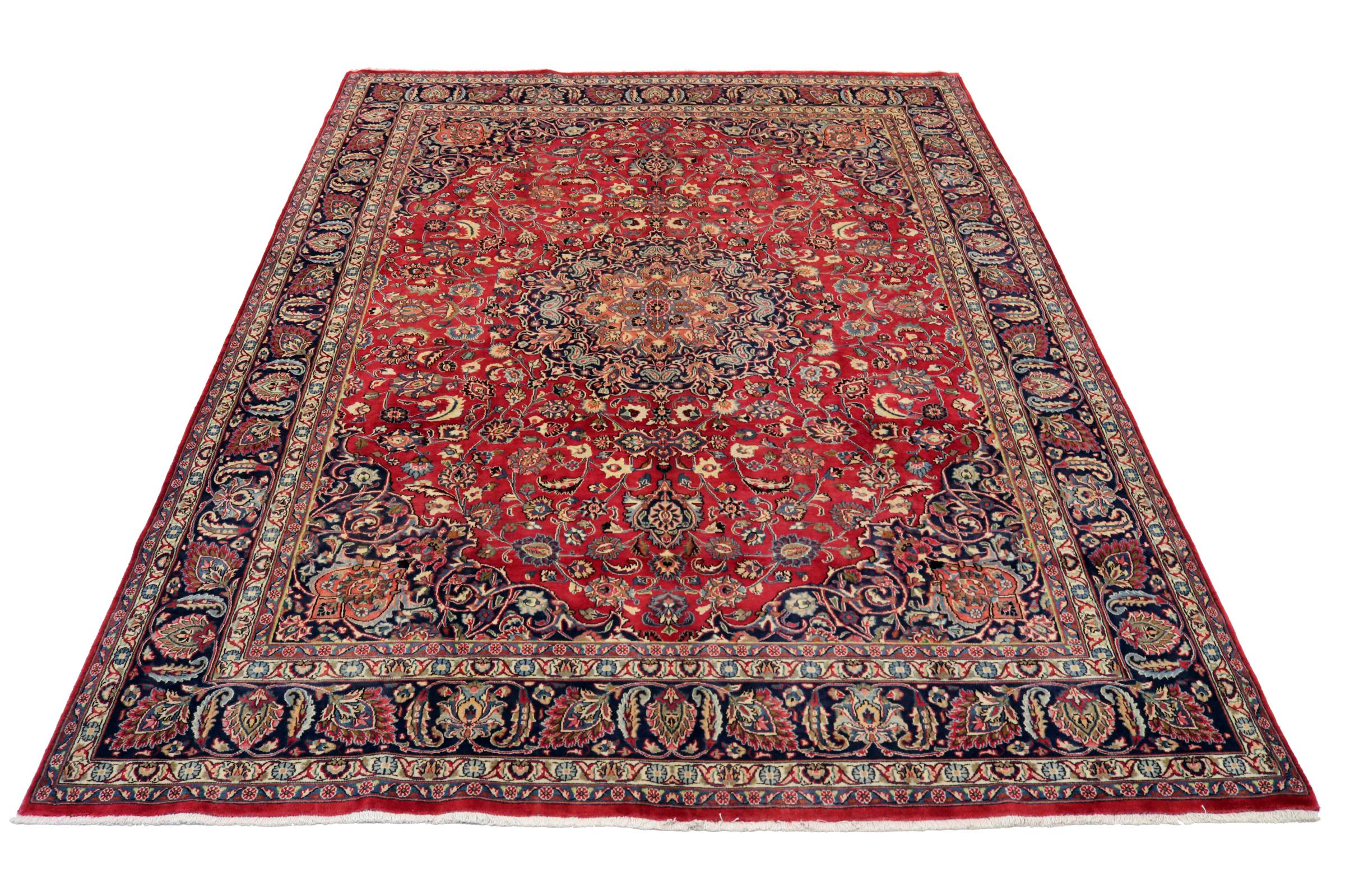 Nº do Tapete: 128264007802866 Tamanho: 391x289 cm Espessura: aproximadamente 5 mm Nós: 200 000 - 250 000 / m² Processamento: Atado à mão Veludo: Lã tecida à mão Urdidura: Lã Natural Estado / Conservação: O tapete apresenta leve desgaste em alguns pontos específicos Origem: Pérsia / Iran Idade: aproximadamente 20-30 anos Peso: aproximadamente 40 kg Em armazém: Único - Apenas 1 em stock