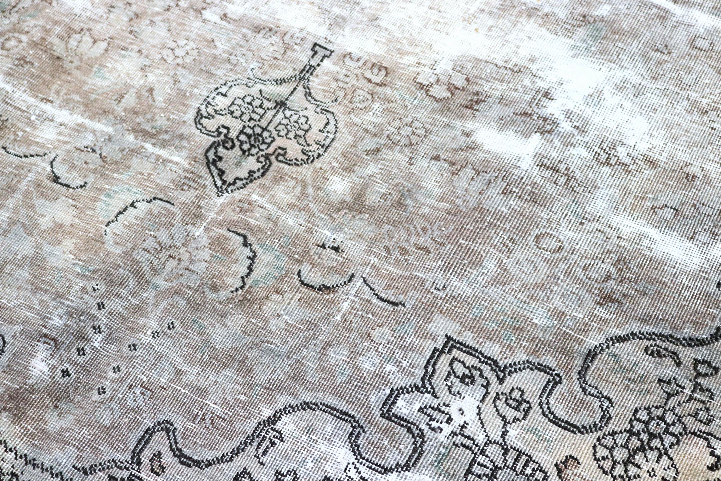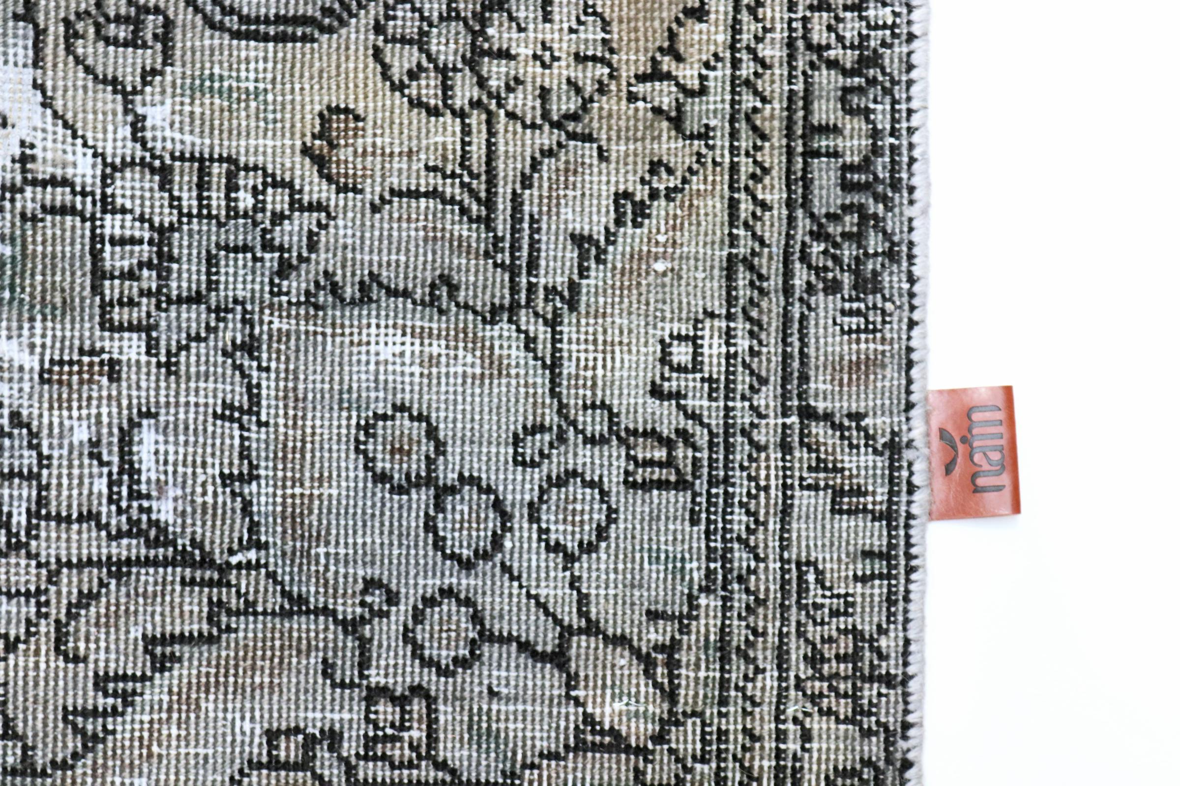 Este é um tapete persa feito à mão que tem pelo menos 20 anos de idade. Este tapete pode durar gerações com os cuidados adequados. O tapete foi completamente tingido de novo sem tingir completamente os ornamentos originalmente atados. Isto dá ao tapete persa de alta qualidade um carácter vintage moderno único.