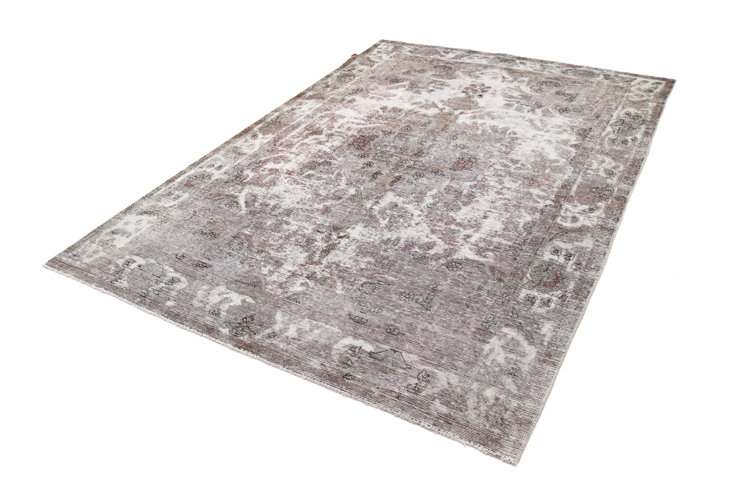 Este é um tapete persa feito à mão que tem pelo menos 20 anos de idade. Este tapete pode durar gerações com os cuidados adequados. O tapete foi completamente tingido de novo sem tingir completamente os ornamentos originalmente atados. Isto dá ao tapete persa de alta qualidade um carácter vintage moderno único.
