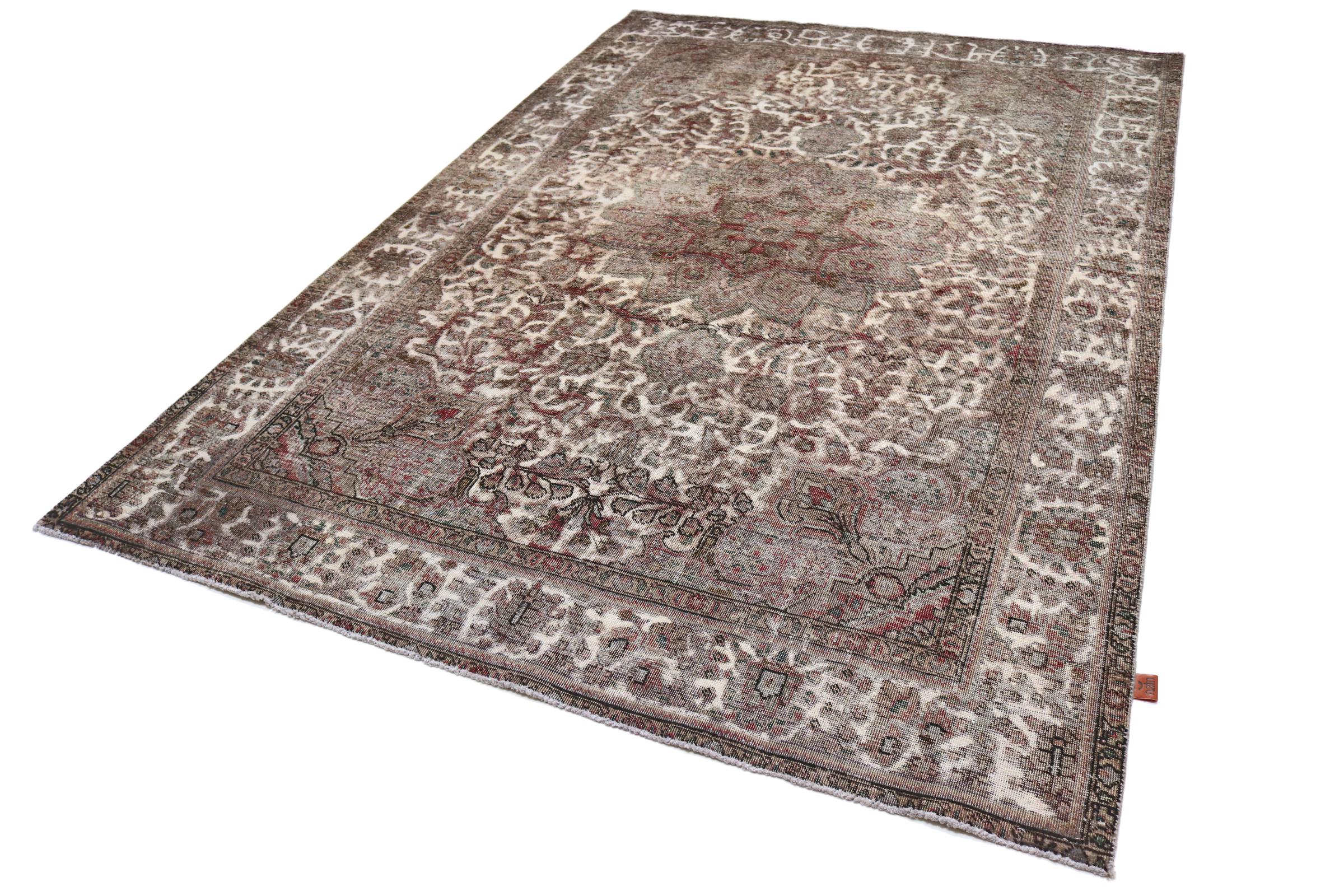 Estes tapetes vintage são tapetes orientais antigos com nós manuais, na sua maioria tapetes persas. Tal tapete durará uma vida inteira. Os tapetes são normalmente descoloridos e a pilha de lã é reduzida a um nível. Isto dá ao tapete um aspecto uniforme e um estilo de vindima intemporal. Apenas tapetes com nós manuais de alta qualidade e sem danos são feitos como tapetes vintage.