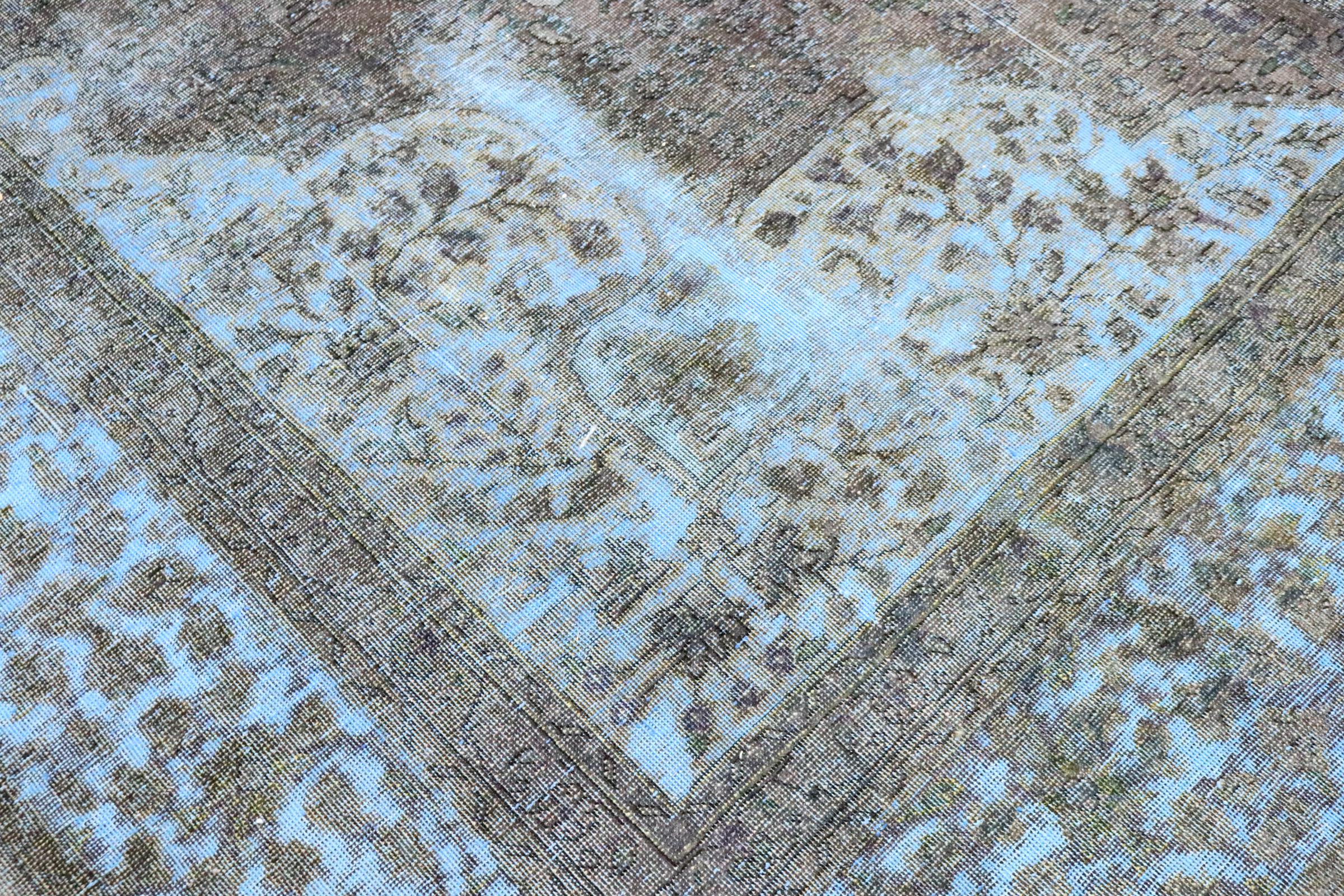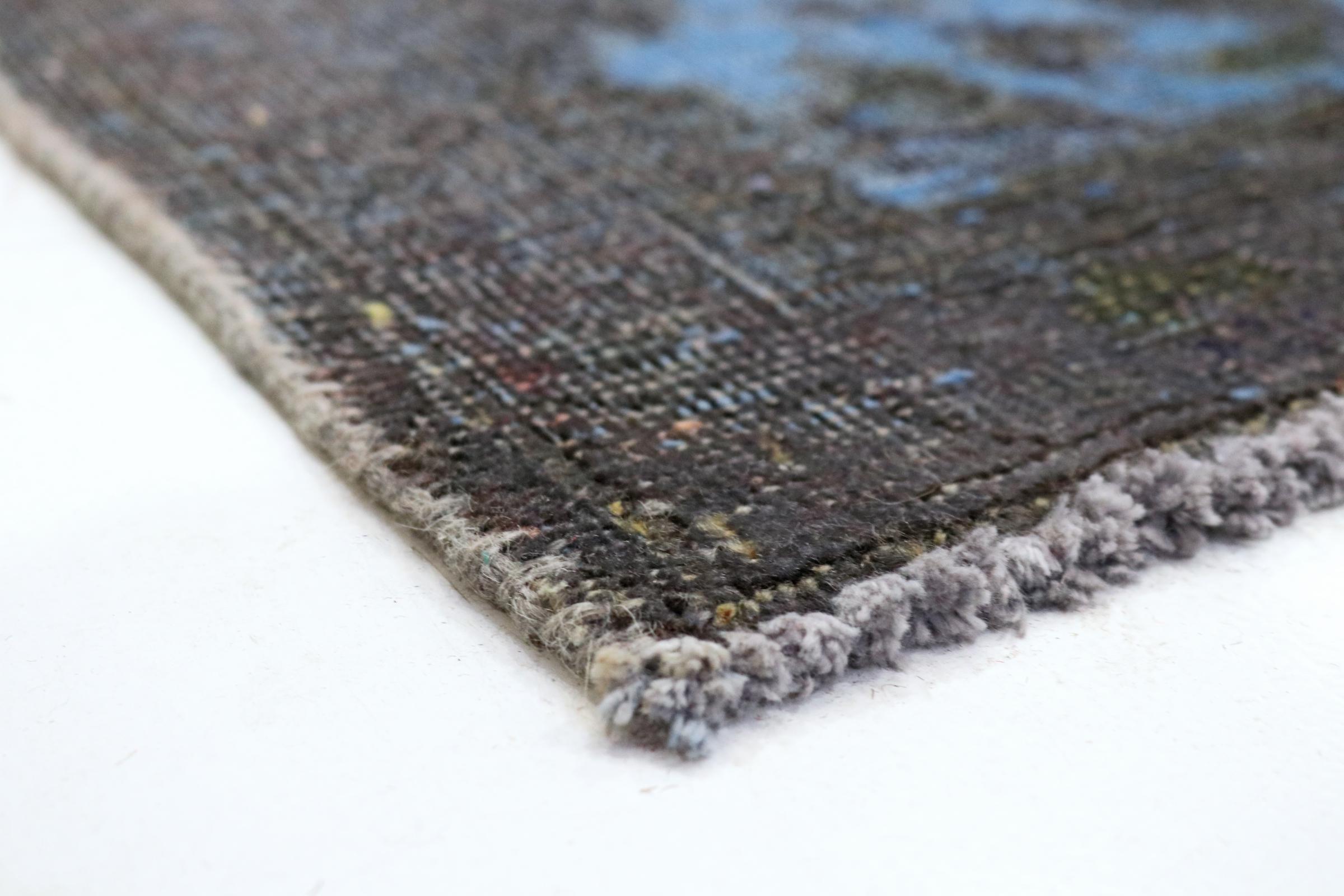 Este é um tapete persa feito à mão que tem pelo menos 20 anos de idade. Este tapete pode durar gerações com os cuidados adequados. O tapete foi completamente tingido de novo sem tingir completamente os ornamentos originalmente atados. Isto dá ao tapete persa de alta qualidade um carácter vintage moderno único.