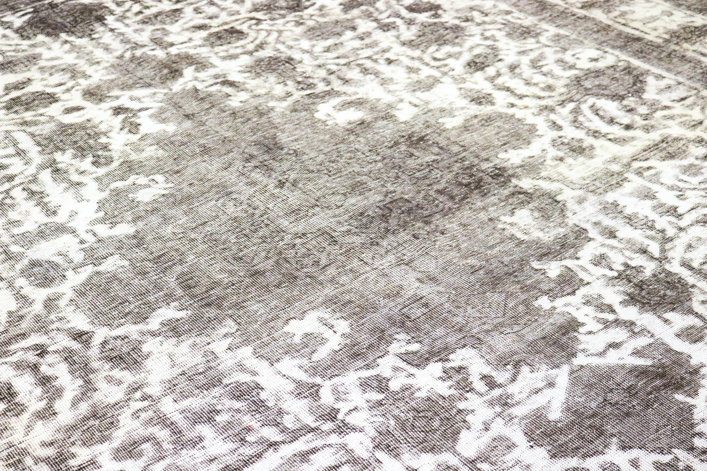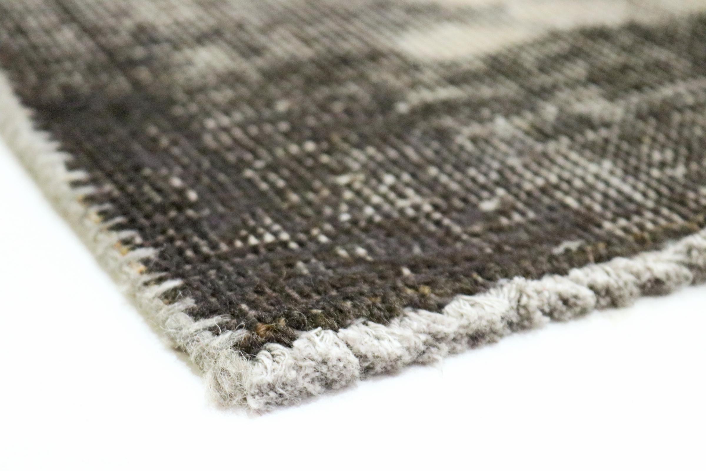 Este é um tapete persa feito à mão que tem pelo menos 20 anos de idade. Este tapete pode durar gerações com os cuidados adequados. O tapete foi completamente tingido de novo sem tingir completamente os ornamentos originalmente atados. Isto dá ao tapete persa de alta qualidade um carácter vintage moderno único.