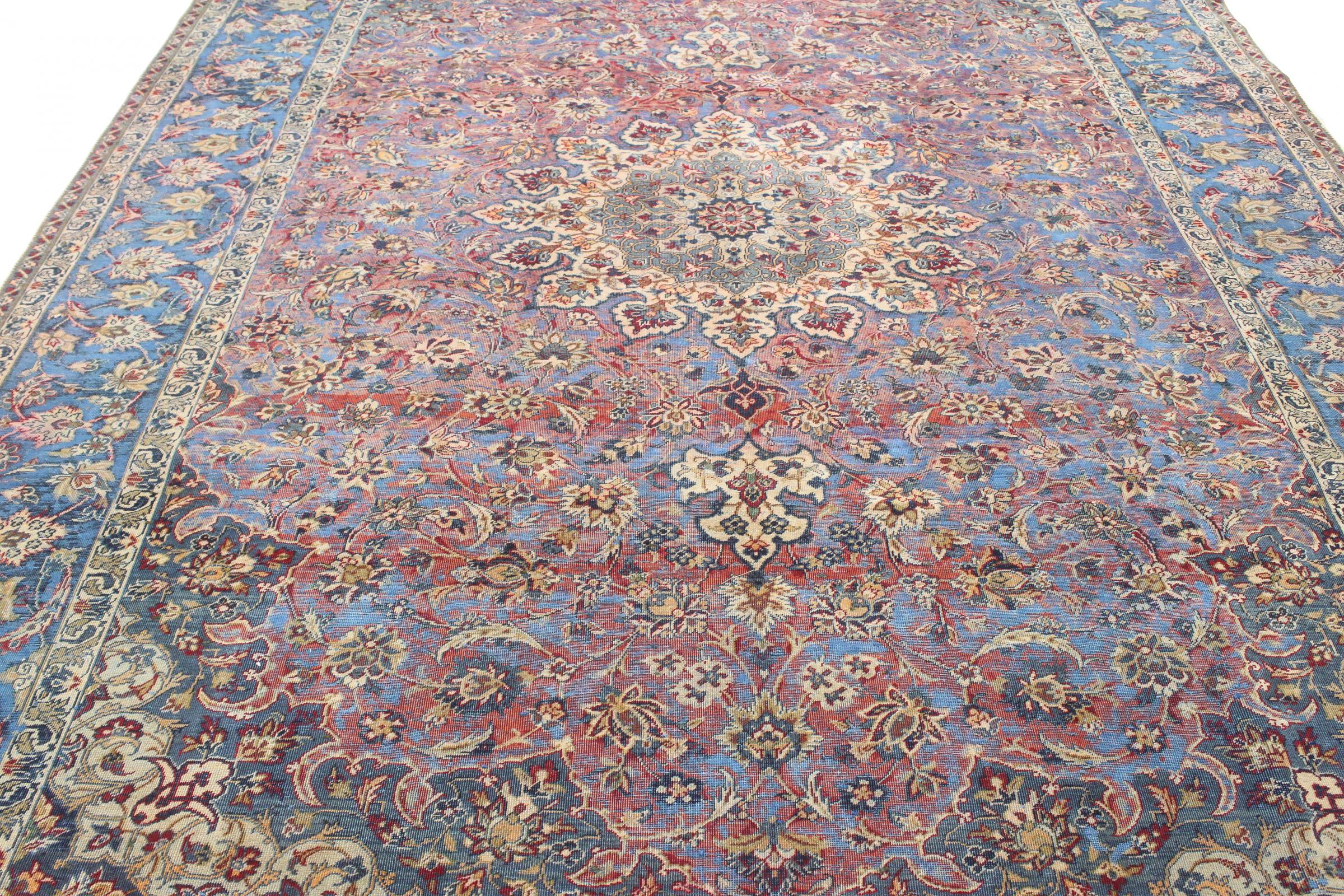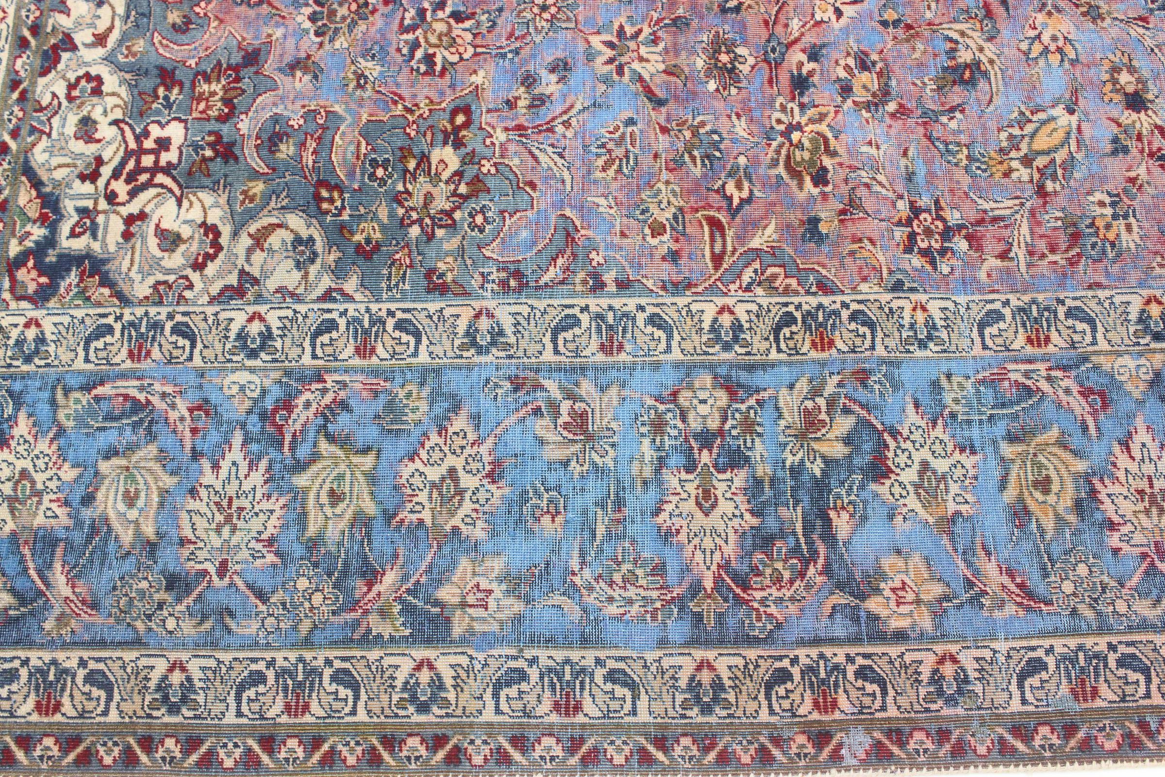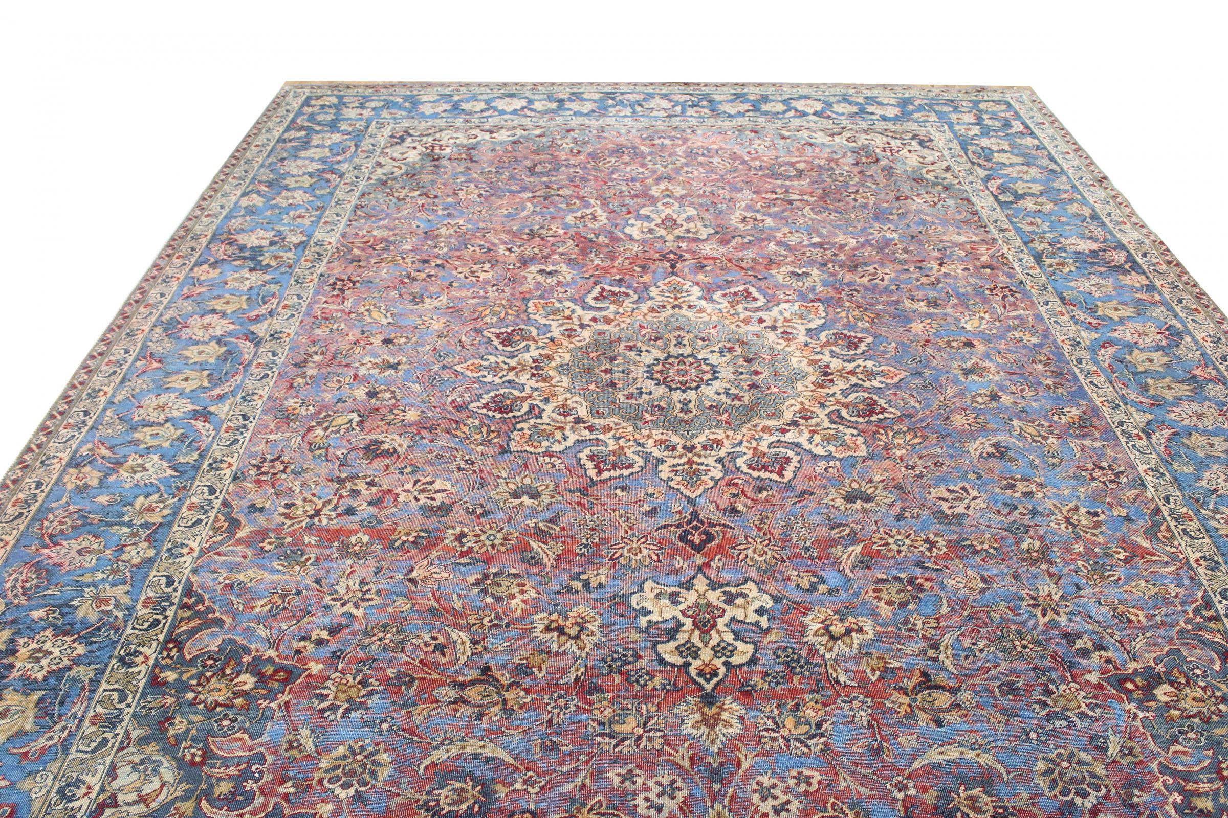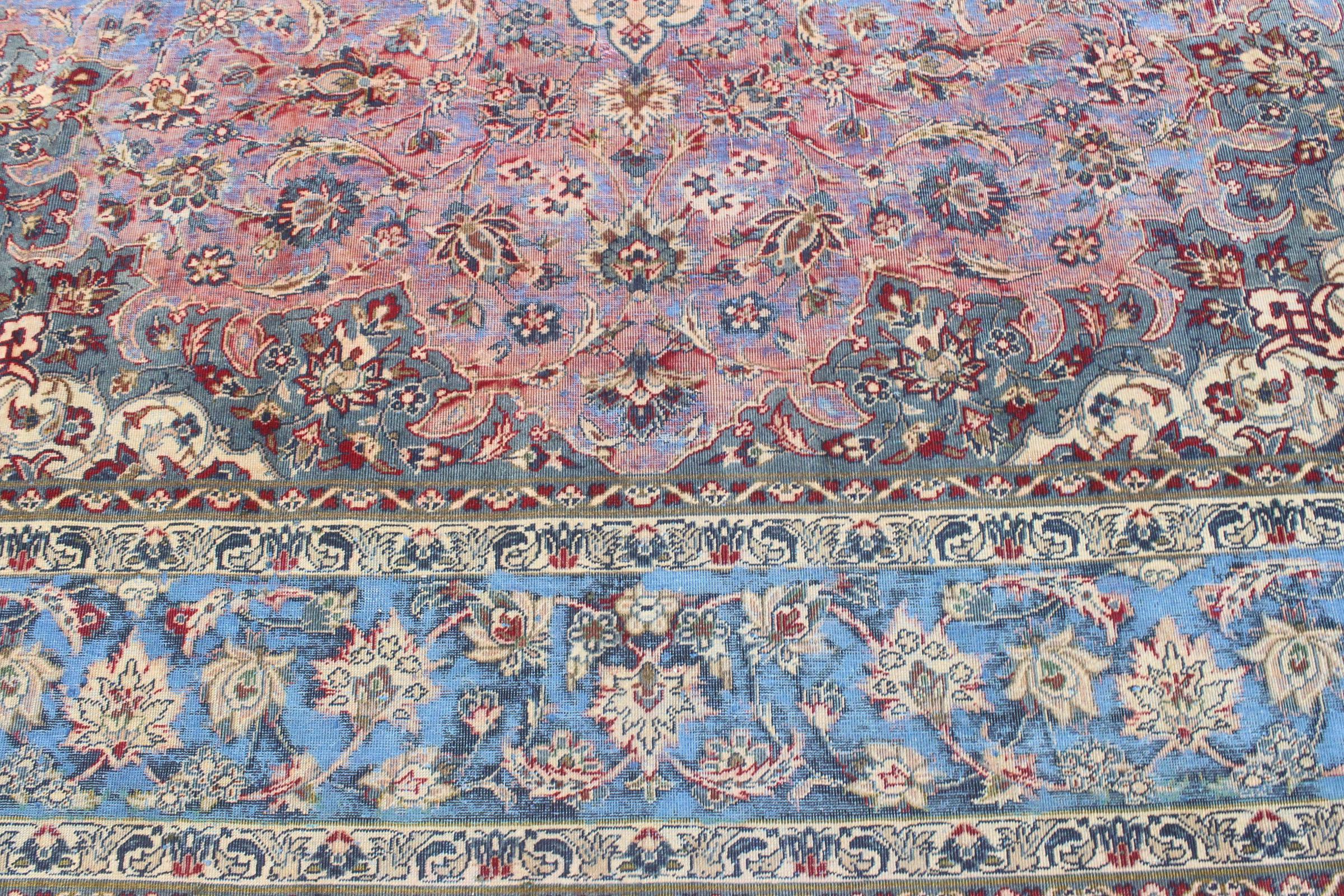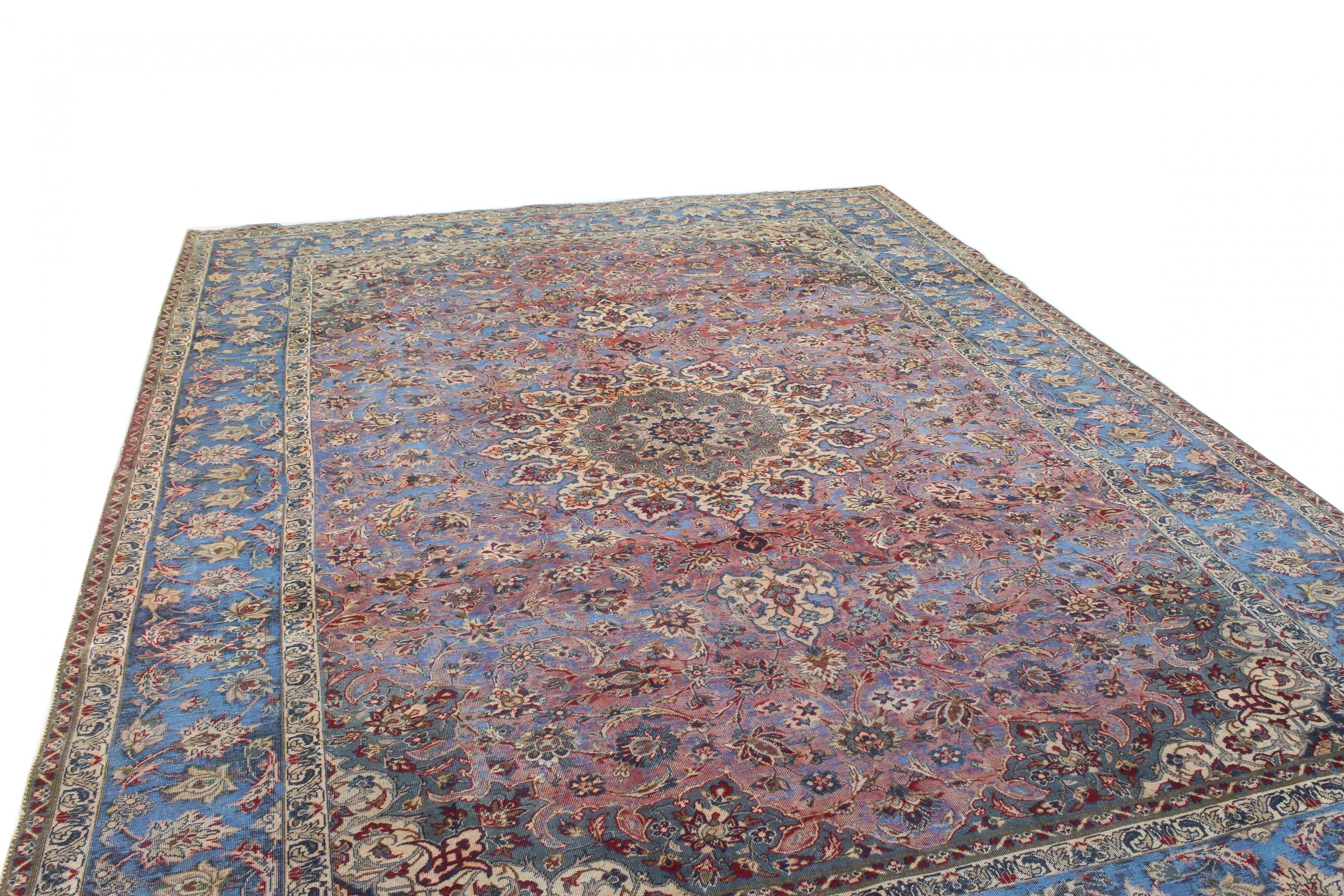 Este é um tapete persa feito à mão que tem pelo menos 20 anos de idade. Este tapete pode durar gerações com os cuidados adequados. O tapete foi completamente tingido de novo sem tingir completamente os ornamentos originalmente atados. Isto dá ao tapete persa de alta qualidade um carácter vintage moderno único.