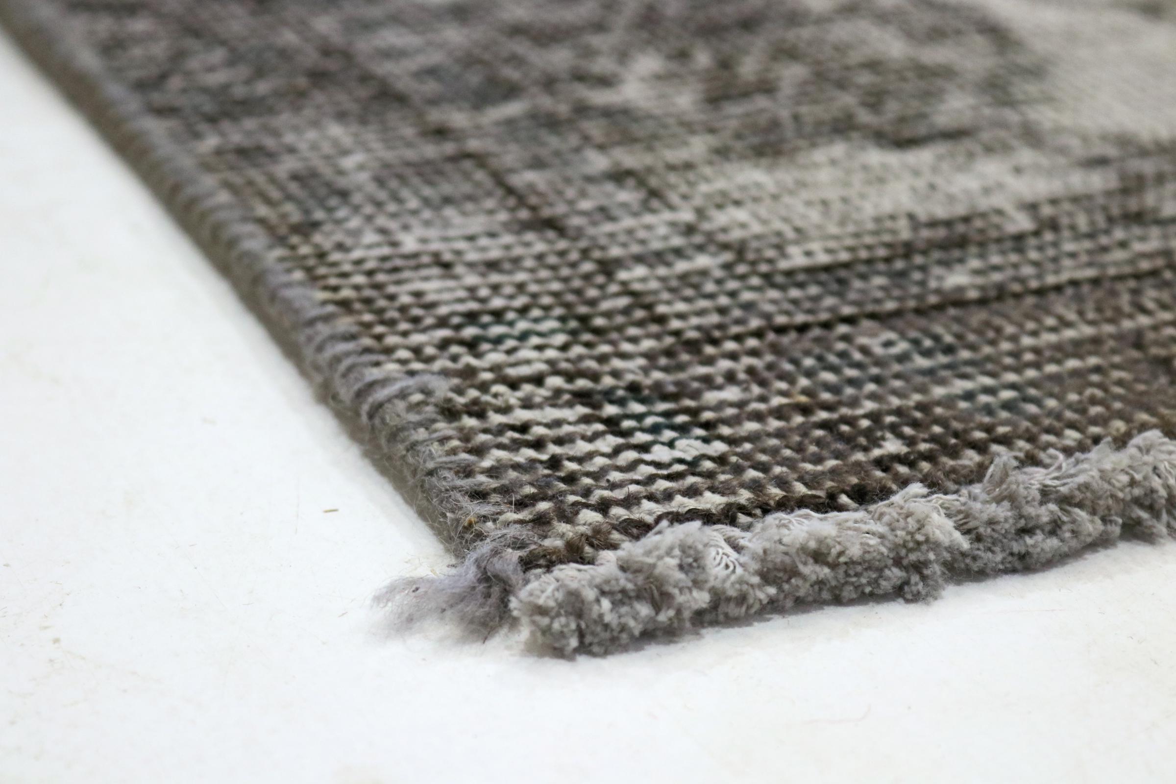 Este é um tapete persa feito à mão que tem pelo menos 20 anos de idade. Este tapete pode durar gerações com os cuidados adequados. O tapete foi completamente tingido de novo sem tingir completamente os ornamentos originalmente atados. Isto dá ao tapete persa de alta qualidade um carácter vintage moderno único.