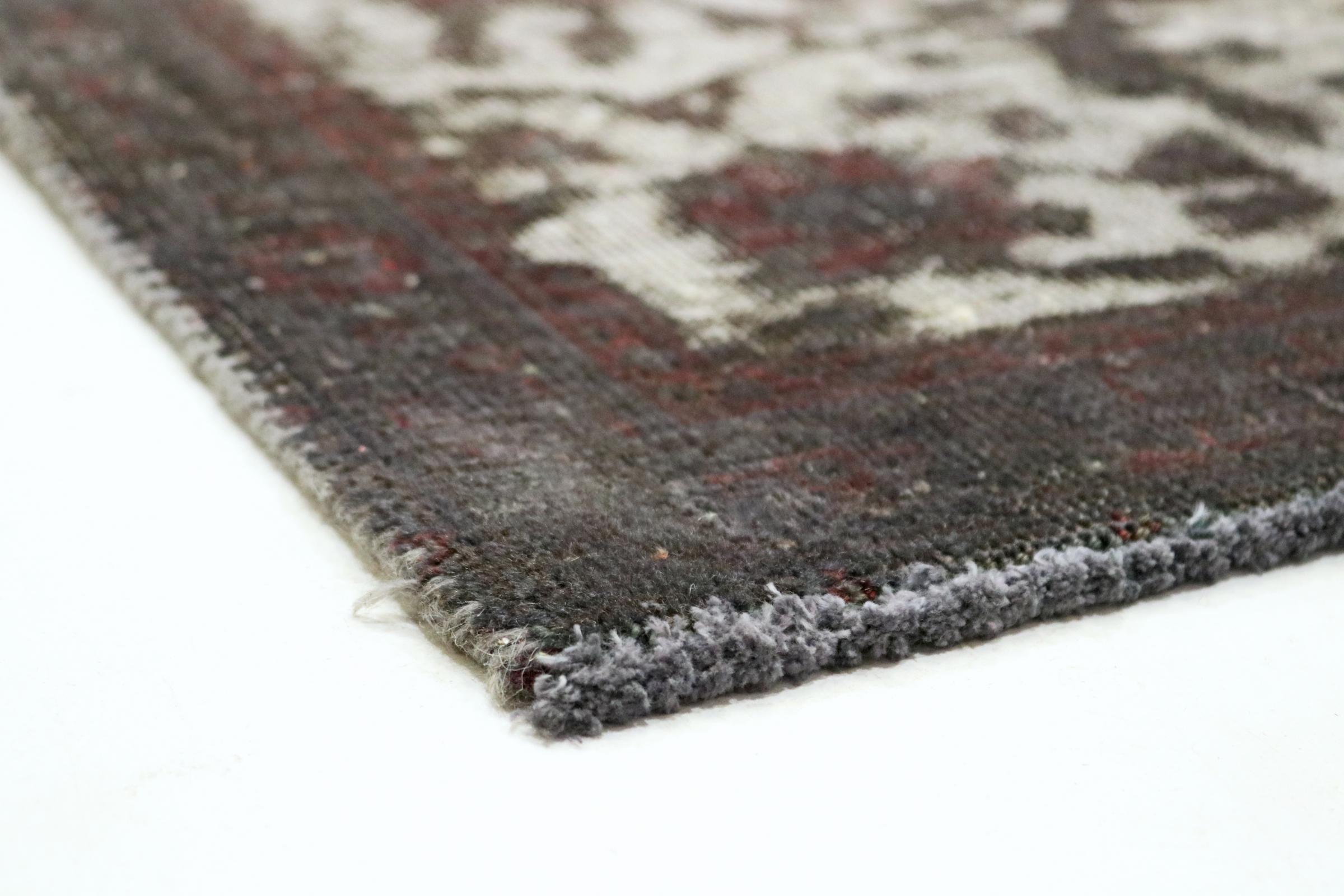 Este é um tapete persa feito à mão que tem pelo menos 20 anos de idade. Este tapete pode durar gerações com os cuidados adequados. O tapete foi completamente tingido de novo sem tingir completamente os ornamentos originalmente atados. Isto dá ao tapete persa de alta qualidade um carácter vintage moderno único.