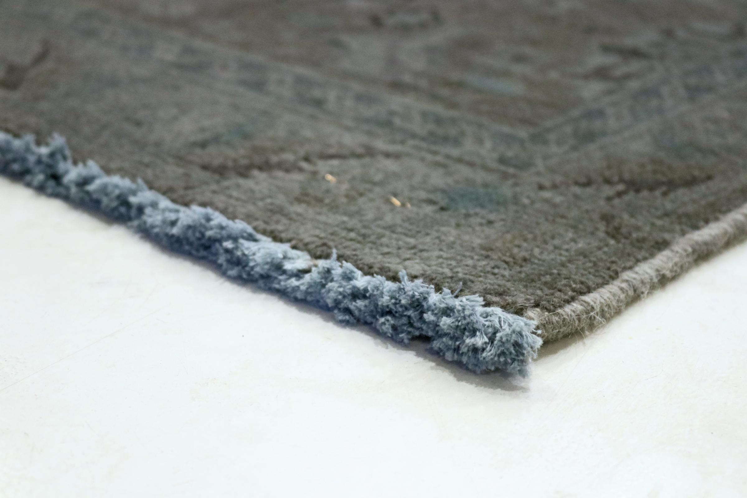 Este é um tapete persa feito à mão que tem pelo menos 20 anos de idade. Este tapete pode durar gerações com os cuidados adequados. O tapete foi completamente tingido de novo sem tingir completamente os ornamentos originalmente atados. Isto dá ao tapete persa de alta qualidade um carácter vintage moderno único.