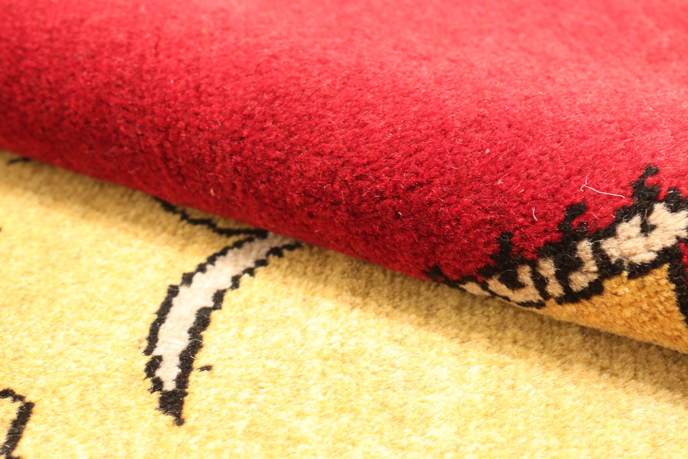 Este tapete é feito de lã de ovelha fiada à mão, da mais alta qualidade. Especialmente no Irão (antiga Pérsia), Afeganistão e Paquistão, a lã ainda é fiada à mão antes do início do nó do tapete. A lã tem provado ser um material natural e extremamente resistente ao longo dos séculos. Entre outras coisas, tem propriedades repelentes de impurezas e isolantes térmicos. Ao mesmo tempo, a lã é incomparavelmente macia e tem um brilho natural.