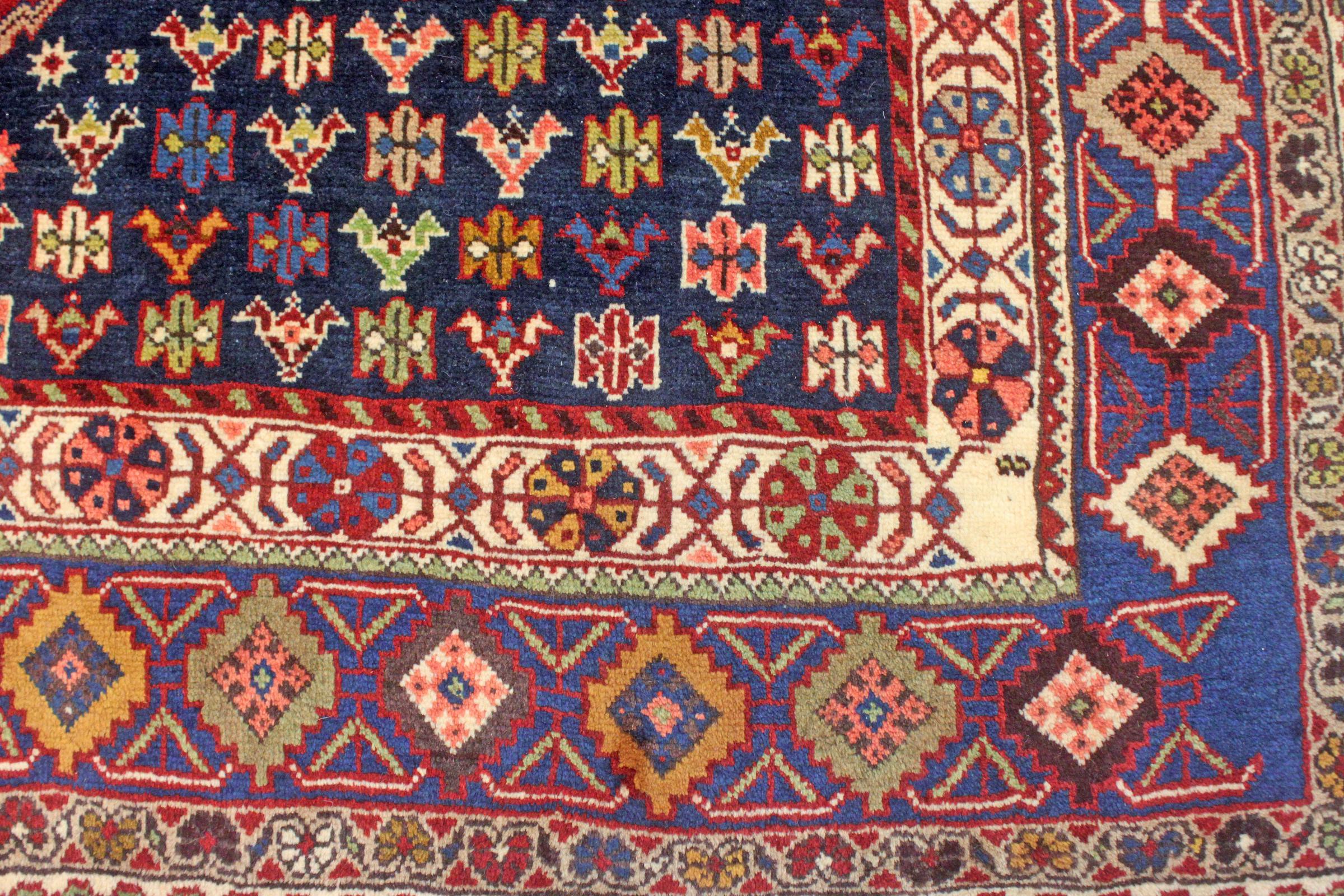 Este tapete pertence a tapetes de aldeia e nómadas do Irão, antiga Pérsia. Este tipo de tapete é atado à mão em cidades mais pequenas e aldeias da velha tradição. Mesmo os nómadas ainda atam tapetes persas ao ar livre. Os tapetes são atados sem padrão e completamente a partir da cabeça. Caracterizam-se por ornamentos clássicos, dispostos em padrões rectos e geométricos. Graças à sua origem cultural-tradicional, estes tapetes têm um carácter único que encarna a antiga Pérsia.