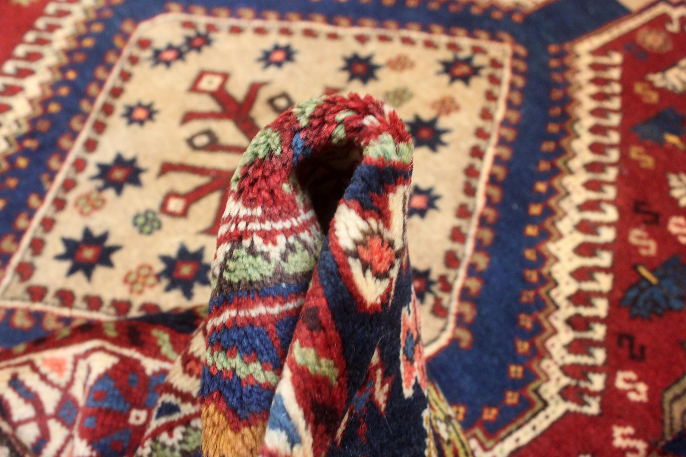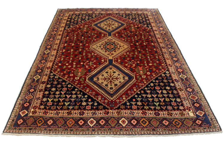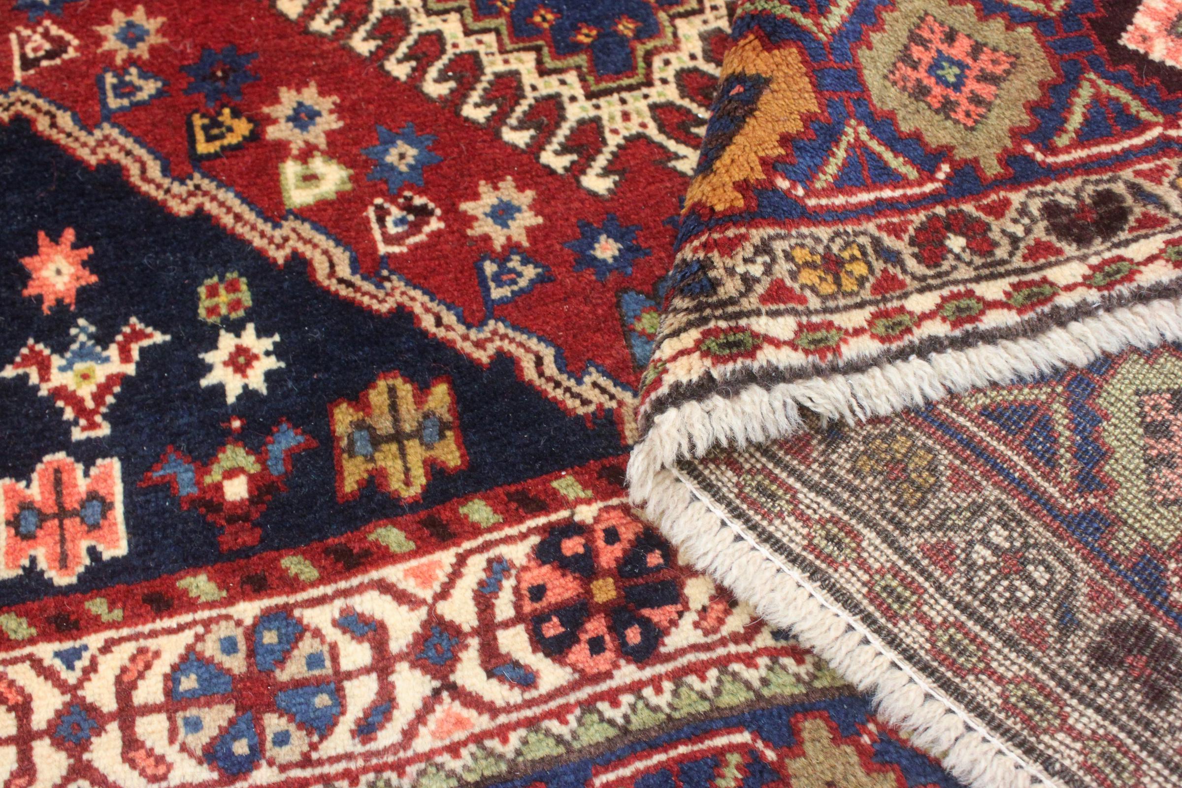 Tradicionalmente feito à mão em Yalameh, este tapete persa é um belo representante da sua guilda. As formas geométricas são intemporais e continuarão a ser um design muito popular durante muitos anos. Especial para Yalameh são os diamantes, como neste tapete.