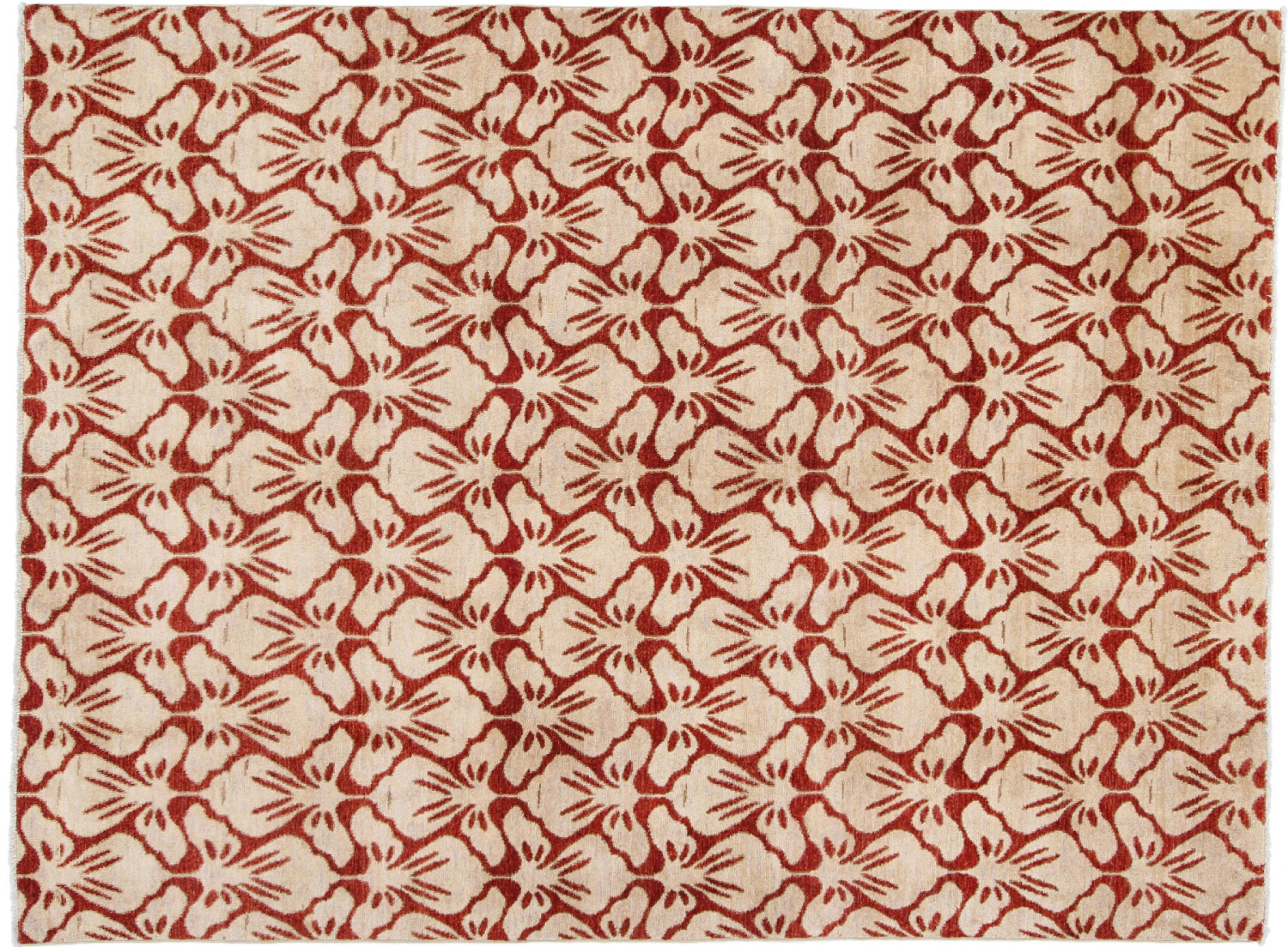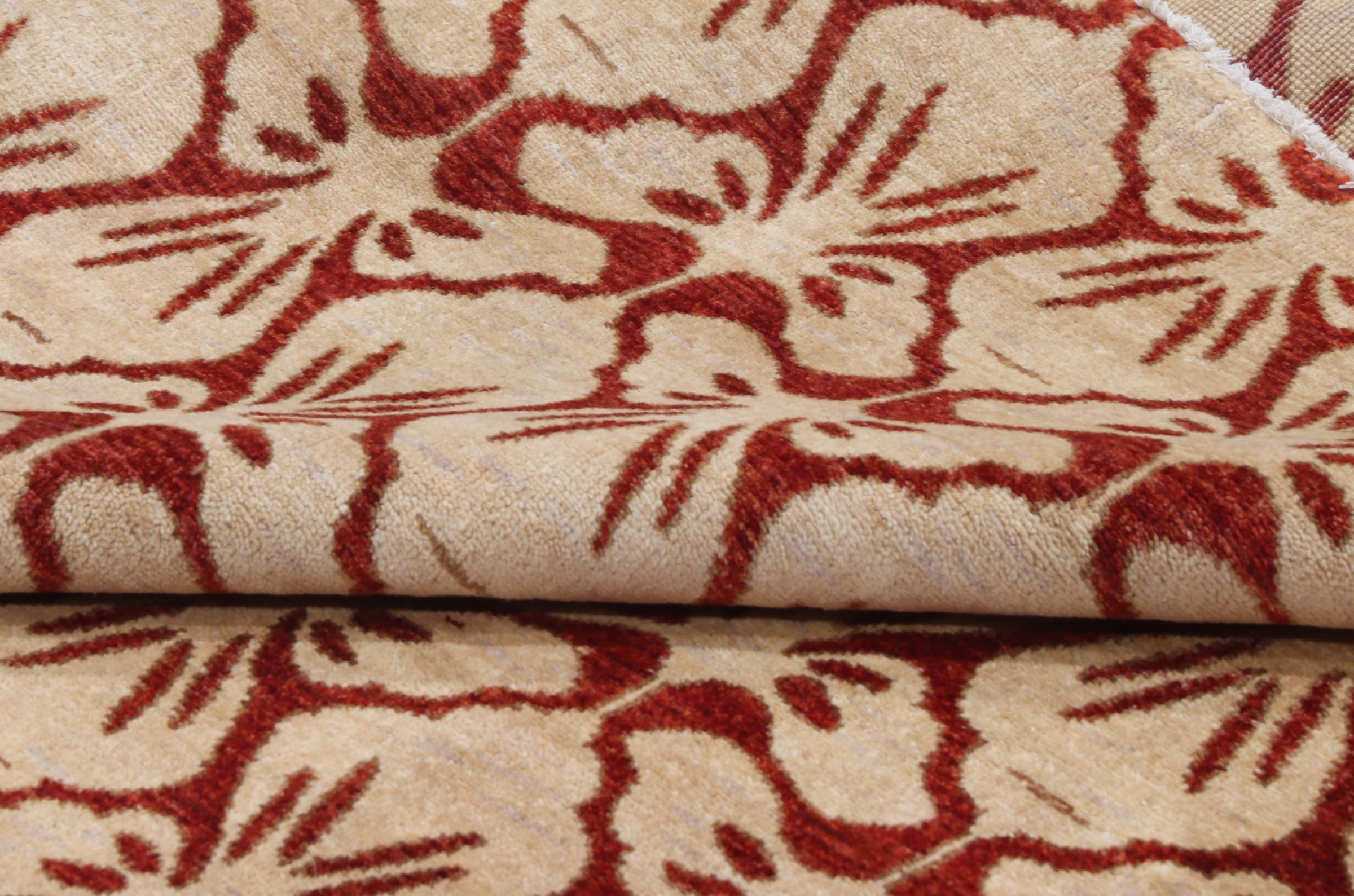 Este tapete Ziegler moderno foi feito à mão no Paquistão em novas cores e padrões. O design e as cores vibrantes deste tipo de tapete são convincentes em interiores modernos. Ao contrário dos tapetes Ziegler tradicionais, este tapete não tem os ornamentos dos tapetes persas tradicionais. Tem um design único combinado com a alta qualidade da lã de ovelha natural e o artesanato tradicional.